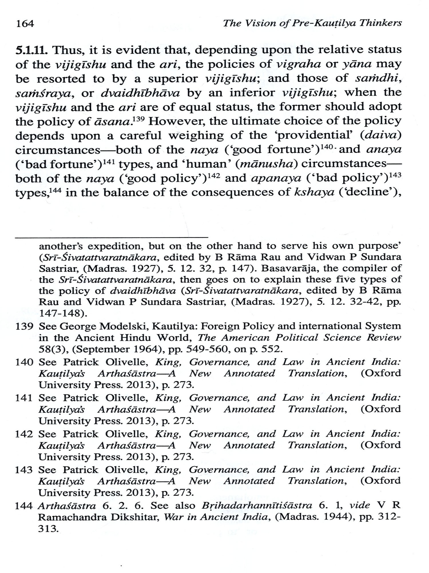 Kautilya begins his magnum opus, the Arthasastra, with salutations to Sukra and Brihaspati, and then goes on to state that this treatise is a compilation of material, distilled from different earlier sources. Among his predecessors, Kautilya quotes extensively, either for support or for criticism, from the authors of the schools of Brihaspati, Usanas (Sukra), Manu, Parasara, and Ambhi, and from individual political thinkers-Bharadvaja, Visalaksha, Pisuna, Kauņapadanta, Vatavyadhi, and Bahudantiputra. Another authority, often quoted by him, is Acharyah. The present monograph is an attempt to present a comprehensive account of the vision of these pre-Kautilya thinkers, as gleaned primarily from the Kautiliyam.