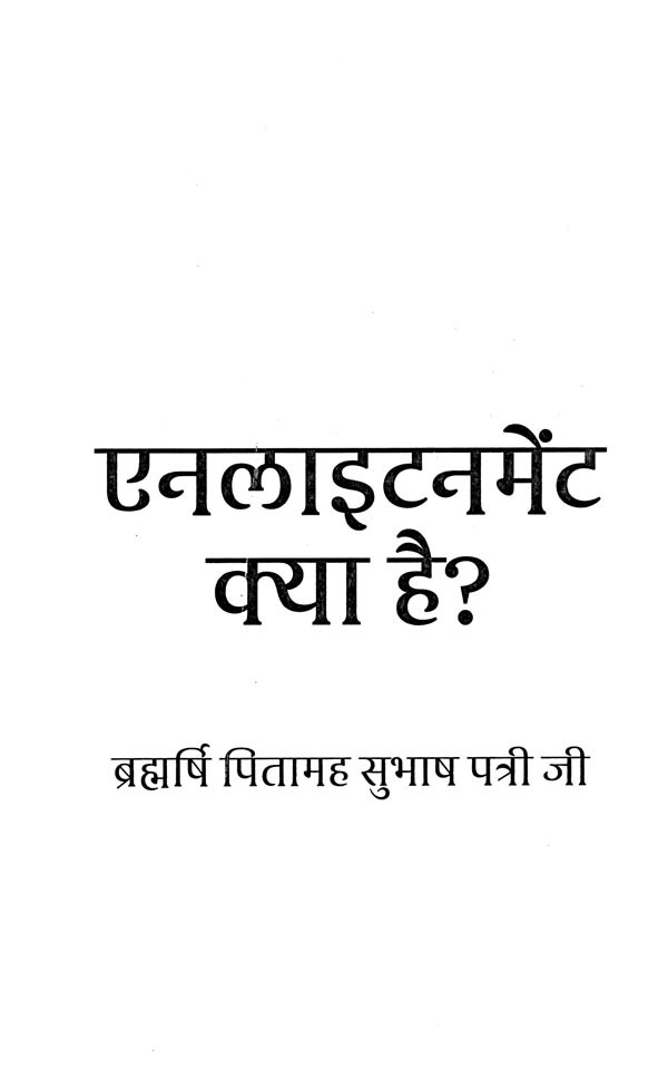 "एनलाइटनमेंट क्या है?" पुस्तक में ब्रह्मर्षि पत्री जी ने आत्मज्ञान की अवधारणा को सरल और व्यावहारिक तरीके से प्रस्तुत किया है। इस पुस्तक में 'एनलाइटनमेंट' का अर्थ, इसके विभिन्न पहलू, और जीवन में इसकी महत्ता को समझाया गया है। ब्रह्मर्षि पत्री जी बताते हैं कि आत्मज्ञान का अर्थ सिर्फ ज्ञान प्राप्त करना नहीं, बल्कि जीयन को दिव्य तरीके से जीना है।