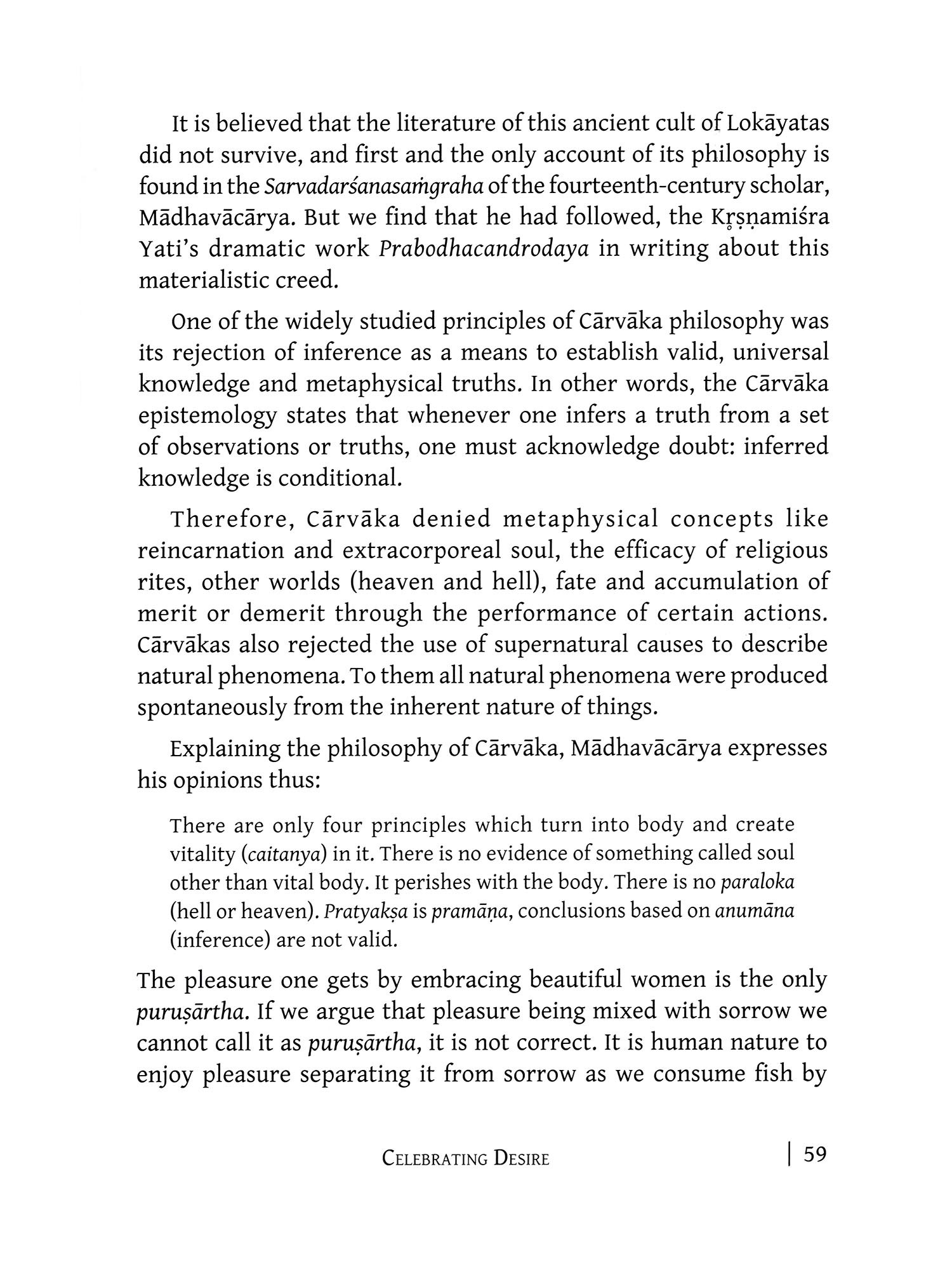 Lord Buddha, in his profound wisdom, said that for extinction of human suffering, complete annihilation of desire is the only way. This is the sacred truth of suffering. Ācārya Cārvāka, equally profound in his thinking, said that life is a continuous celebration of desire. Kāma (desire) and artha (wealth) are the only true goals of life. Beg, steal or borrow, but live life like a king. Enjoy life full as long as one is alive. Who is correct? Lord Buddha or Ācārya Cārvāka? What is desire really meant to Indian society, religion and culture through ages? The book tries to address these and similar questions objectively and diligently.