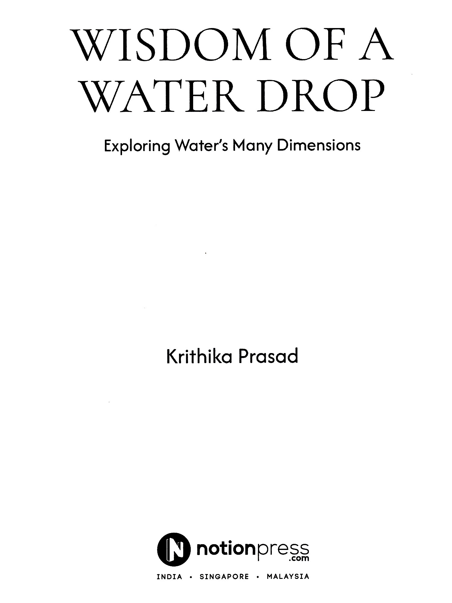 This book explores water beyond what we usually understand-going past hydration and purity, into how water carries energy, responds to intention, and influences health and consciousness. Blending traditional Indian wisdom with modern scientific research, Wisdom of a Water Drop helps readers see water as a living medium that connects the body, mind, and environment. Krithika Prasad brings together learnings from the Vedas, Ayurveda, sacred rituals, and the latest discoveries about structured water, showing how simple practices can improve our relationship with water. This book is for anyone curious about how water truly works-not just in labs, but in life.