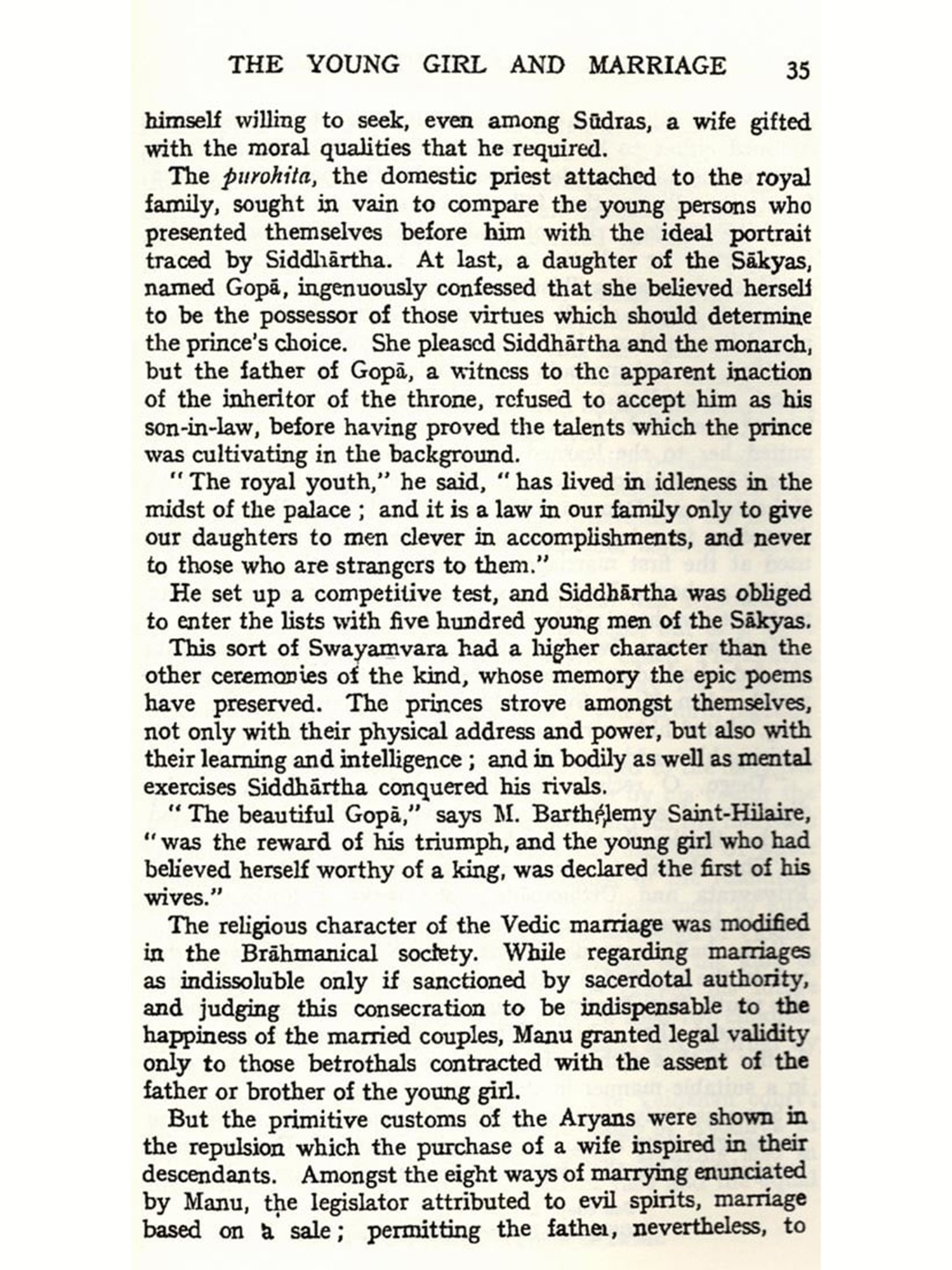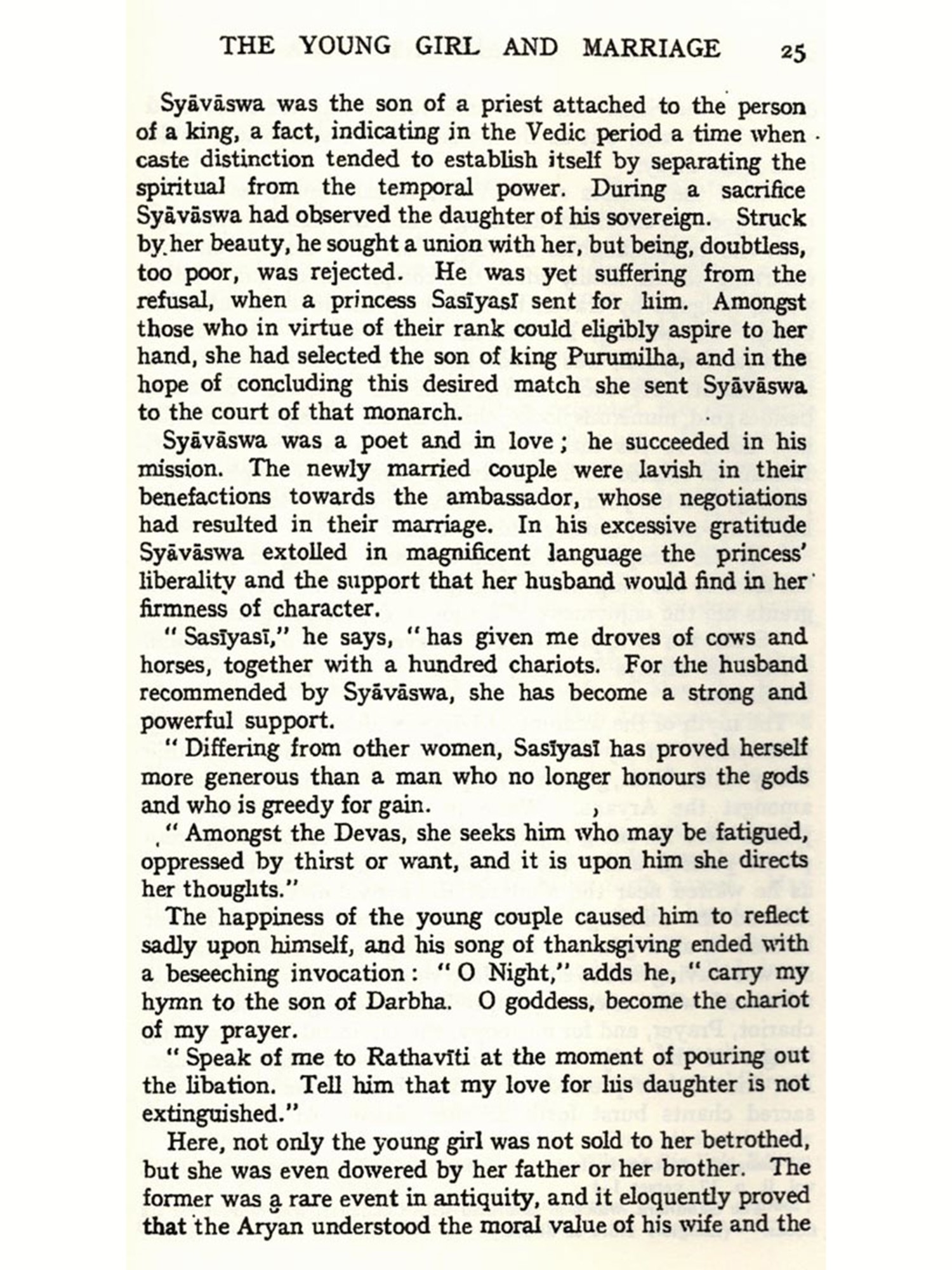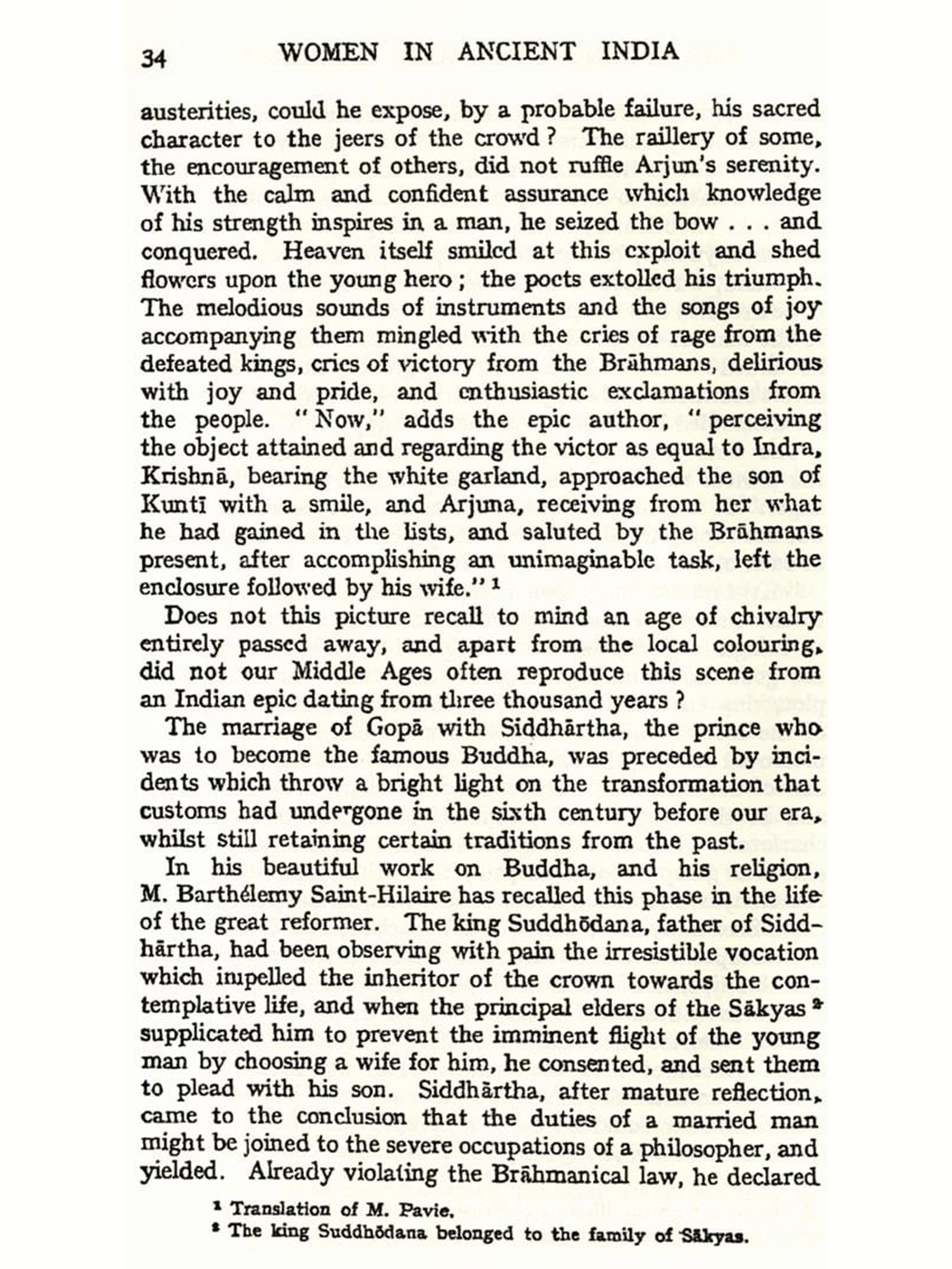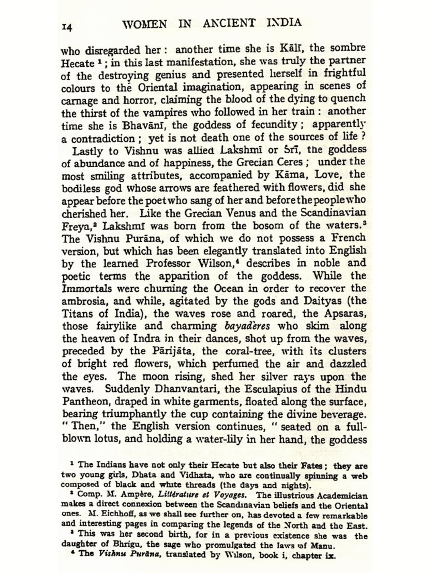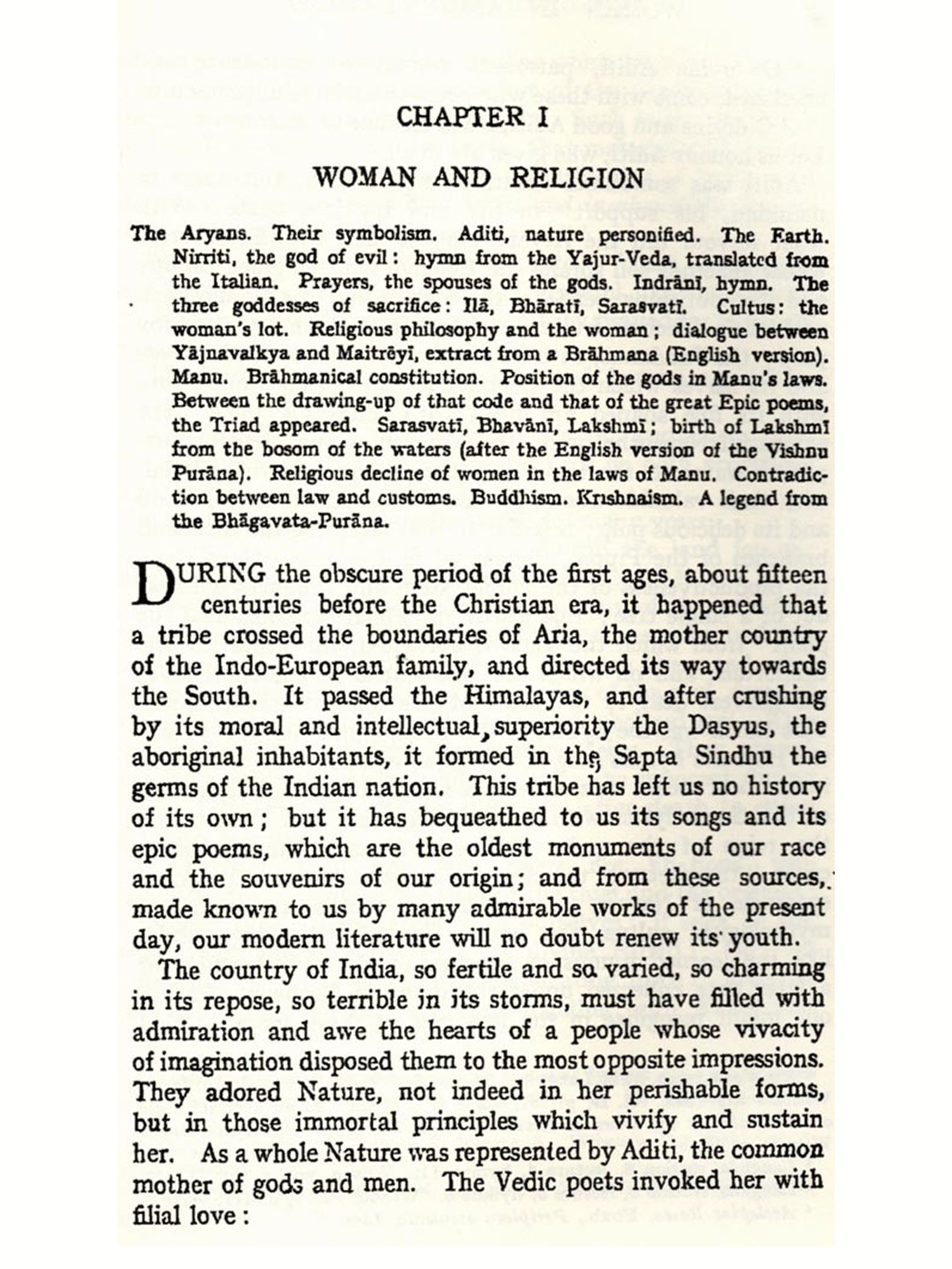 THIS modest work, the only one hitherto that has dealt with this subject and therefore been exposed to the terrible glare of publicity, was not intended to appear as a single volume, but as the key to an extended series embracing the role of woman throughout the entire period of Eastern antiquity. To ascertain woman's position in primitive society from the ever-inspired record of the Chosen People and of the disciples of Christ; from the poetry of the Arabs still burning with desert fire; from the witness in stone of Egyptian and Assyrian monuments; from the classical books, the annals and odes of China; from the mysterious and famed masterpieces of India; from the sacred texts, history, and legends of the Persia of Zoroaster; from the Christian literature of Armenia; and from all the productions of ancient Eastern genius, explained by the genius of the modern West: such was our object and so it is still. Numerous materials had already been collected for this task, but on investigating the Indian contribution, we were suddenly stopped short, struck down by the unexpected spectacle displayed before our eyes. In a sister nation, older than the Grecian yet retaining in a evely degree the first impressions and typical ideas of our Indo-Germanic race, we discovered literary riches whose existence, prior to Hellenic antiquity, had never been surmised. First, echoes of a prehistoric age were found in hymns, admirably expressing the needs of the human soul; next, monuments of heroic ages in laws, embodying beautiful verses and eternal principles of justice and virtue, gigantic epics like the Iliad and Odyssey, abounding with moving and tragic episodes, covering vast ranges of philosophy and religious thought, with pure and touching sentiments, coming from honest and believing hearts, splendid descriptions of tropical nature; lastly, the productions of an age contemporary with that of Augustus, showing the influences of a civilized and refined court, namely, dramas of powerful influence, and elegiacs which might have been uttered by Tibullus sich were the marvels displayed before our eyes. And Woman! It is she who inspires the greater part of these masterpieces expressing the highest point of moral beauty, and who illustrates by her conjugal love, both heroic and pure, a theme embellished by Hindus in such variety that the fundamental idea is often overlaid by the multiplicity of varying circumstances. To-day, thanks to scholars like Jones, Wilson, Colebrooke, Max Müller, Bopp, Lassen, Weber, and many others, Sanskrit literature has become nearly classical in England and Germany. In France, the works of our learned writers on Indian subjects, Eugène Burnouf, Langlois, Ad. Regnier, Foucaux, Pavie, Fauche, and the strong impulse given, in the Académie de Stanislas, by Baron Dumast, and by Émile Burnouf and Leupol, are preparing for popular reading the masterpieces evolved on the banks of the Indus and the Ganges. Is it not, then, a favourable moment for calling attention to a literature eminently moralistic? Greece and Rome, hitherto acknowledged the only sources of classical perfection, have dried up. Some writers, doubtless, faithful to the principles of truth, beauty, and goodness, will immortalize the France of the nineteenth century, notwith-standing the fact that a suspicion to the contrary has been making itself felt. It was believed that everything grand and good in the human soul had already found expression, and what one might venture to call realism meant painting mankind in his most unworthy colours. In picturing his infirmities and causing him to see his image reflected in impure waters, will mankind thus be strengthened, benefited and elevated for his struggles? No! It is far better to offer him even the standard of a chimerical ideal! For the endeavour to attain the Divine standard means less deception than the relegation to that of the brute creation 1 Has not the time arrived, we repeat, to refresh ourselves from more life-giving and generous sources? And only India has the honour of affording such sources. There, a sense of duty dominating all affections, a feeling of respect for the family life, a love for one's neighbour, a charity, including even animals in its tender effusion, a spirit of sacrifice.