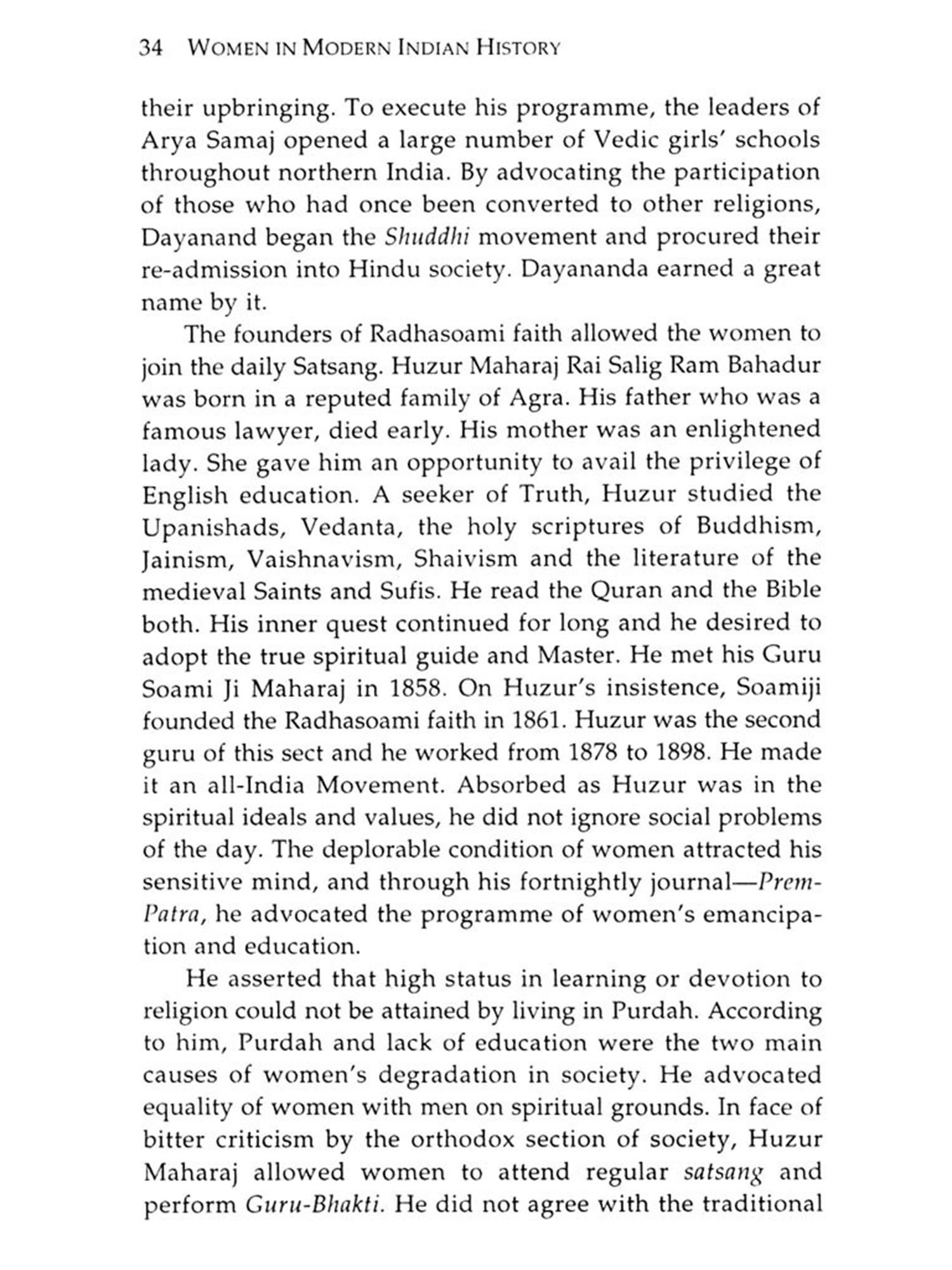 The present work entitled, 'Women in Modern Indian History' is the outcome of my curiosity and sincere efforts to study and understand the aspirations and determinations of the modern Indian women. They made efforts to change their socio-economic status and position in the light of the new liberal currents of the 19th century renaissance. Their gradual development began with the logical thoughts of the reformers and social thinkers who felt that for the attainment of freedom and self-government in the country, the women must be liberated enough to shoulder the new responsibilities in free India. Women welcomed the fresh fragrance of the new education and readily absorbed it in their lifestyle and other social ends. The outworn traditions were willingly discarded by them, especially in the urban regions. They emerged as individuals "nationally important and socially useful." They daringly crossed every hurdle on their way to their emancipation. They swiftly marched ahead on the road to plenty, progress, and prosperity for themselves as well as for their nation.