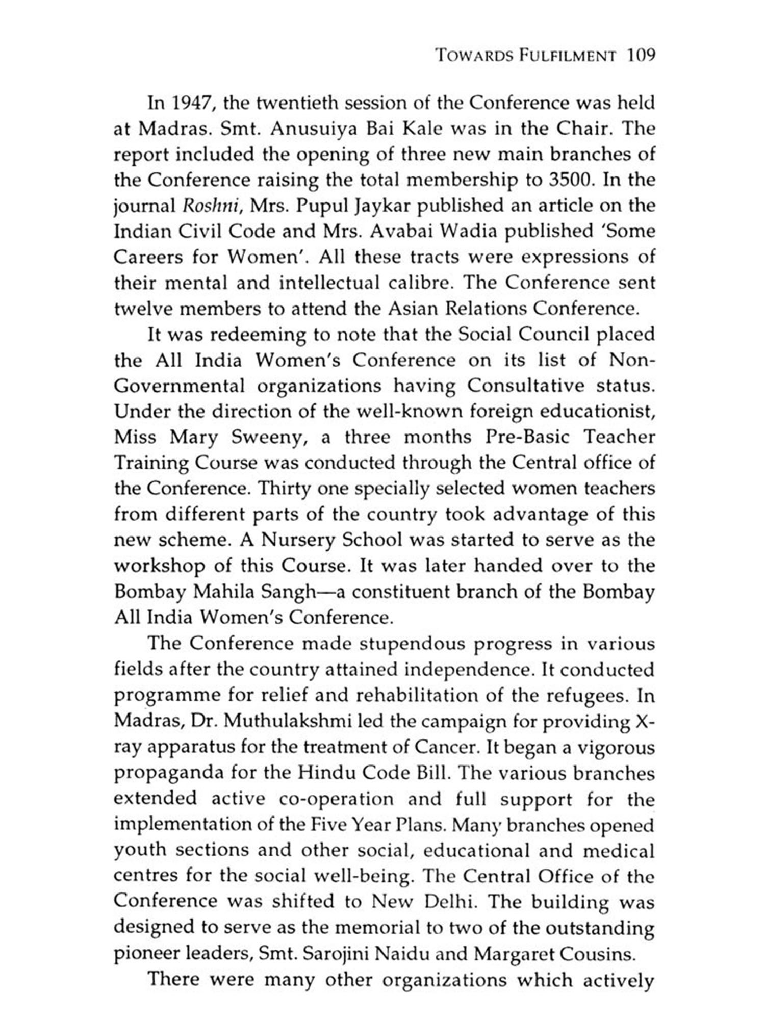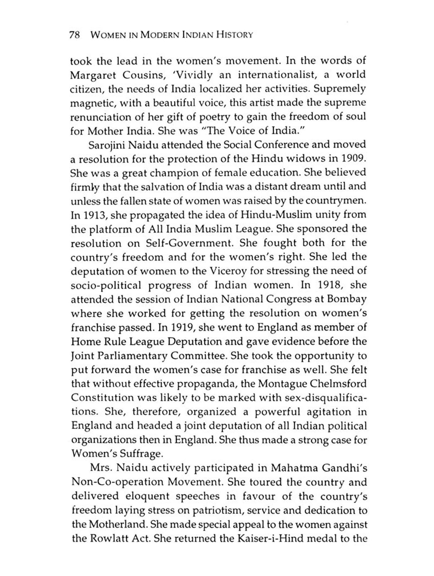 I am obliged to my mother Prof. Pratima Asthana, who has been a pioneer in research and writing, in the field of gender history. Besides research and writing, she has also worked through many organizations for the cause of womens' upliftment. I am also grateful to all those who have contributed to women's history and brought to light the contribution of modern Indian women in a new setting and background. I am obliged to Prof. Jafri, HOD, Delhi University for his ready help and advice.