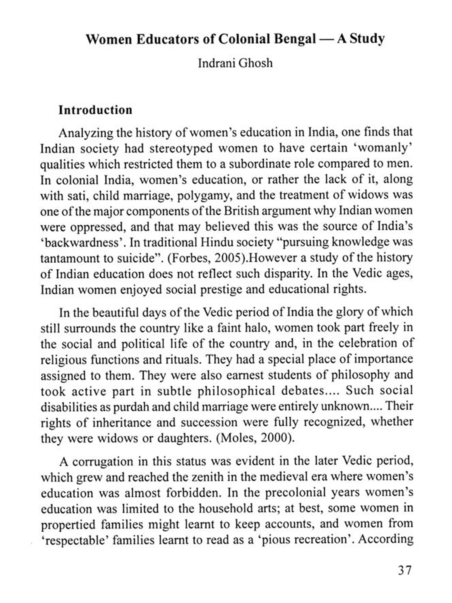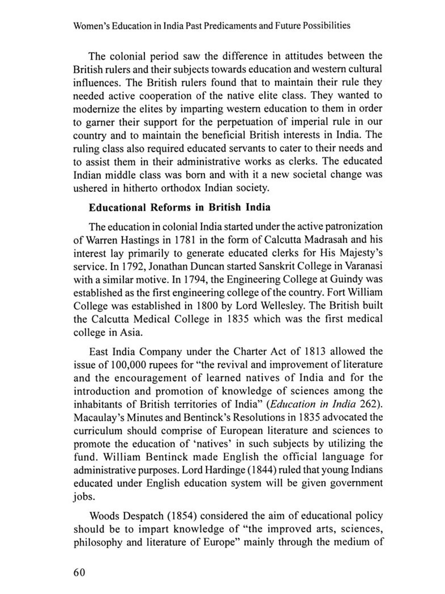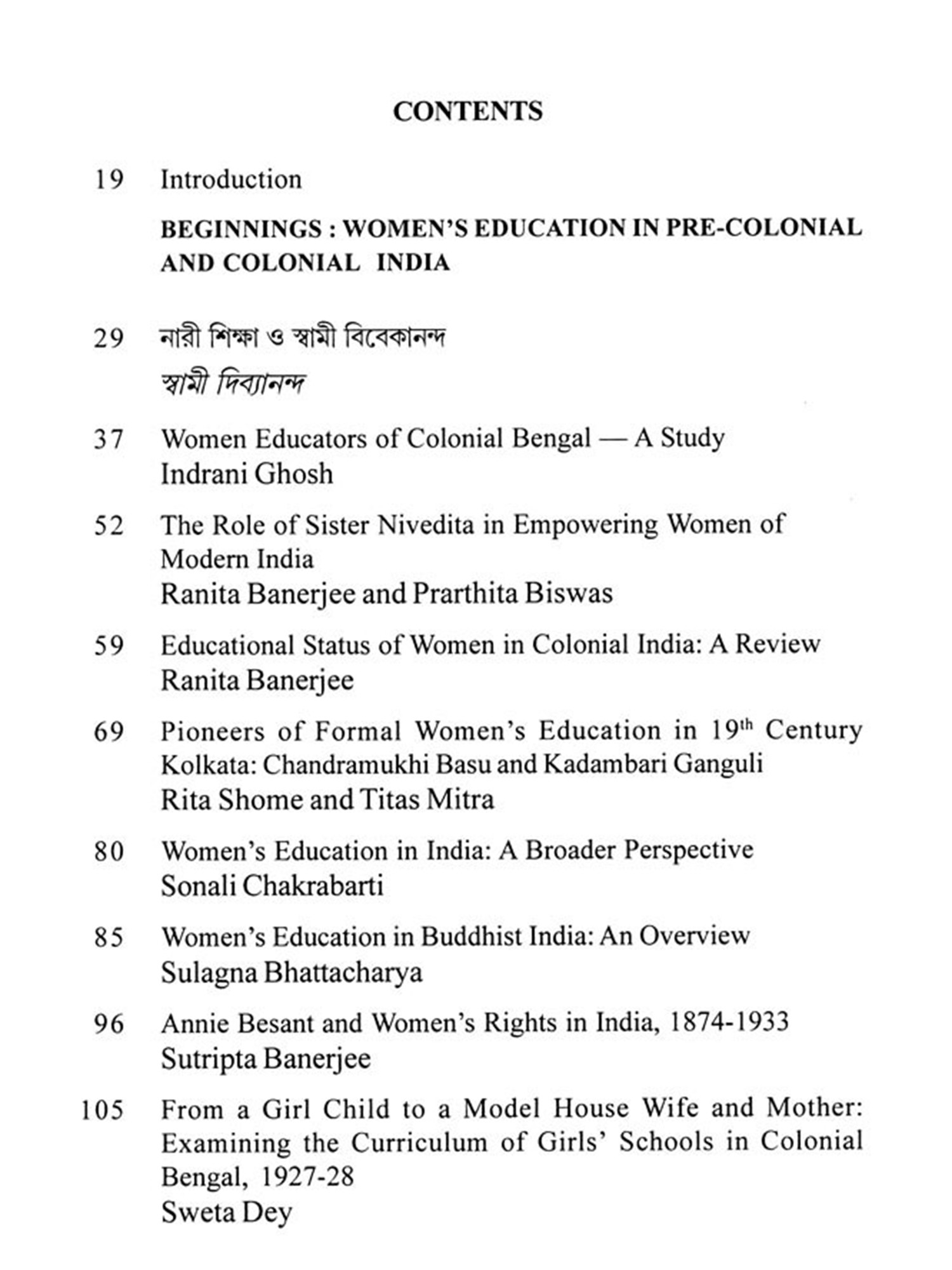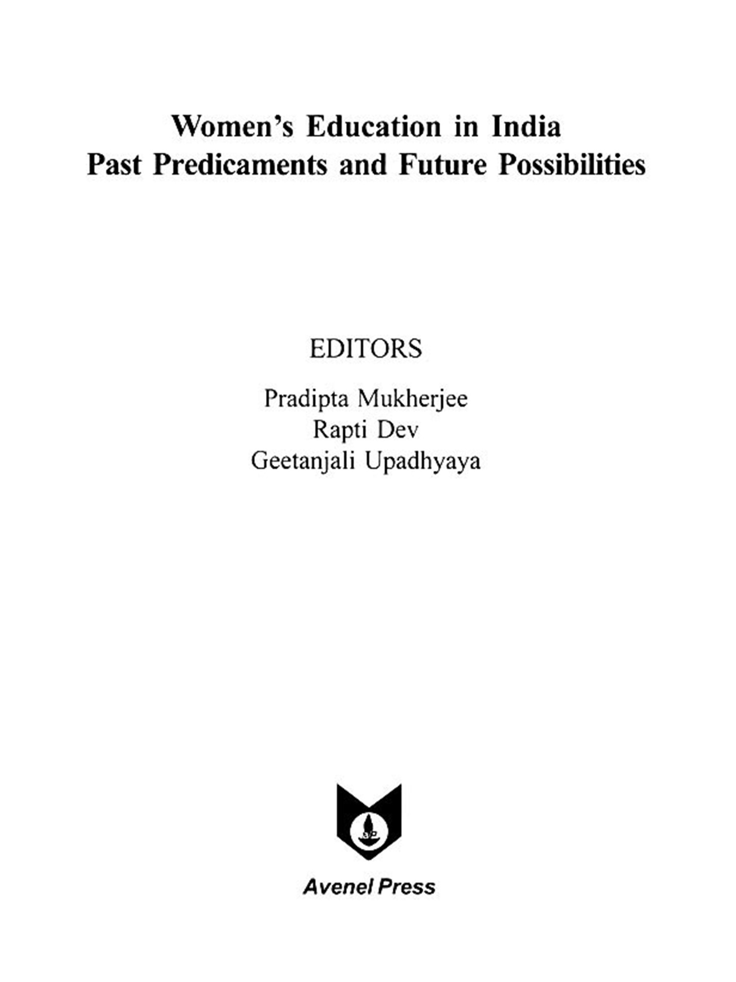The tumultuous intellectual history surrounding Women's Education in India, both Colonial and Postcolonial, has carved out its own complex trajectory, sorting issues, raising counter issues, struggling to find homogeneity in contrariety. The journey has never been smooth. One finds loads of contrariety on its smooth, often overtly polished surface. To highlight the myriad shades, engage and debate past predicaments and future possibilities of Women's Education in India has been our objective.