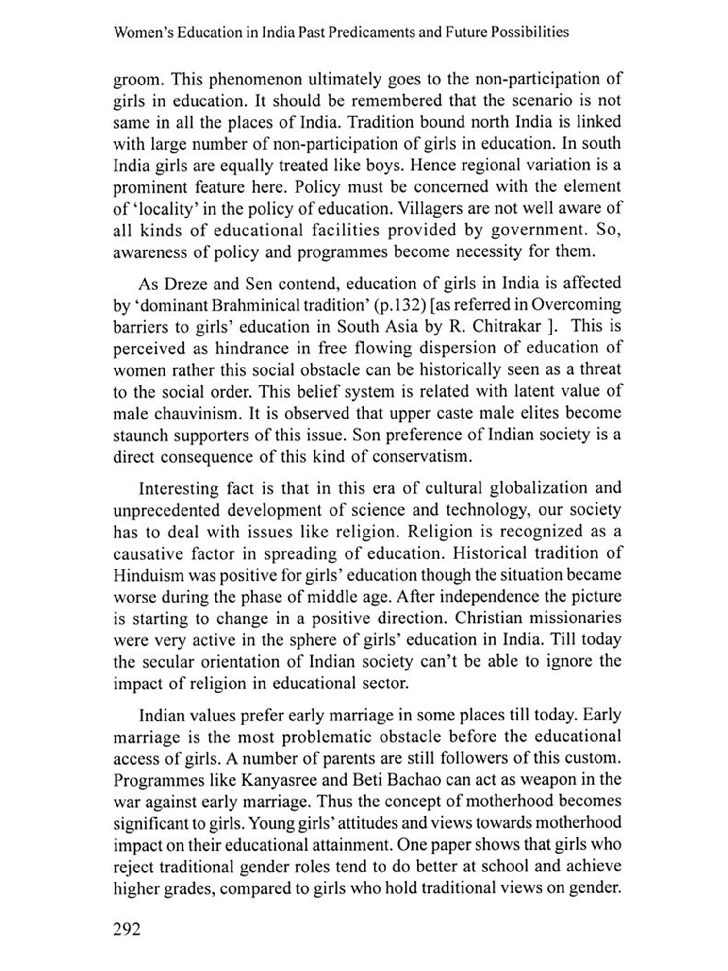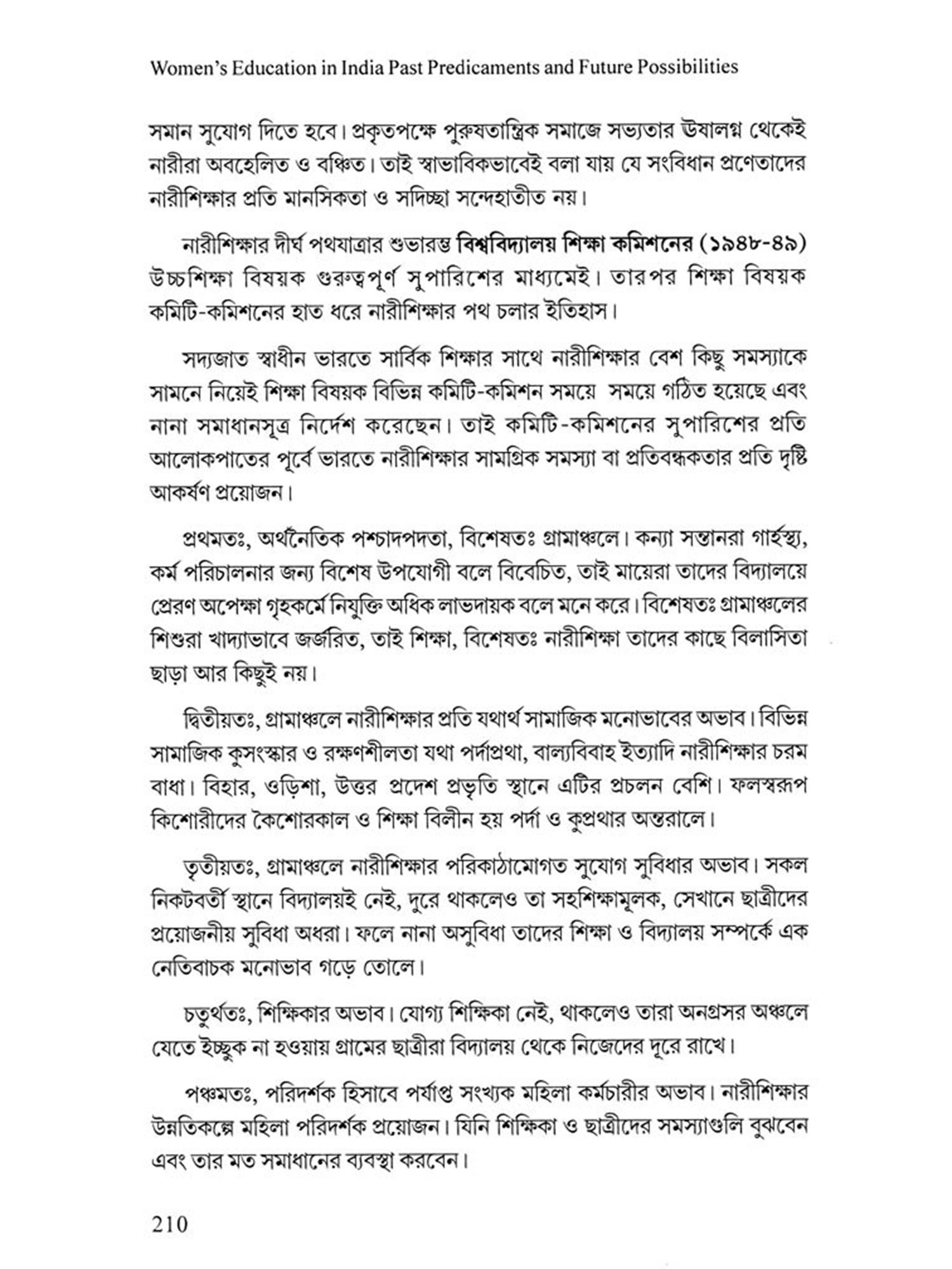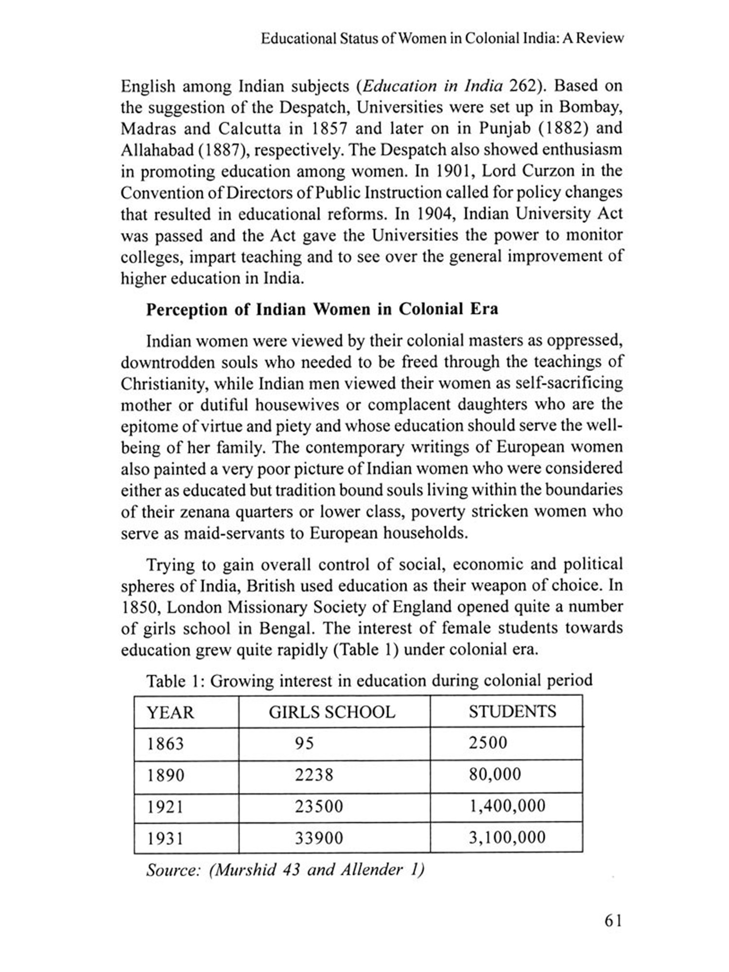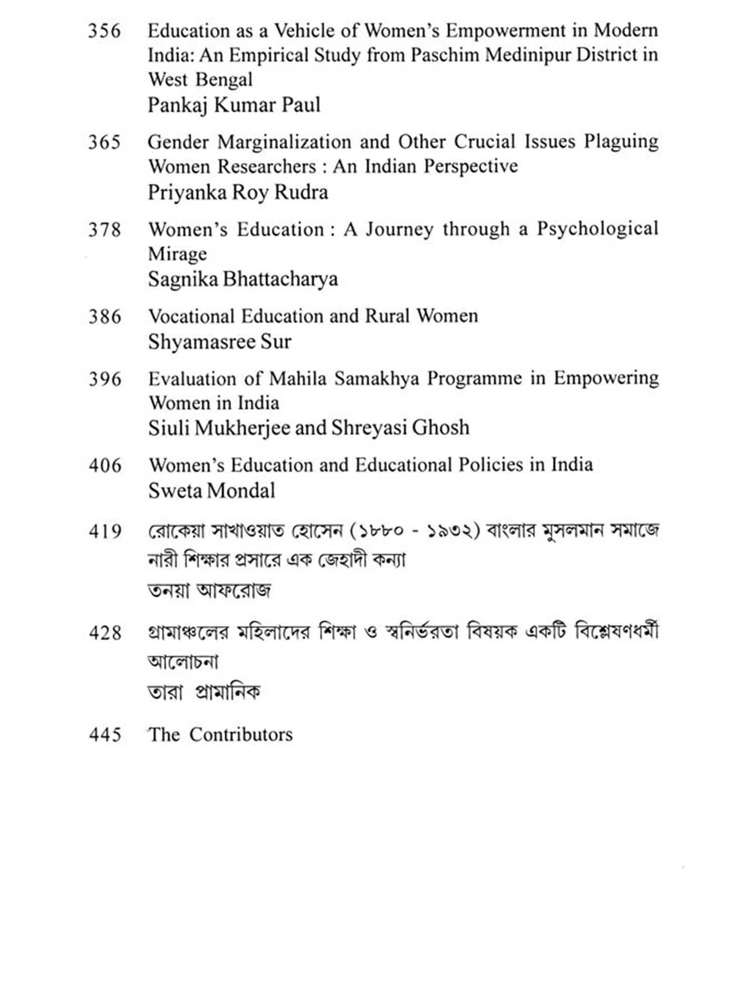 The tumultuous intellectual history surrounding Women's Education in India, both Colonial and Postcolonial, has carved out its own complex trajectory, sorting issues, raising counter issues, struggling to find homogeneity in contrariety. The journey has never been smooth. One finds loads of contrariety on its smooth, often overtly polished surface. To highlight the myriad shades, engage and debate past predicaments and future possibilities of Women's Education in India has been our objective.