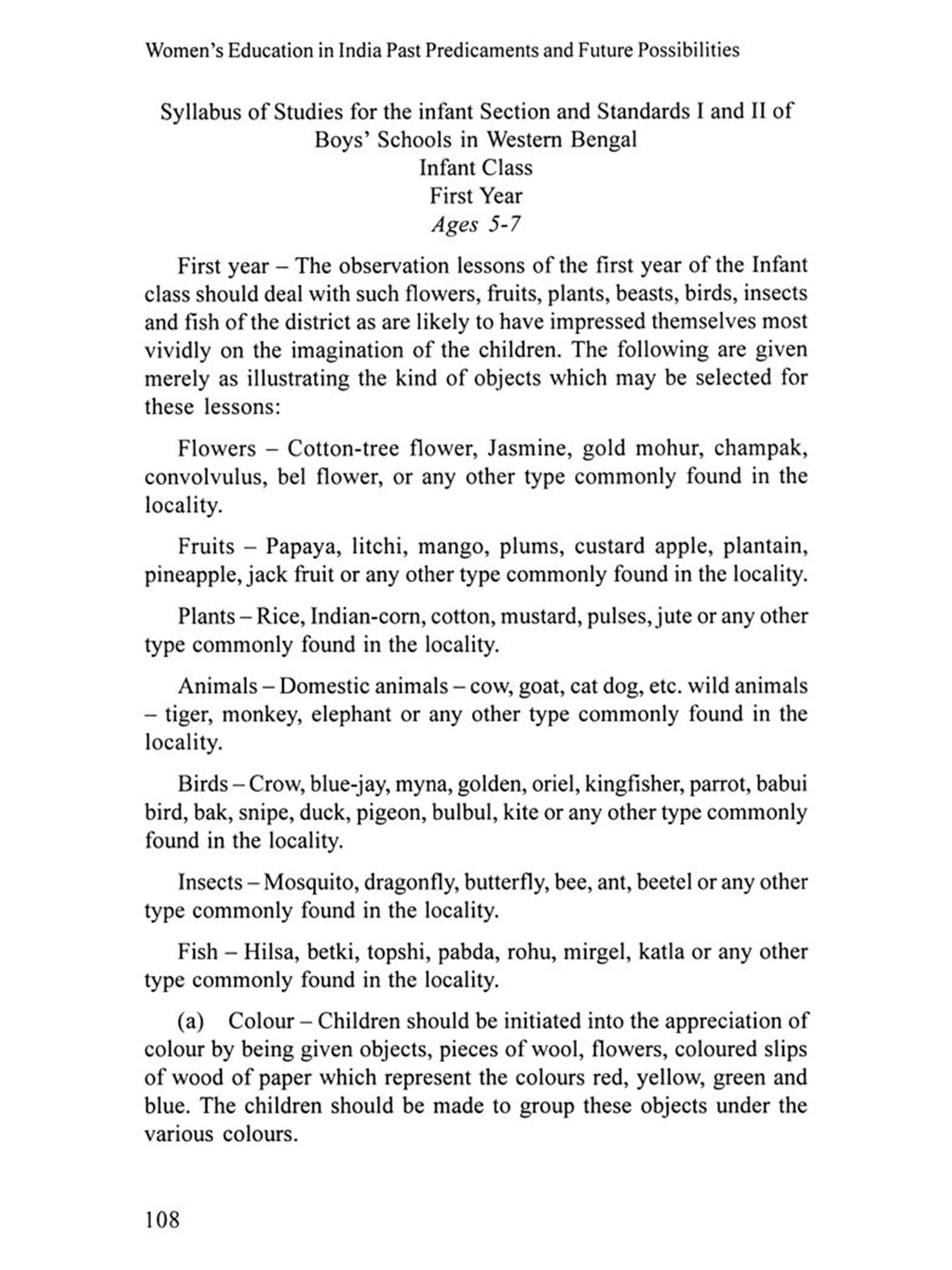 Alternatively, developments in Bengal built a powerful pretext for later viewing women's indigenous education through the prism of Victorian moral norms of family, 'character' and respectability, and the use of Western educational models to educate them. This was even before the intervention of Macaulay's famous Minute of 1835, which saw English imposed in all government funded classrooms.