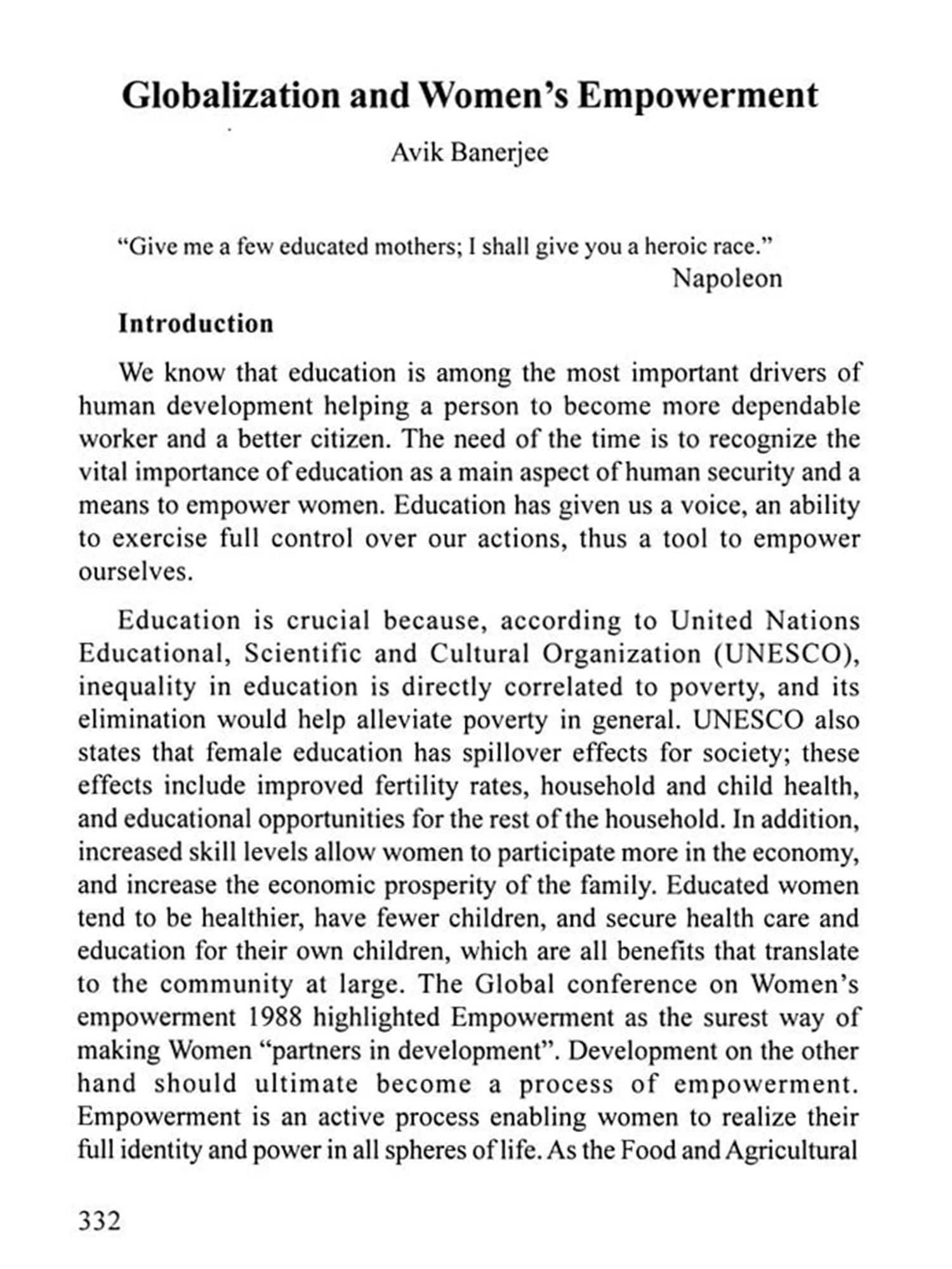 This volume of conference proceedings, we hope, shall hold a mirror up to society where women, the marginalized 'other', shall see themselves reflected. The essays assembled here contemplate heart-wrenching issues like the injustices women suffer, the hardships of a woman's 'everyday', more so because of the lack of education subsequently barring the way to their economic independence and empowerment.