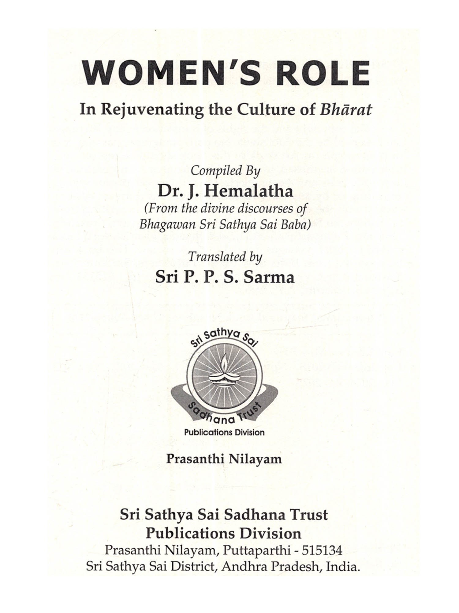 Publisher: Sri Sathya Sai Sadhana Trust, Publications Division