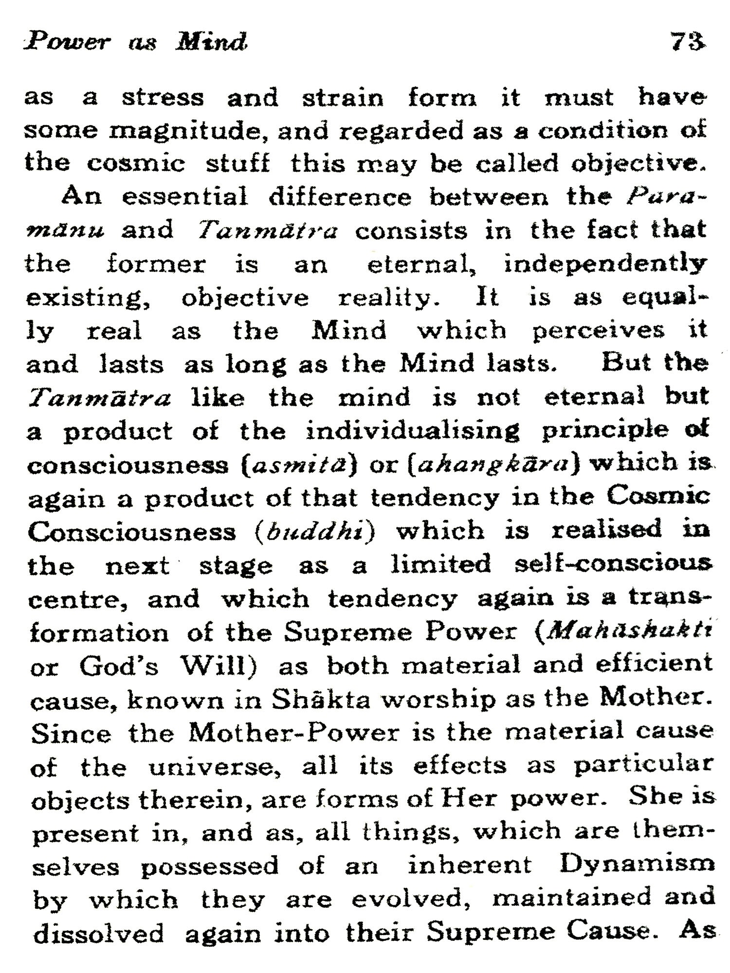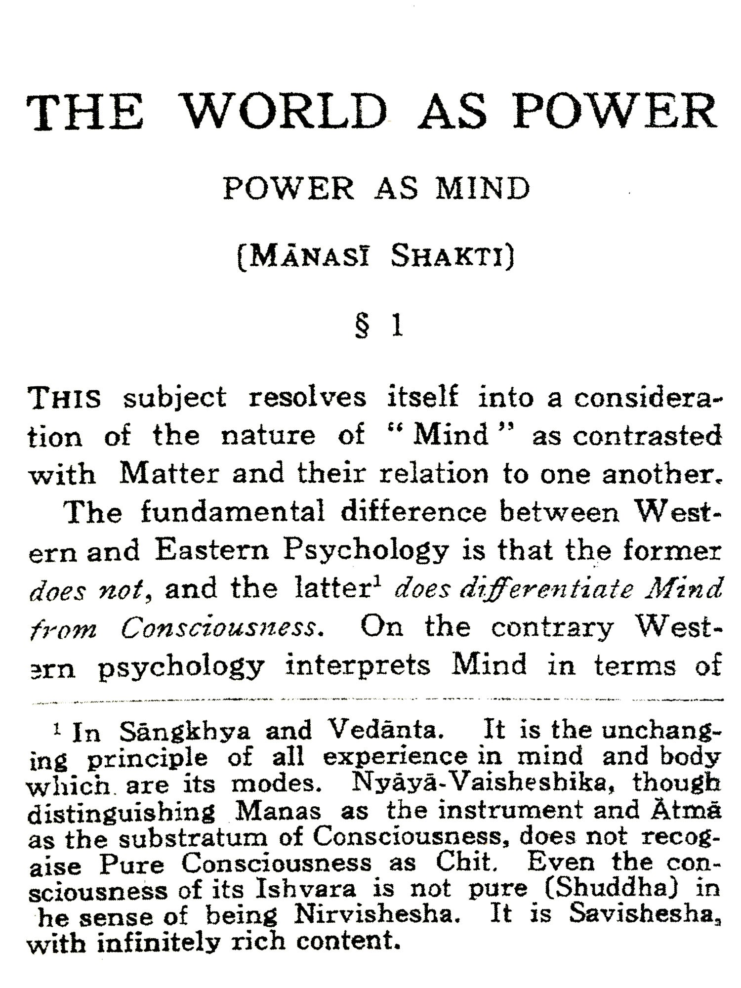 "The World as Power, Power as Mind" by Sir John Woodroffe, also known by his pseudonym Arthur Avalon, is a significant philosophical work that explores the concept of the universe as an expression of power, specifically focusing on the power of consciousness or mind. In this text, Woodroffe delves into the Tantric view that the material world is a manifestation of divine power, which is essentially consciousness. He presents the idea that the universe itself is not just an inert mechanical entity but is alive with consciousness, which manifests as both the material and the mental. Woodroffe's analysis integrates elements of Hindu metaphysics, particularly the concepts of Shakti (the divine force or power) and Maya (the cosmic illusion), with a focus on how these principles express through mind and matter.