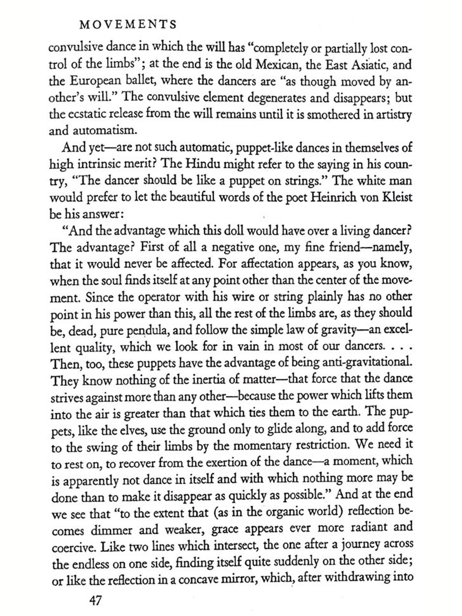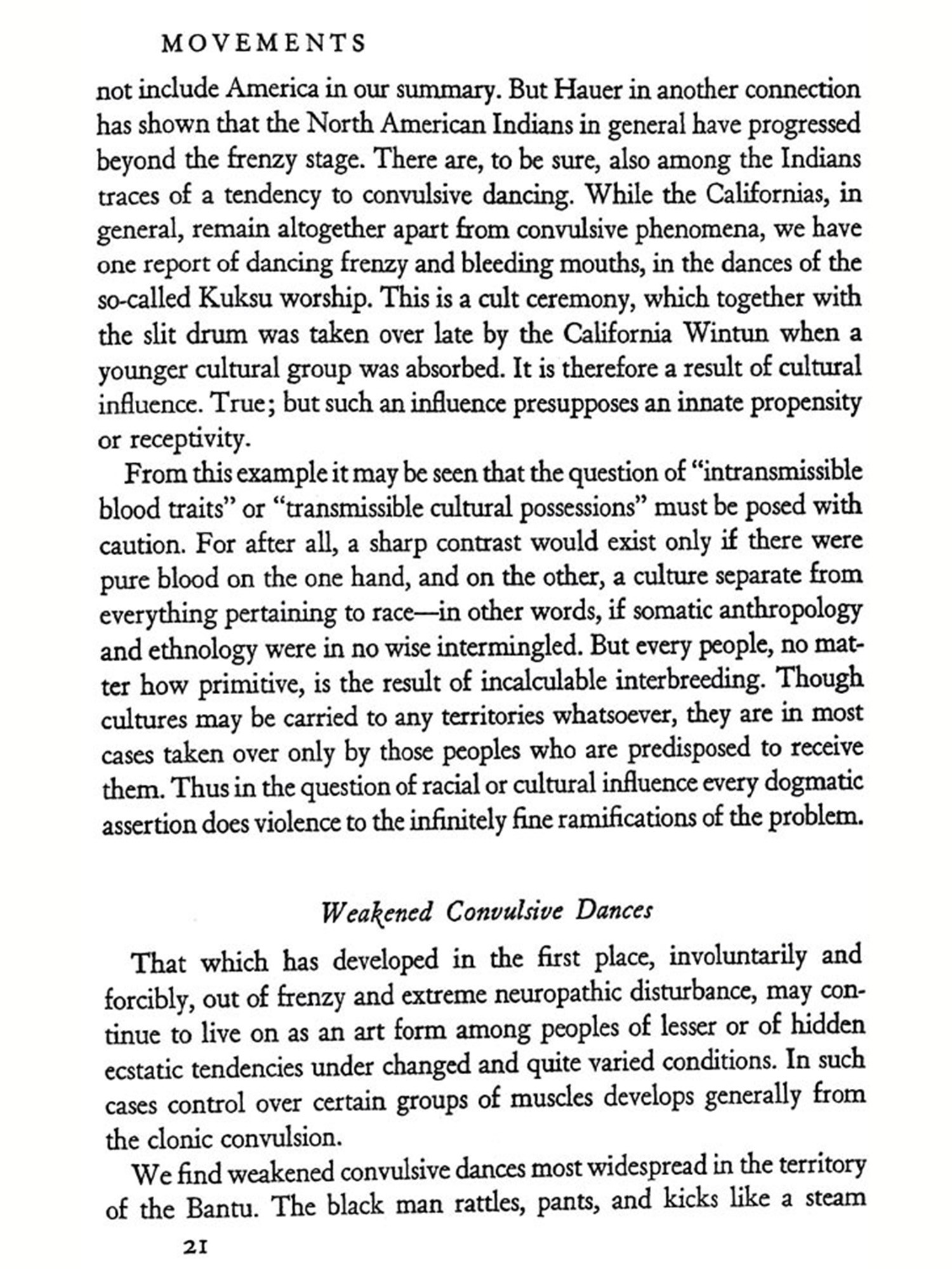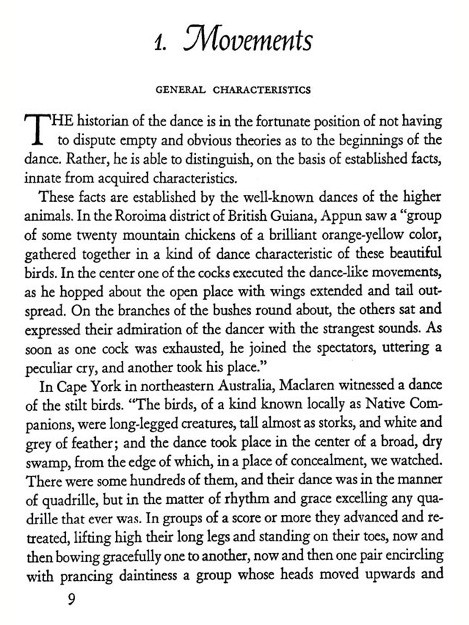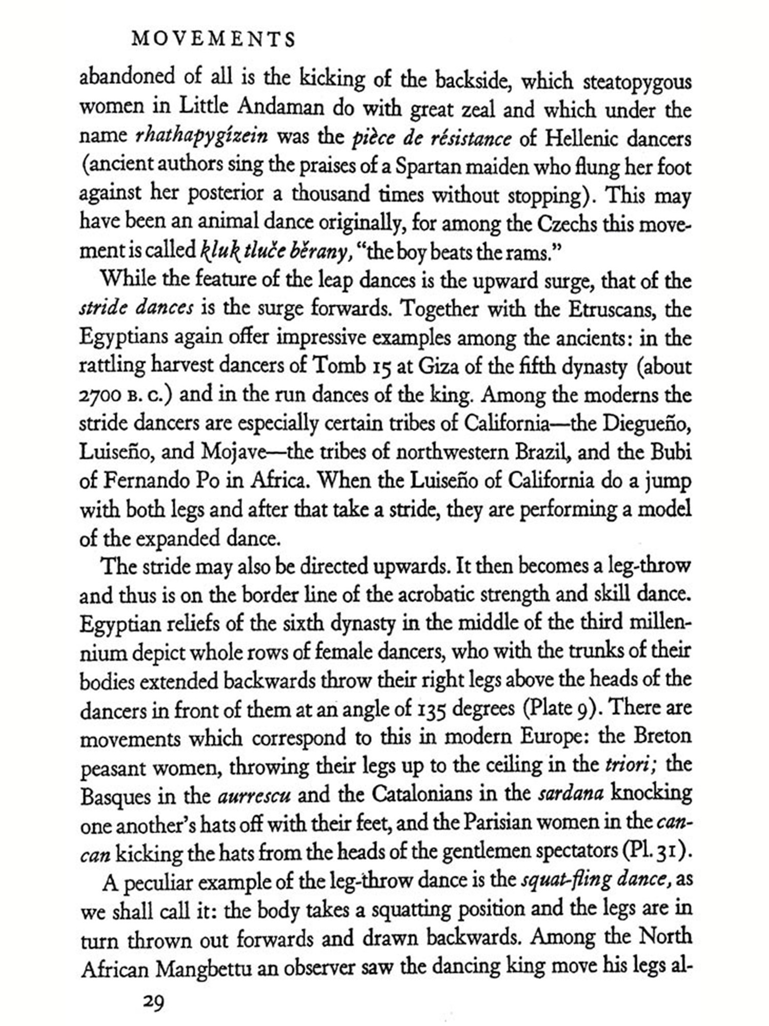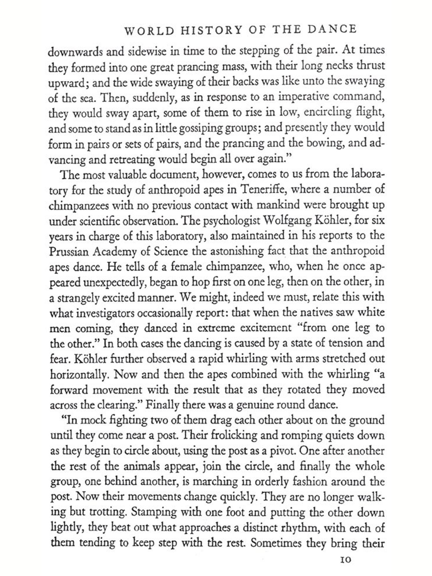 THE dance is the mother of the arts. Music and poetry exist in T time; painting and architecture in space. But the dance lives at once in time and space. The creator and the thing created, the artist and the work are still one and the same thing. Rhythmical patterns of movement, the plastic sense of space, the vivid representation of a world seen and imagined-these things man creates in his own body in the dance before he uses substance and stone and word to give expression to his inner experiences. The word art does not altogether express this idea. Indeed, one almost fears to use the word, for its present-day significance, exaggerated and at the same time circumscribed, is not sufficient to explain what the dance in all its richness really is. The dance breaks down the distinctions of body and soul, of abandoned expression of the emotions and controlled behavior, of social life and the expression of individuality, of play, re-ligion, battle, and drama-all the distinctions that a more advanced civilization has established. The body, which in ecstasy is conquered and forgotten and which becomes merely a receptacle for the super-human power of the soul, and the soul, which achieves happiness and bliss in the accelerated movements of a body freed of its own weight; the need to dance, because an effervescent zest for life forces the limbs from sloth, and the desire to dance, because the dancer gains magic powers, which bring him victory, health, life; a mystic tie binding the tribe when it joins hands in the choral dance, and the unconstrained dance of the individual in utter devotion to self-there is no "art" which includes so much, Repressed powers are loosed and seek free expression; an innate sense of rhythm orders them into lively harmony. Harmony deadens and dis sipates the will. Delivered then from his will, the dancer gives himself over to the supreme delight of play prescribed by custon, gives himself over to the exhilaration, which carries him away from the monotony of everyday life, from palpable reality, from the sober facts of his ex-perience-thither where imagination, fancy, and vision waken and become creative. In the ecstasy of the dance man bridges the chasm between this and the other world, to the realm of demons, spirits, and God. Captivated and entranced he bursts his earthly chains and trembling feels himself in tune with all the world. "Whosoever knoweth the power of the dance, dwelleth in God," cries the Persian dervish poet Rumi im-pulsively. The dance, inherited from savage ancestors as an ordered expression in motion of the exhilaration of the soul, develops and broadens into the search for God, into a conscious effort to become a part of those powers beyond the might of man which control our destinies. The dance becomes a sacrificial rite, a charm, a prayer, and a prophetic vision. It summons and dispels the forces of nature, heals the sick, links the dead to the chain of their descendants; it assures sustenance, luck in the chase, victory in battle; it blesses the fields and the tribe. It is creator, preserver, steward, and guardian. From its deep and far-reaching influence it will be apparent that in the life of primitive peoples and of ancient civilizations scarcely any-thing approaches the dance in importance. It is no art that disregards bread; on the contrary, it provides bread and everything else that is needed to sustain life. It is not a sin, proscribed by the priest or at best merely accepted by him, but rather a sacred act and priestly office; not a pastime to be tolerated only, but a very serious activity of the entire tribe.