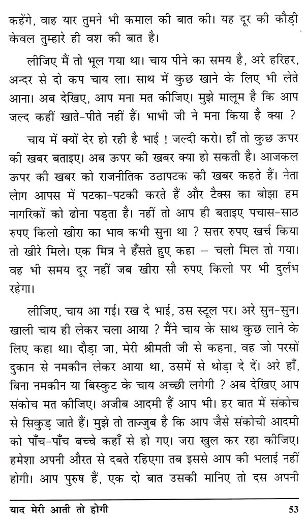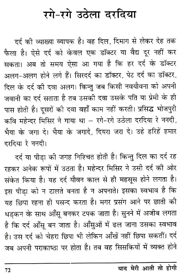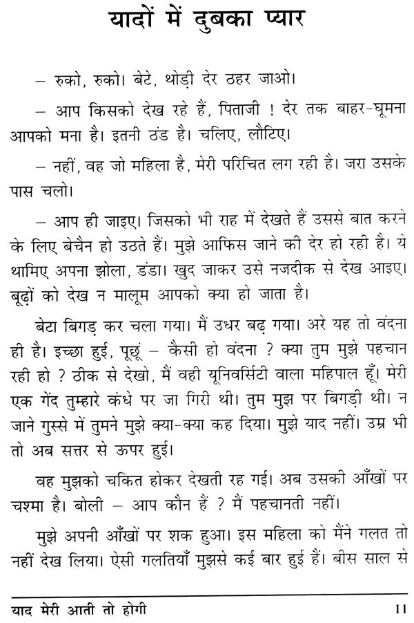 मेरी याद आती तो होगी 'फिल्मी गीत' सुनकर मैं भावुक हो उठा। अपने रसोइए ज्ञानेन्द्र से कहा अपने मोबाइल पर वह गीत लगा दो। गीत चलने लगा और उन क्षणों में मेरे हृदय की धड़कने तेज हो उठीं। किससे किससे पूहूँ कि क्या तुम्हें मेरी याद आती है ? मूक मन गुनगुनाता रहता है। कमरे में रात का अंधेरा पसरा है बिजली का स्वीच ऑफ है किन्तु मन जगा हुआ है। गाने गूँज रहे हैं। चुपके-चुपके गाने का आनन्द ही कुछ और होता है। आप भी तो गाते होंगे ? ये बातें मेरे दिल की धड़कने हैं। ऐसी धड़कनें जो आज तक खामोश नहीं हुई। यद्यपि प्रेम के पड़ाव से मेरी उम्र गुजर चुकी है। फिर भी उन पड़ावों को भूल पाना कठिन लगता है, ऐसा क्यों ? इसका उत्तर कौन देगा।