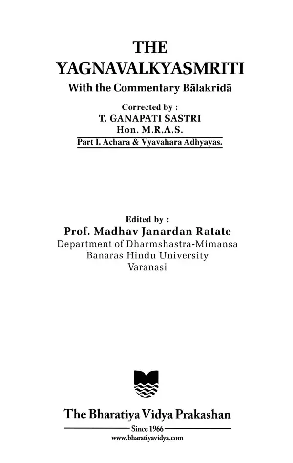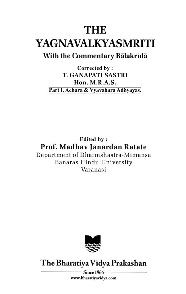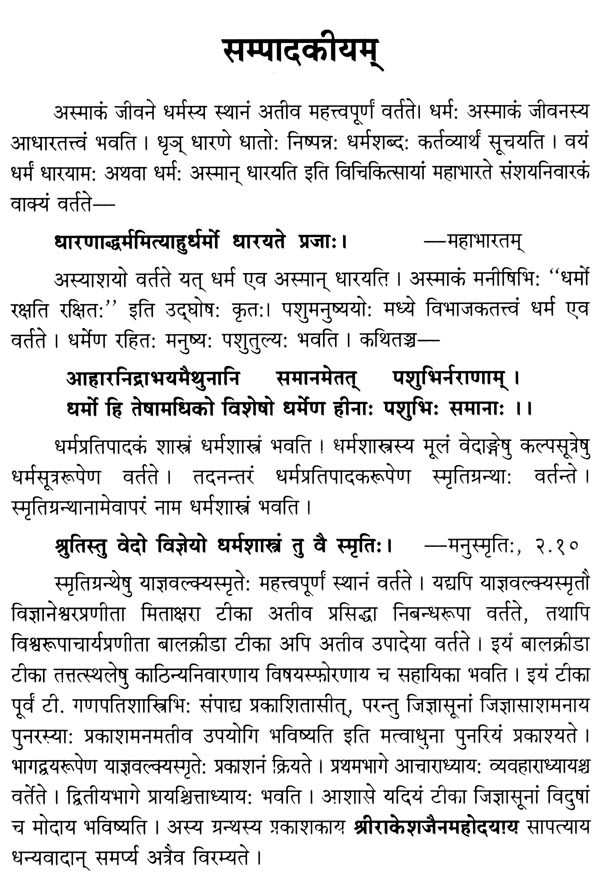 श्रीयाज्ञवल्क्यस्मृतिः The Yagnavalkyasmriti- With the Commentary Balakrida (Set of 2 Volumes)