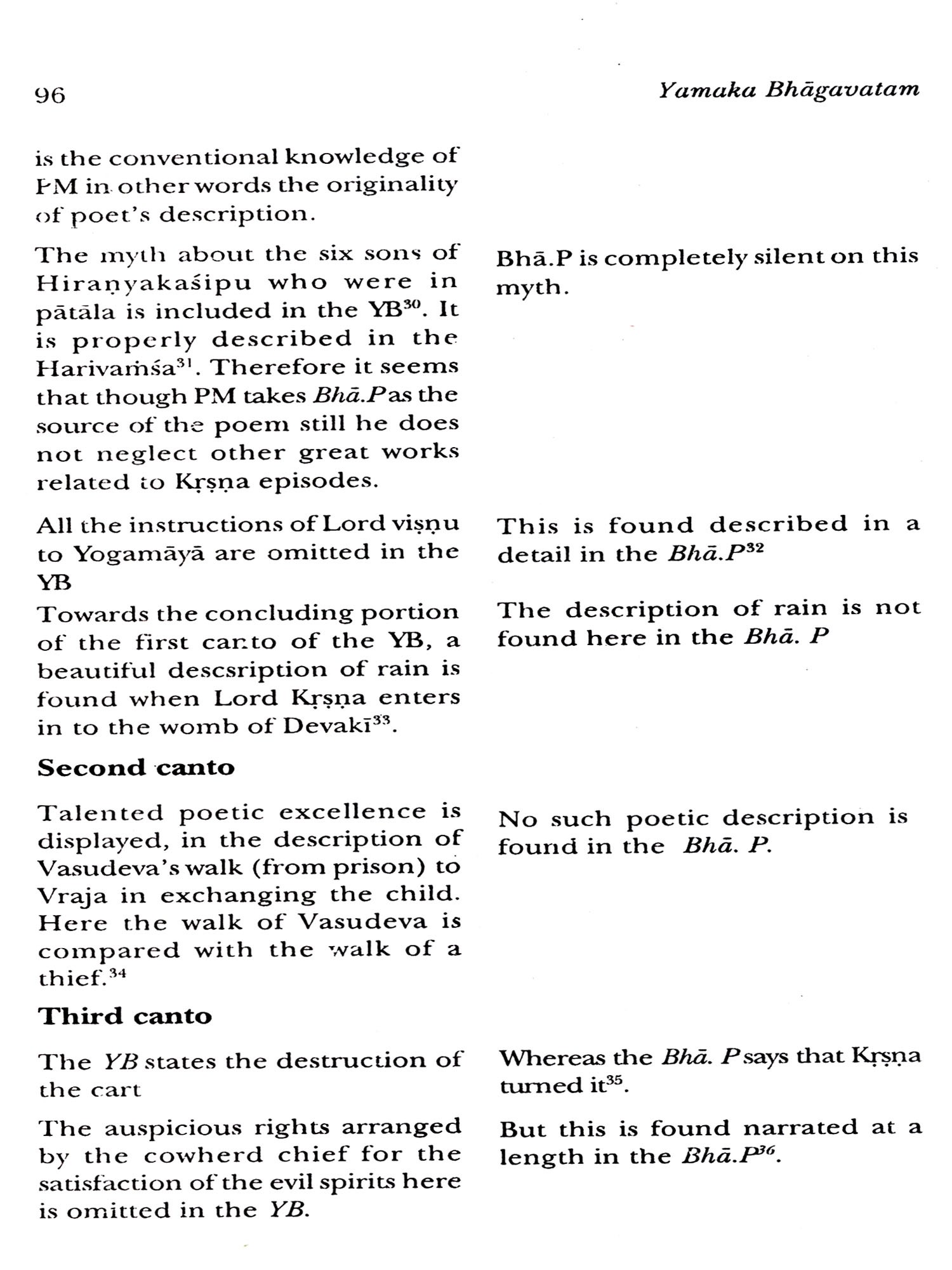 Composed in Yamaka alamkara throughout, the Yamaka Bhagavata draws the attention of the scholars at the first sight as Yamakakavya. Yamaka poems has not yet been studied and edited in Odisha and even this section of literature has not received the same treatment from the scholars like other poems. If I am not wrong, mine may be the maiden venture in Odisha to study and edit a Yamaka Kāvya. After consulting different catalogues and voluminous works on the History of Sanskrit literature, I was appalled to know that contribution of Odisha to Sanskrit Literature has not been properly highlighted. Poet Purusottama Misra was known as a famous commentator only by a few Odishan scholars. This is timely attempt to bring one of the innumerable manuscripts, lying unused and unattended in the libraries and remote localities, to lime light and establish the author with appropriate position in the galaxy of Sanskrit authors.