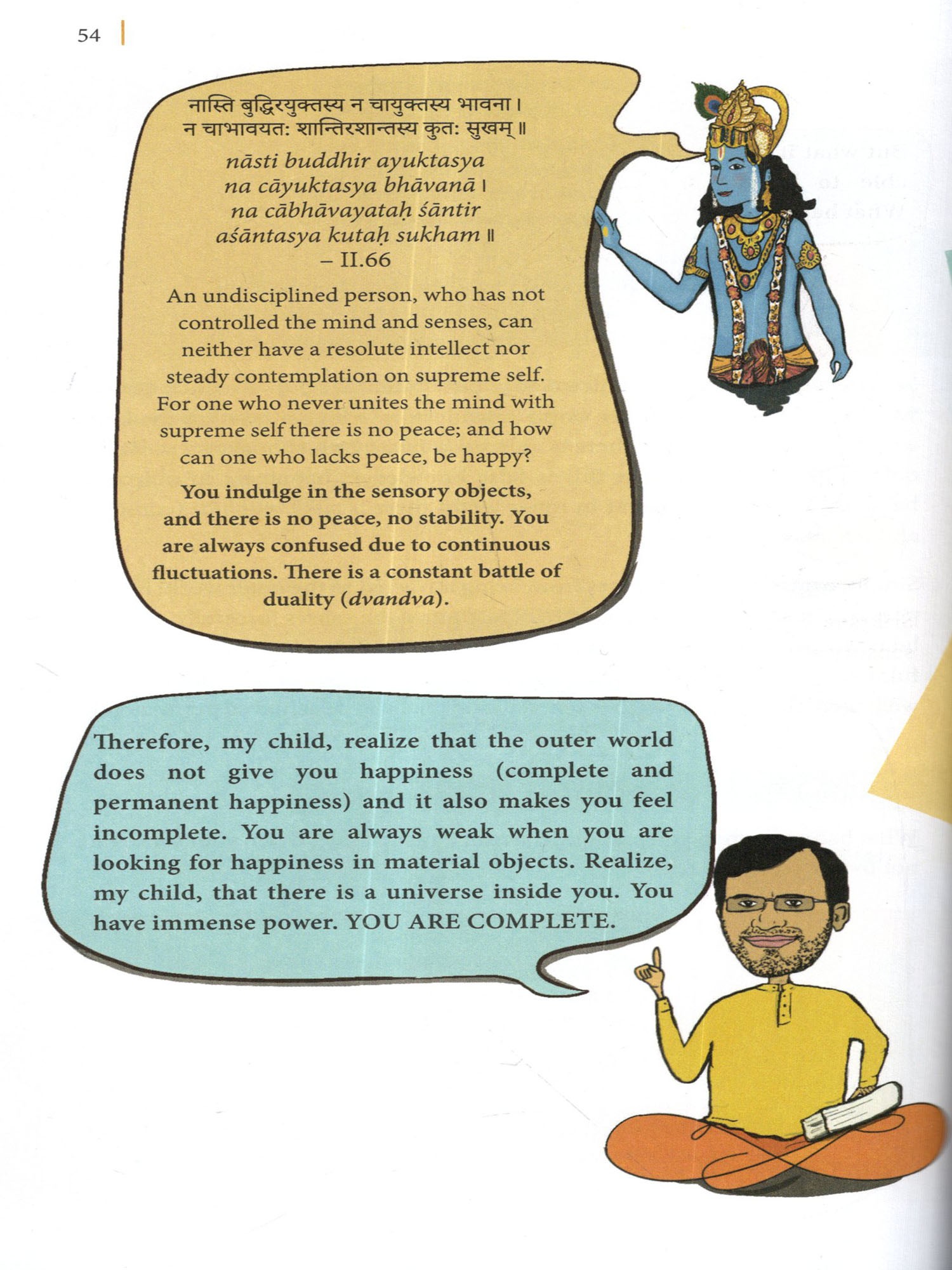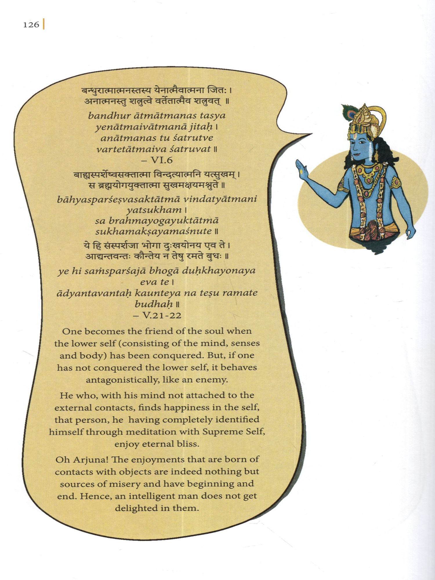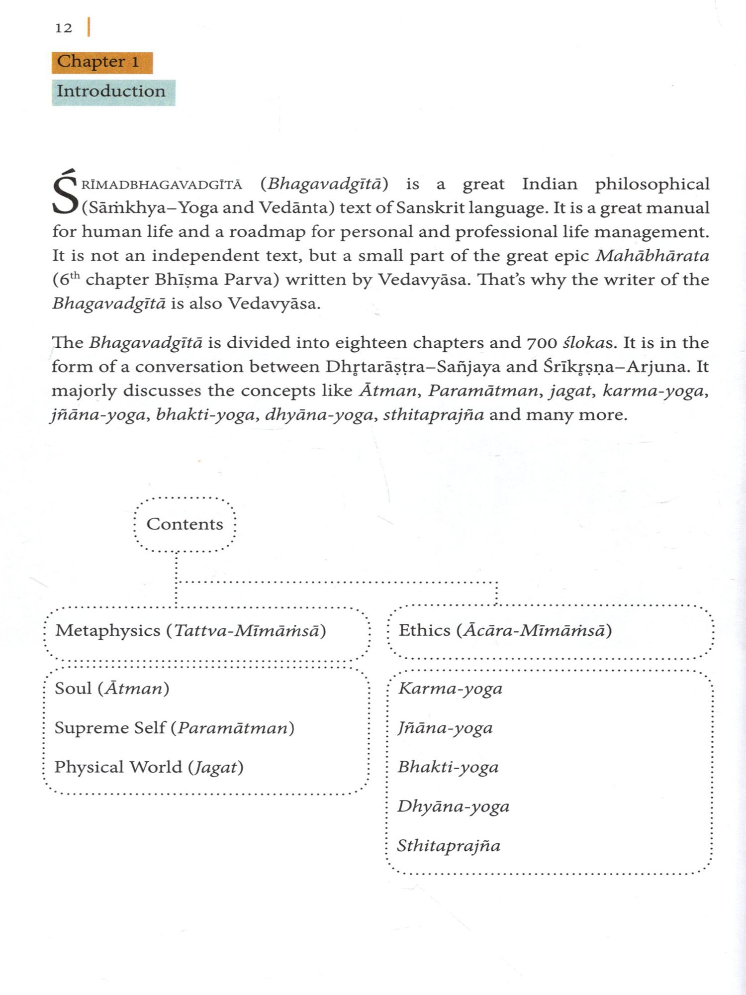 present book attempts to cover all the aspects e of yoga and self-I management discussed in the Bhagavadgita, which is a comprehensive text of personal and professional life management and adhyatma-sadhana (spiritual upgradation). This book is the outcome of more than ten years of my serious reading, learning, understanding, analysing and teaching the Bhagavadgita. I had been planning to write such a book for some time now, but it could not materialize due to one reason or the other. Even now, it was the enthusiasm of my student Nitin and his adroit designing skills which compelled me to bring my understanding of the Bhagavadgita in this visible form. Mere thanking him in words will not be sufficient for the contribution he has given in bringing out this illustrated work.