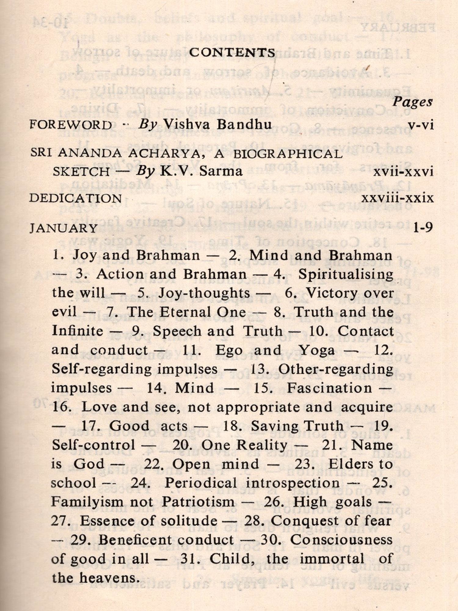 In the publication of this book, our sincere thanks are due to a local friend of our Institute, Shri D. D. Kapila, I. A. S. (Retd.), who has been pleased to express his deep interest in the study and propagation of the ideals of Indian culture by contributing one half of its cost of printing. It also deserves being mentioned that Shri K. V. Sarma of our Institute has been mainly responsible for seeing this work through the press and supplying it with an analytical Table of Contents, a very useful Subject Index and a Biographical Sketch of Swami Ananda Acharya.