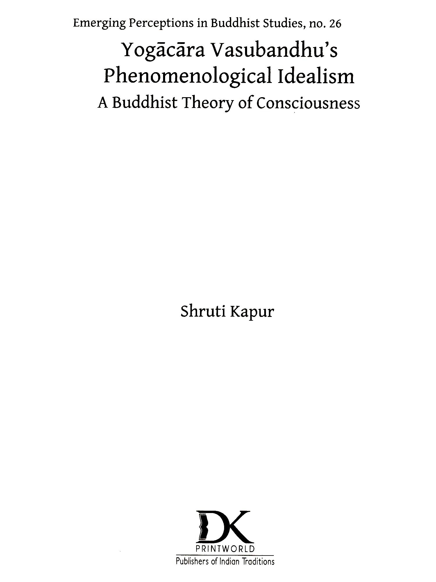 Yogacara Vasubandhu's Phenomenological Idealism A Buddhist Theory of Consciousness (Emerging Perceptions in Buddhist Studies, no. 26)