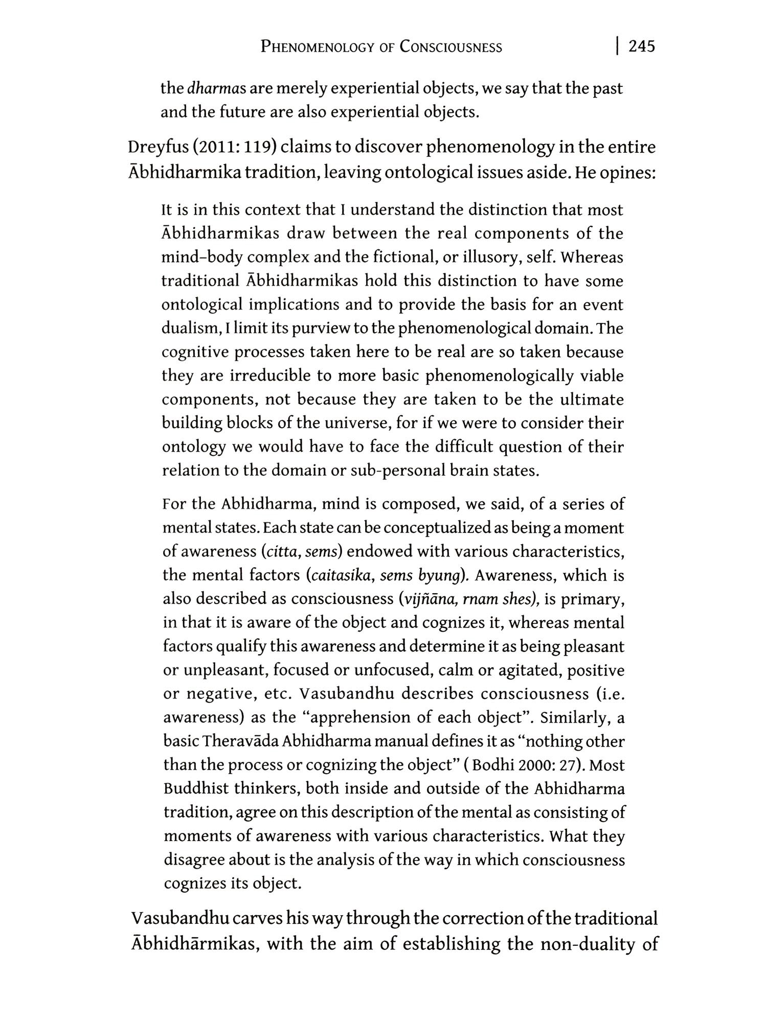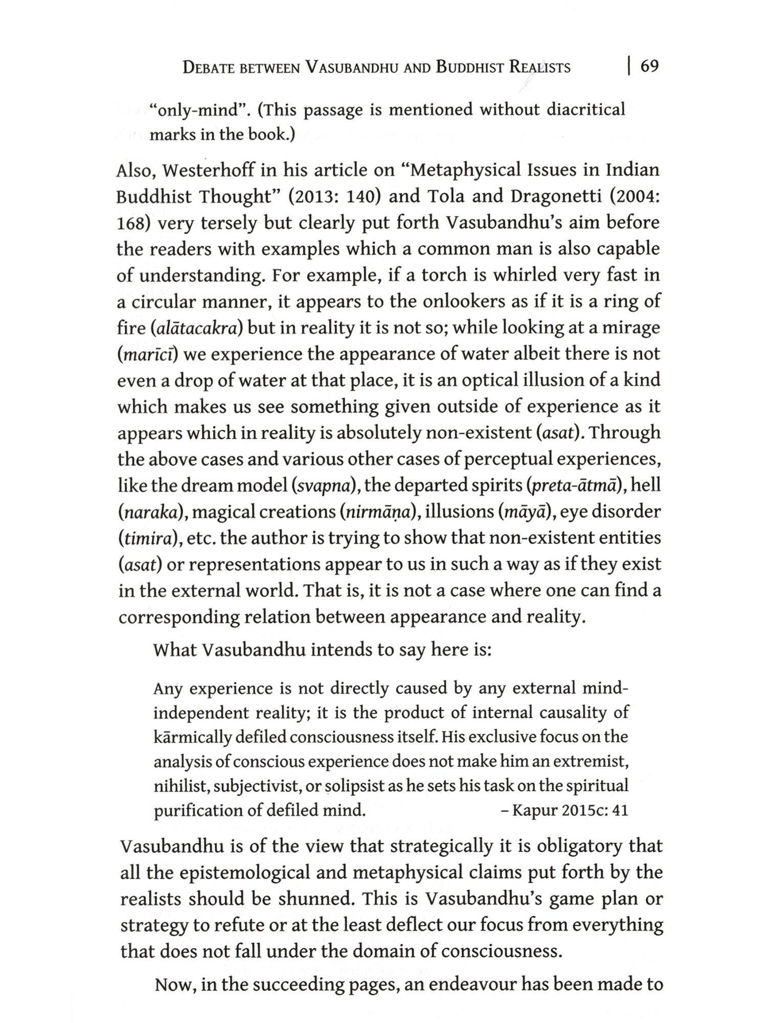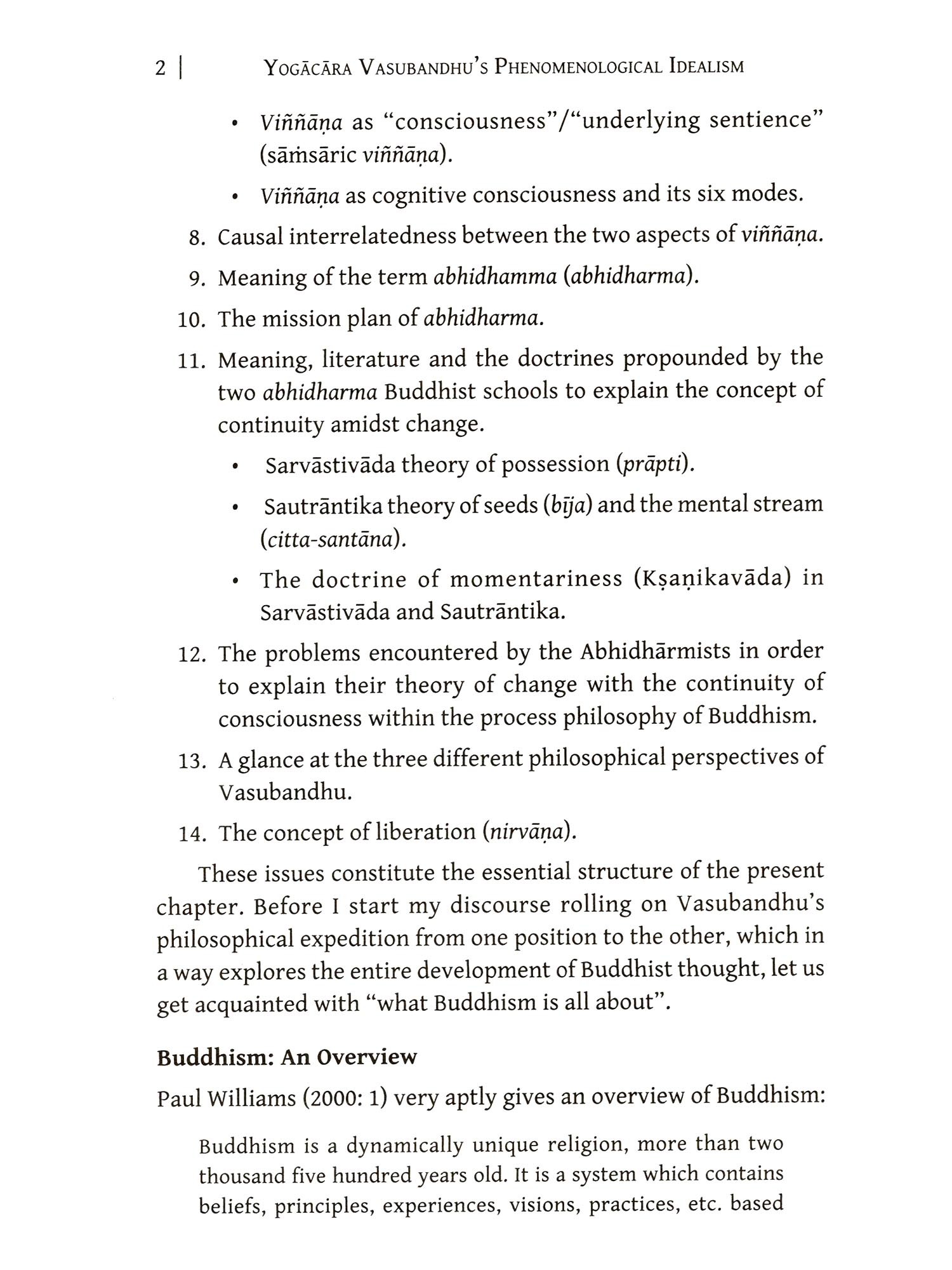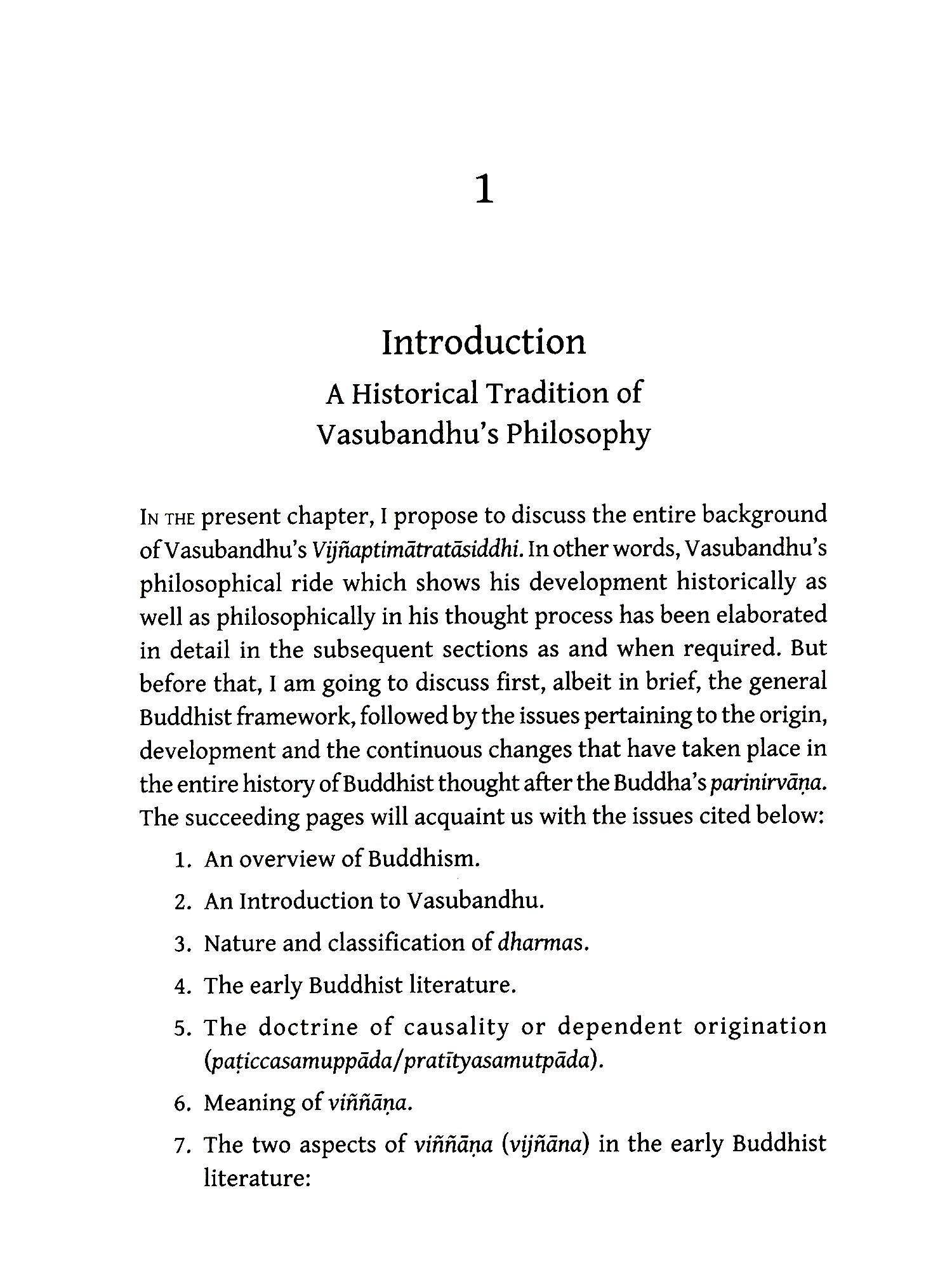 THIS book is an outgrowth of my PhD thesis written under the supervision of Professor Hari Shankar Prasad in the Department of Philosophy and submitted to the University of Delhi for PhD Degree, which was awarded in 2016. Before that I had done my three years BA (Honours) and two years MA (Philosophy) courses from Kamala Nehru College of University of Delhi, but MA classes were held in the Department of Philosophy, North Campus, where I regularly attended philosophy classes, one of which was on Indian/Buddhist philosophy by Professor Prasad. His lectures were not only most impressive among all, but also his personal care for the problems of the students outside the class in respect of easy access, extra classes and supply of reading materials. But he never degraded his standard, hard work and sincerity, which the students took seriously. He would not tolerate any error in writing or diacritical marking what he had been trained by his own intolerable PhD supervisor Professor J.W. de Jong (Australian National University, Australia). This kind of discipline was certainly in the interest of the researchers themselves. Such a tough discipline suited my temperament and I decided to join Professor Prasad's MPhil course on Buddhist philosopher Vasubandhu's early text, Abhidharmakośa-Kārikā written from Sarvästivāda-Vaibhāşika points of view and his Bhāşya on it from Sauträntika points of view, and also wrote MPhil dissertation under his supervision in the same area, which was completed successfully with highest marks.