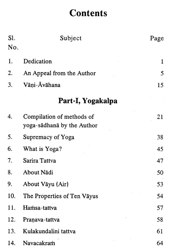 Yoga ordinarily means to add or to connect or to unite one thing with another. Yoga in its spiritual dimension implies the union of jivatma with Paramatma. The great yogi Yajnavalkya has said: "Samyogo ityukto jivatmaparamatmanoh." Apart from this, making the body firm is yoga, keeping the mind well and steady is yoga, bringing citta to the state of single tune is yoga, uniting prana with apana vayu is yoga, blending nada and vindu is yoga, controlling prana vayu is yoga, uniting Kundalini sakti with Paramasiva in sahasrara is yoga. There are also innumerable types of yoga in the scripture: jnanayoga, bhaktiyoga, rajayoga, hathayoga, layayoga, karmayoga etc. In the Gita Sri Bhagavan has described: "Yoga karmasukausalam". In Patanjala darsan it is treated as `Scittavrttinirodhah'. It is now evident that yoga is the substratum of all sadhanas. It has, presently, assumed international dimension as the people of the world have shown deep interest in the practice of yoga which brings all-round development of man. Yoga helps man to strike through the mask of maya which cannot spread its illusive network before a yogi. One cannot attain true knowledge without practicing yoga. More so there can be no salvation without yoga. Lord Sadasiva advises: "Vina yoge na devo' pi na muktim Iavate priye." (Yogavija,3 1). When one controls and channelizes the outgoing indriyas, intelligence and mind inward and connects these to Paramatma through yoga, one is able to attain salvation. Yoga emancipates man from its narrow boundaries of ego, selfishness, jealousy, enemity and endow him with sublime bliss, compassion, selflessness, service, sacrifice and love etc. But siddhi in yoga is attained chiefly by the grace of Sri Gurudev when he blesses a practitioner of yoga by noticing his love and sincerity in practicing yoga. It goes without saying that yoga is meant for bringing welfare to one and all but when it is utilized to harm others; it opens the door to hell for the practitioner.