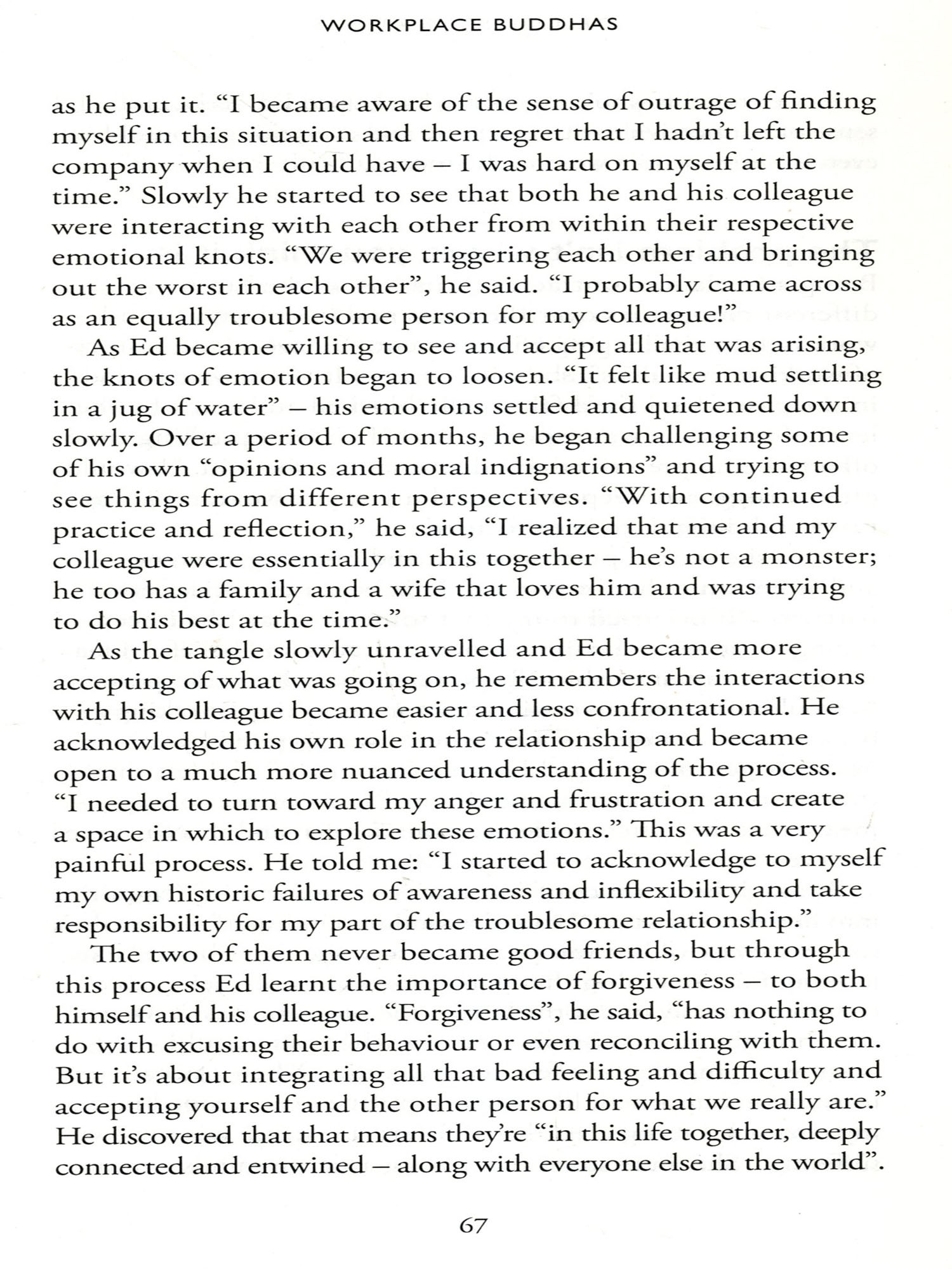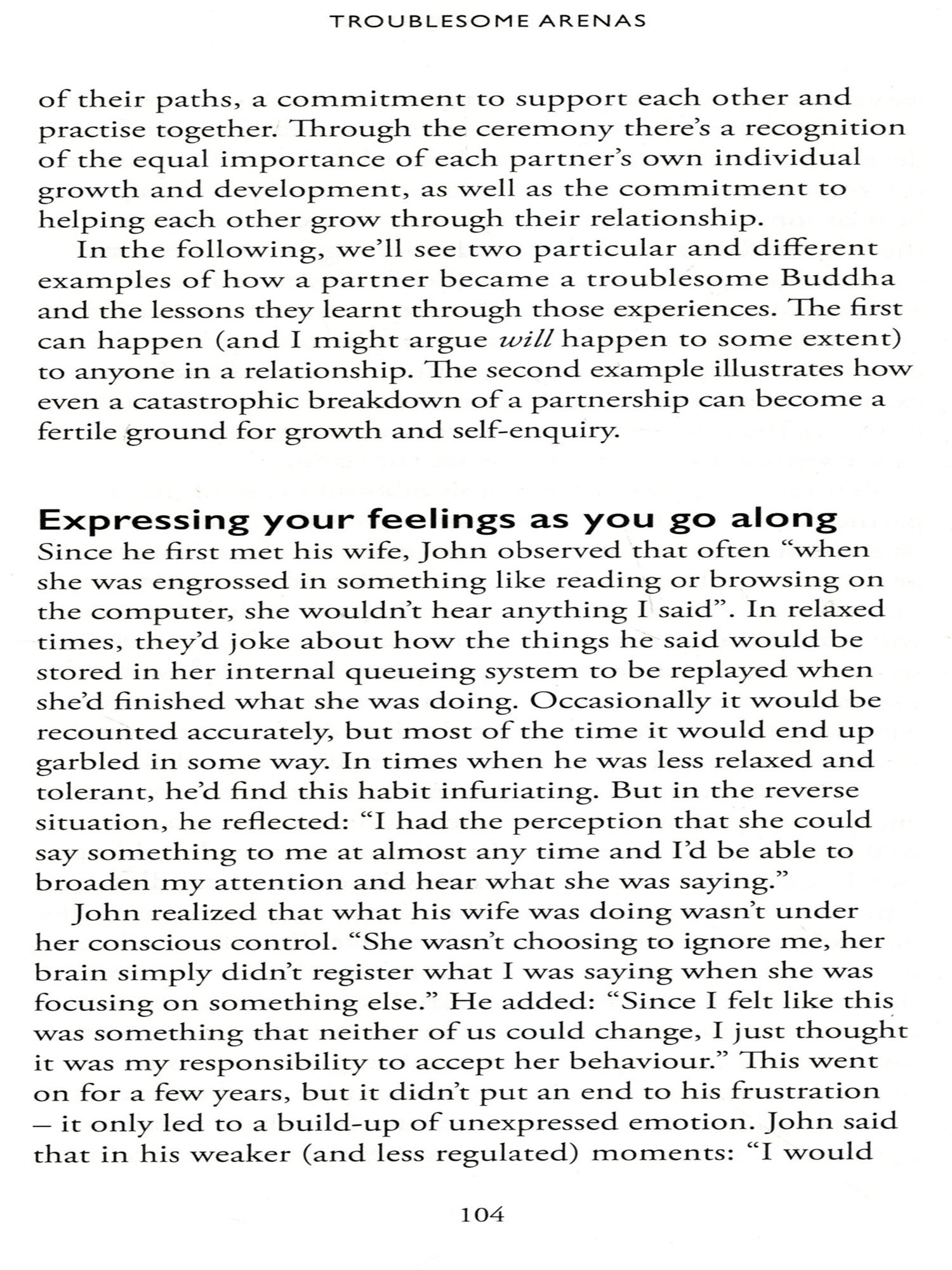 Most often, however, the outcome was very different. I have seen for myself psychologically well-adjusted, unselfish and luminous human beings emerge from this abrasion. The essence of the work was clarity and awareness. When leavened with generosity of spirit, humour and compassion, transformation could be rapid. The quotation above, a rather free translation from the work of Japanese Zen master Keizan (1268-1325), was frequently cited by our teachers. Your troublesome Buddha is the person who presses your buttons, bringing up sensitivities and irritation, jealousy, inadequacy or other buried miscontents. No suffering can be dealt with in the abstract. It is only as these things arise into consciousness that we have the opportunity to resolve them.