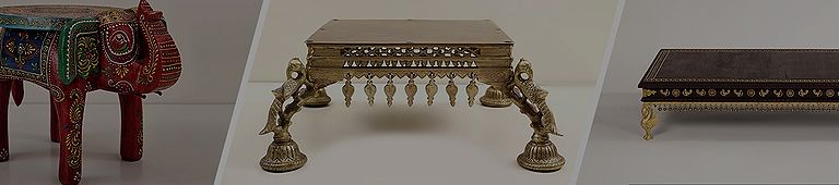 Add a touch of elegance and functionality to your home with our beautiful collection of Pooja chowki, Wooden stools and pedestals. These wooden artifacts are perfect for seating or as a home decor display stand. Handcrafted by skilled artisans, they come in a variety of designs and finishes to complement any home decor.