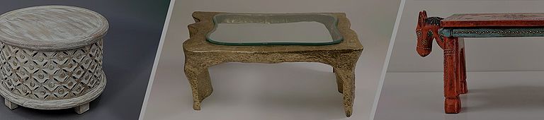 This assortment offers a variety of designs, shapes, and embellishments to choose from. The gracious brass tables can be the perfect choice for getting a modern and contemporary look in your home or workspace with a simple and neat interior setting. Hand painted vintage wooden tables with intricate detailing showcase exquisite craftsmanship and the timeless beauty of classic art.