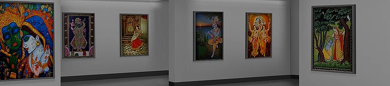 Some of these paintings depict Krishna as the object of worship of devotees, which means that not only are these paintings on the subject of Krishna but also revolve around the theme of Krishna. Unfailingly depicted with flawless shringar and framed to perfection, each of these works would be a fine addition to the homes of Krishna lovers all over the world.