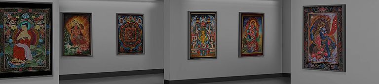 Black and White manjushree,green tara and white tara thangka in newari style Thangka (Brocadeless Thangka)