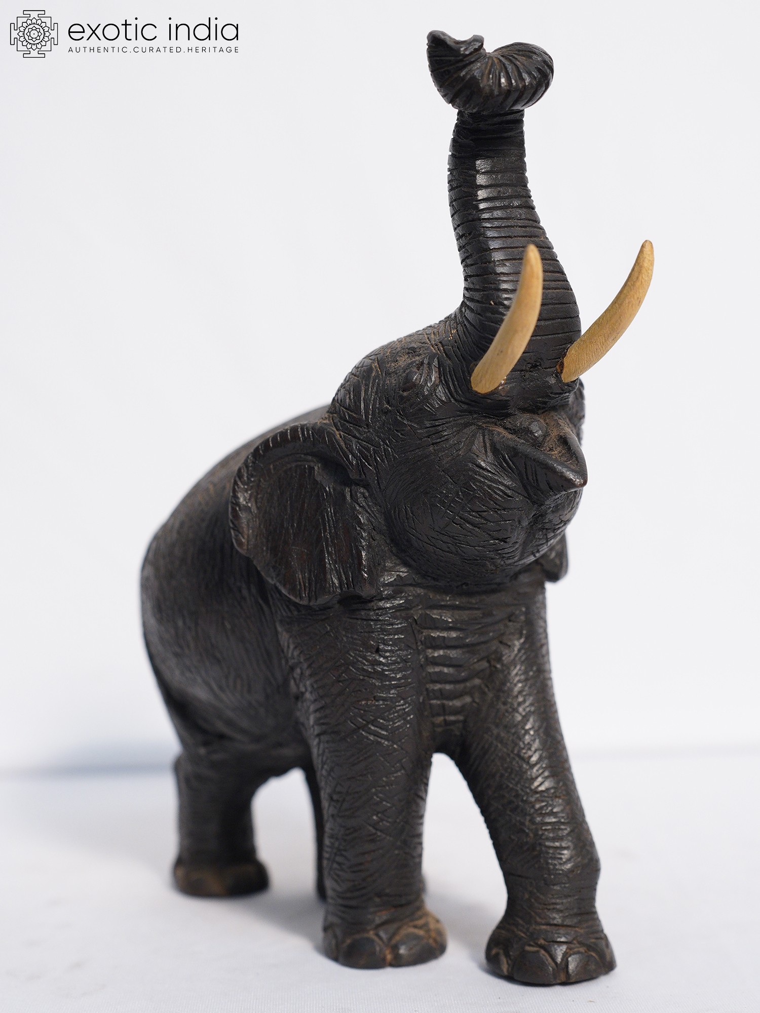 Small Elephant Statue with Upraised Trunk | Brass Statue