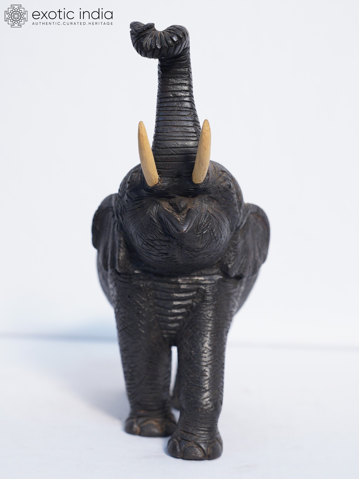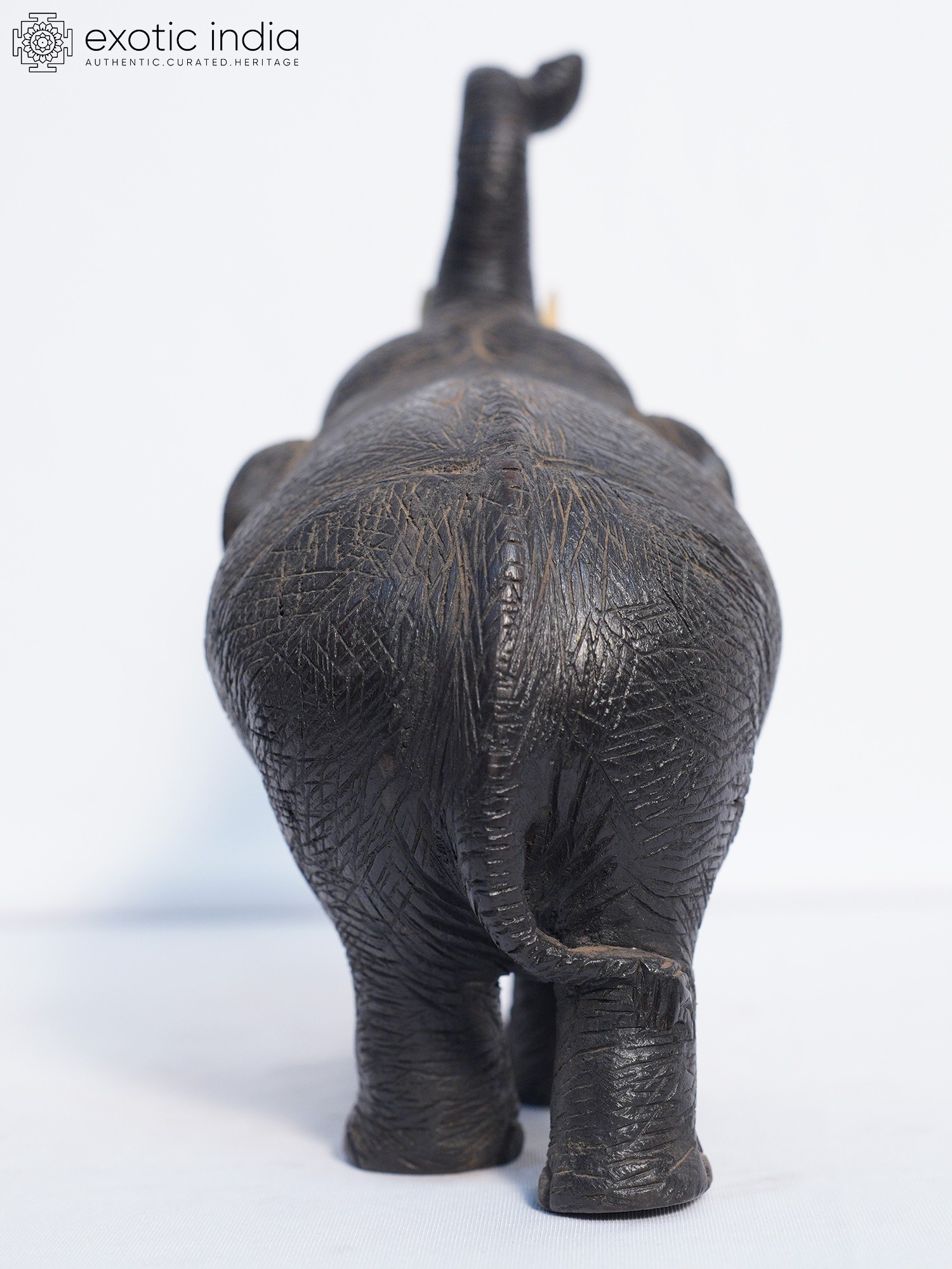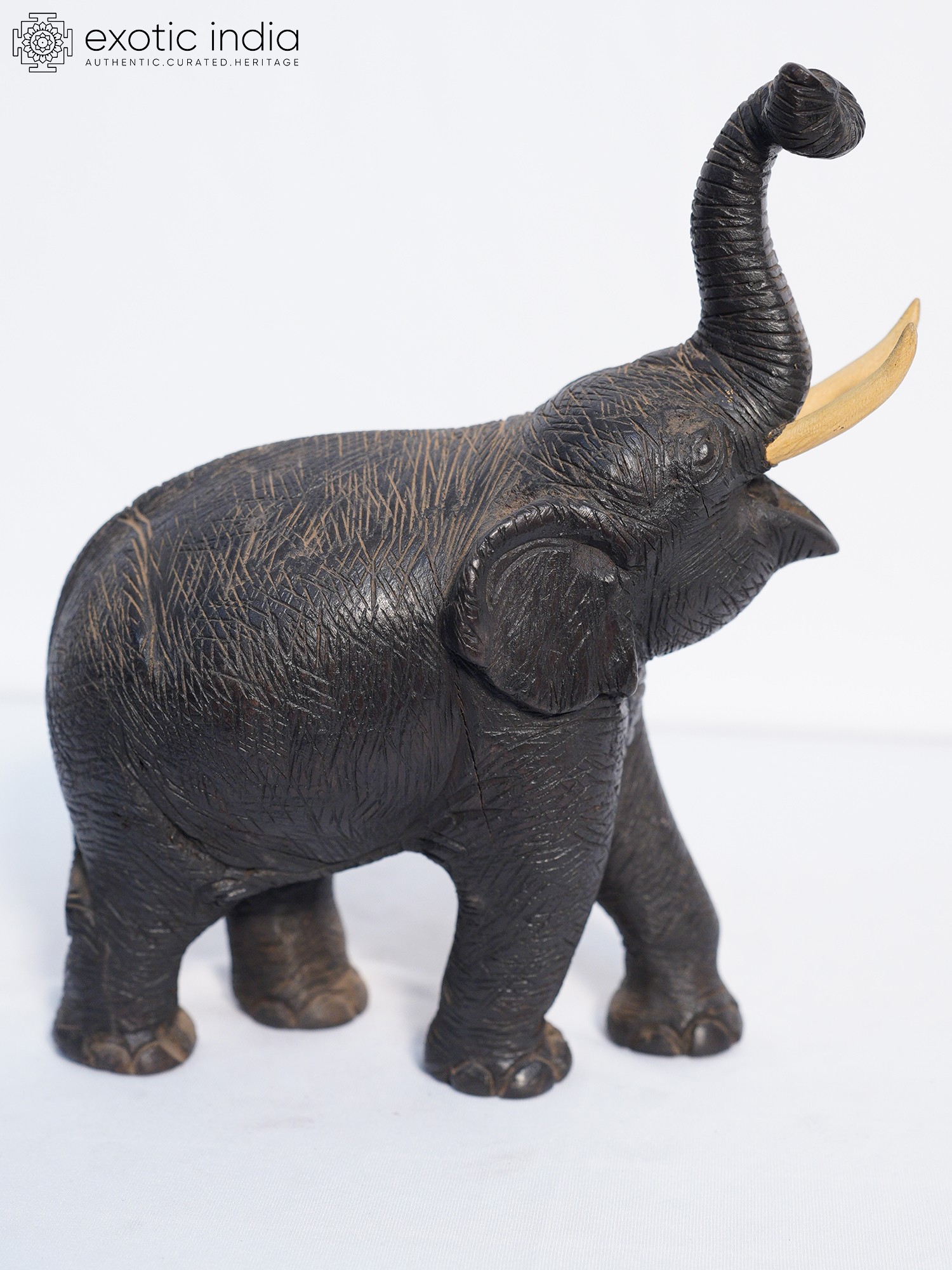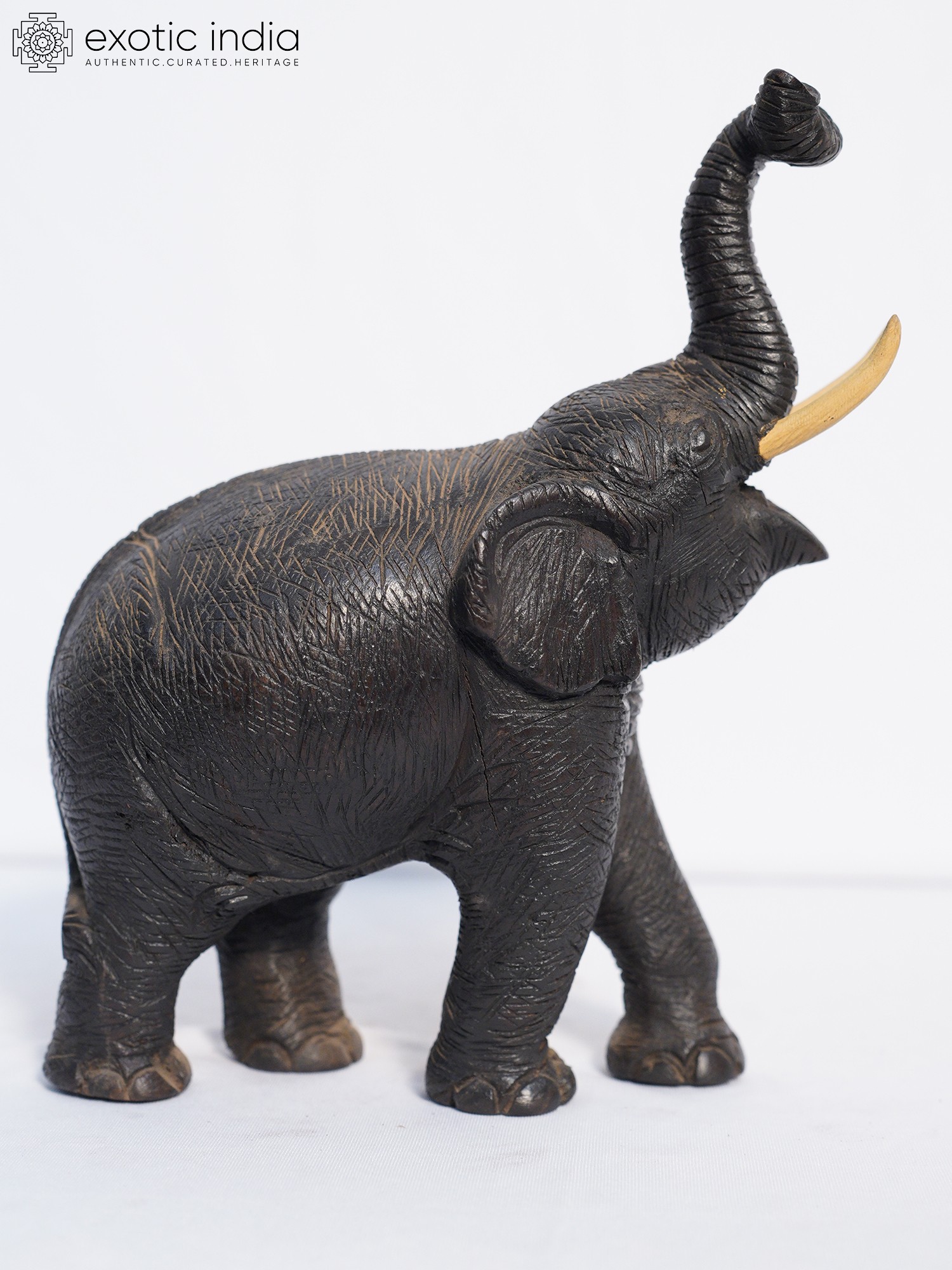 This beautiful piece is handmade and showcases the skill of artisans who have passed down their knowledge for generations. The use of Rosewood lends warmth and natural beauty to the piece. Each detail, from the texture of the skin to the curve of the tusks, is carefully carved, showcasing the unique character and spirit of the elephant. The rich, deep color of the wood enhances the statue's visual impact, making it a captivating addition to any space.