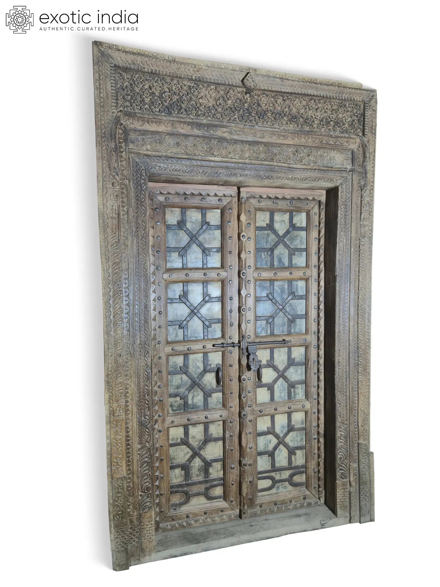 This imposing door, standing at an impressive height, is designed to be a focal point. Its substantial presence and detailed craftsmanship make it ideal for creating an impactful entrance, whether as a grand front door, a statement room divider, or a unique decorative installation. Its antique nature means that each piece carries its own unique patina and character, a subtle beauty that can only be achieved with age and time. Incorporating this hand-carved Indian door into your decor is an invitation to embrace history, celebrate artisanal skill, and infuse your living space with a profound sense of timeless elegance and cultural richness.