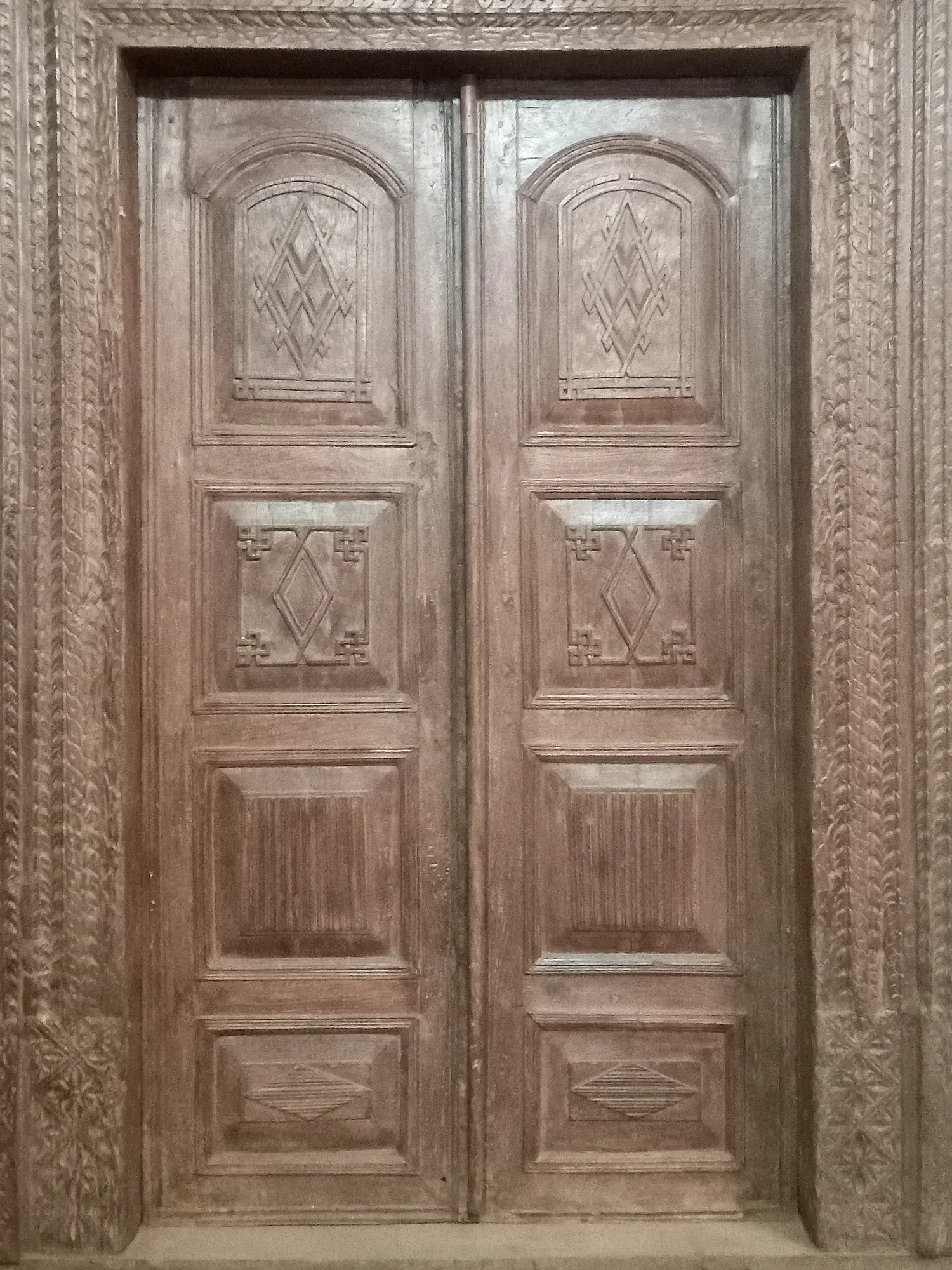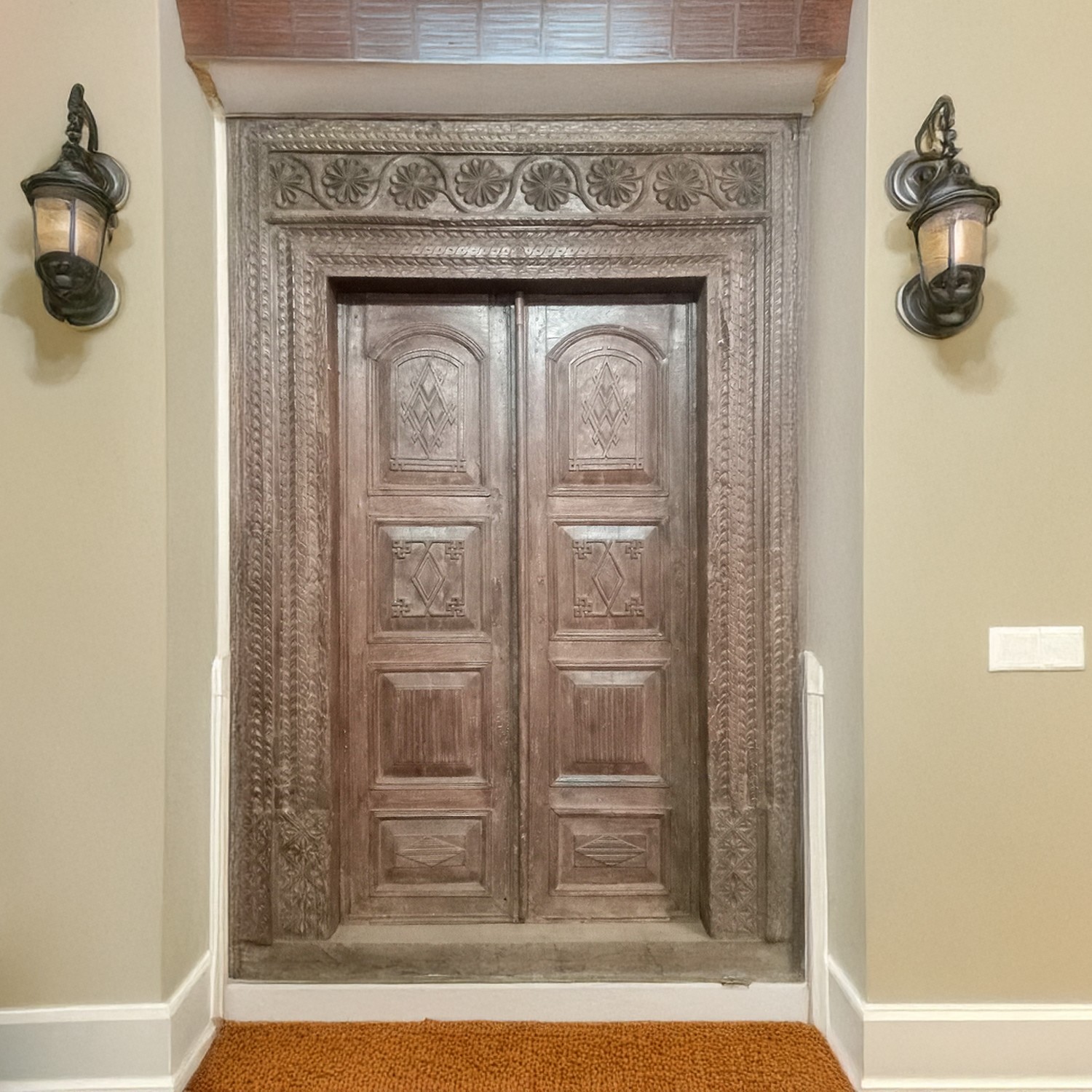This double door is sure to allure with its beautiful intricacies that represent the rich heritage of Indian art. You can observe the traditional floral motifs carved out in the wooden frame and geometrical patterns on the main door. No doubt, skilled carpenters have put intense labor to design this masterpiece. The door is made of sturdy wood that will last up to many years and does not even require much maintenance. It has been given a subtle polish in order to not lose the natural raw appearance of the wood.
