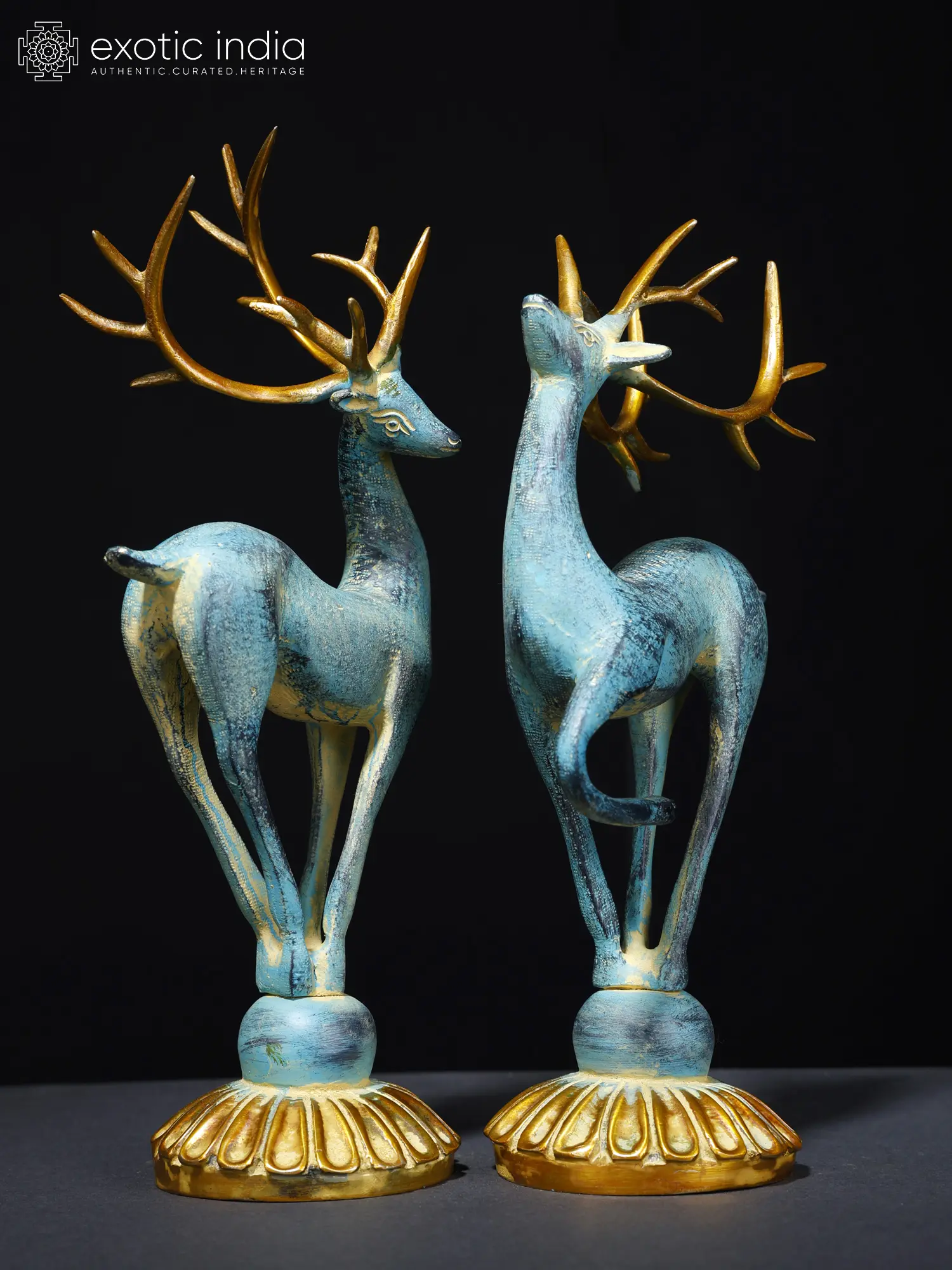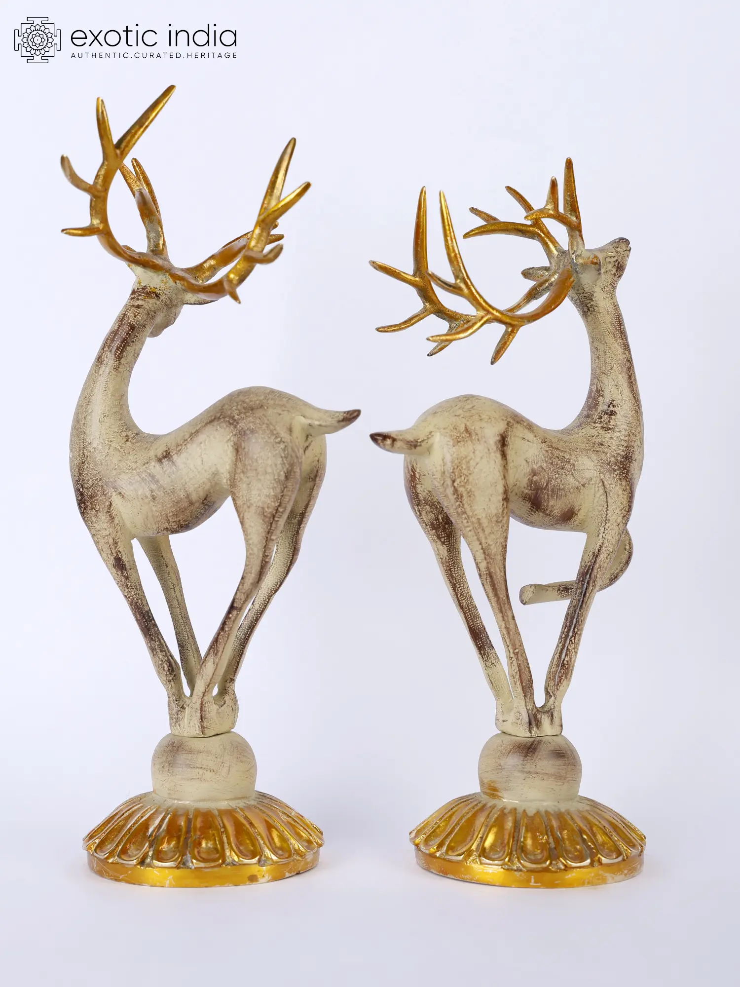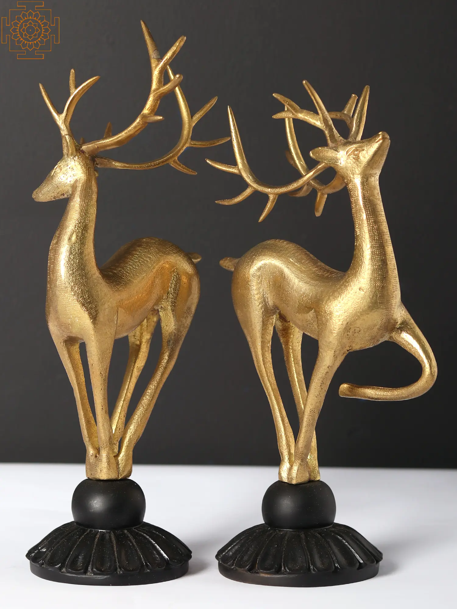 Deers, revered across cultures, echo in ancient texts and poetry, from the golden deer in the Ramayana to Nava-sahasanka-charita by Padmagupta. This Sanskrit epic, composed in the 10th-11th century, narrates tales of how a deer was the reason the protagonists came in contact with each other. Reflecting this poetic legacy, the Brass Pair of Reindeer a Home Decor transcends as a regal piece.