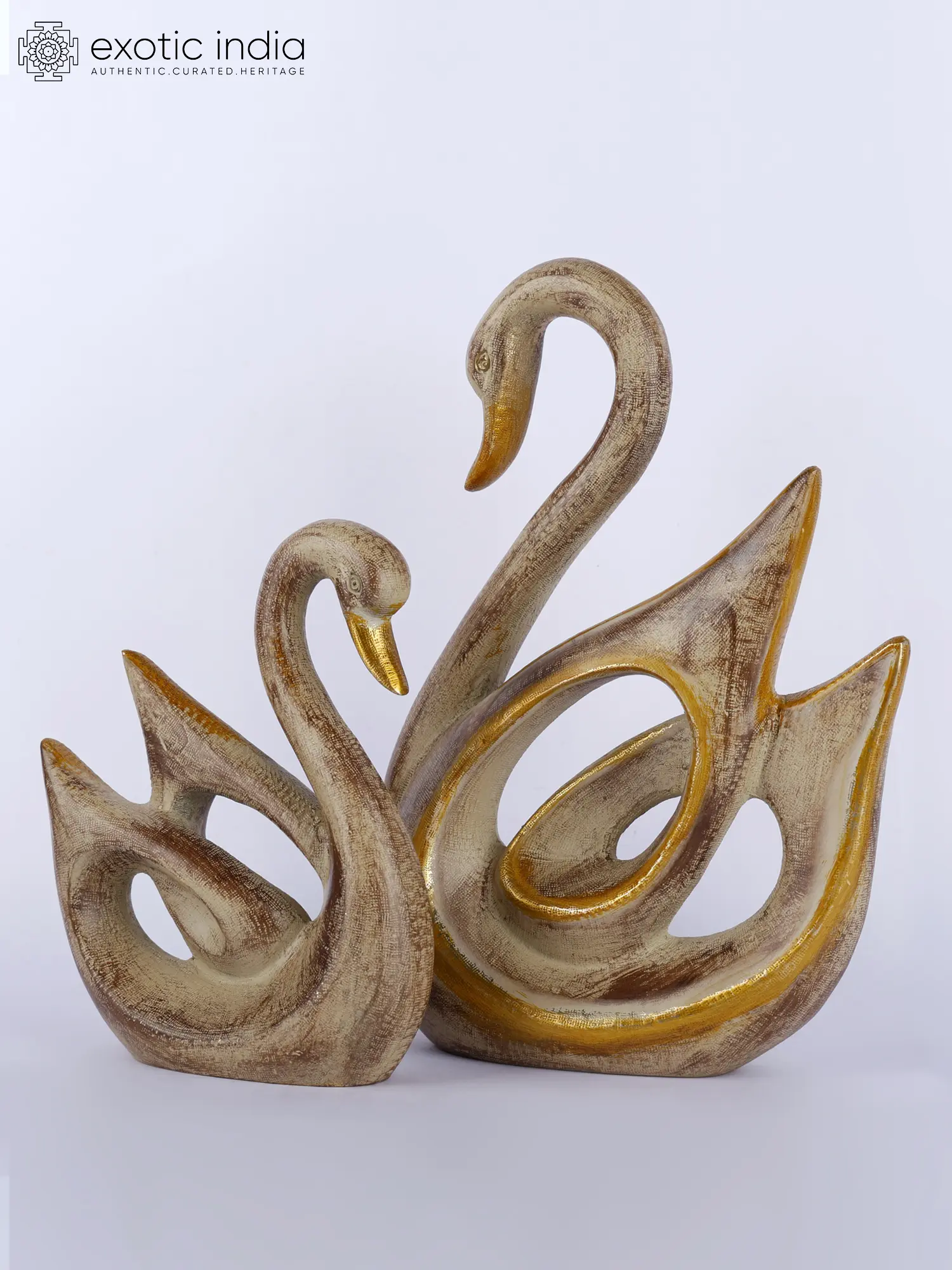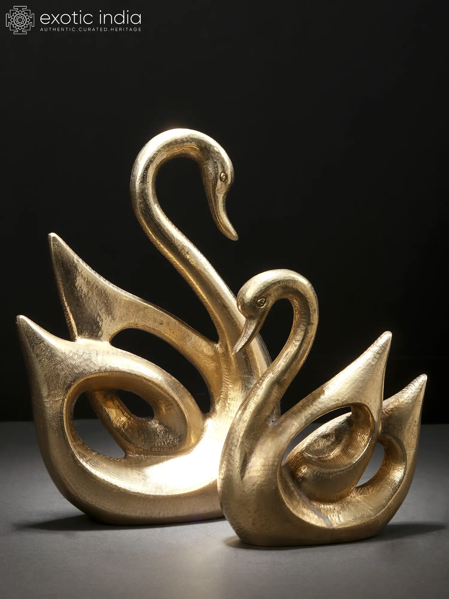 This Brass Table Decor Cygnet with Mother Swan (Hansa), a captivating set of two, brings an ethereal touch to beautiful homes with its symbolism and aesthetic charm. Here the wings of the Cygnet and the Swan are very beautifully crafted with a twisted shape. In Hindu mythology, the swan, or "Hansa," represents purity, wisdom, and discernment. Its selective consumption of pearls symbolizes the pursuit of the finest in life, embodying elegance and discerning taste. Associated with Goddess Saraswati, the swan becomes a carrier of knowledge and wisdom.
