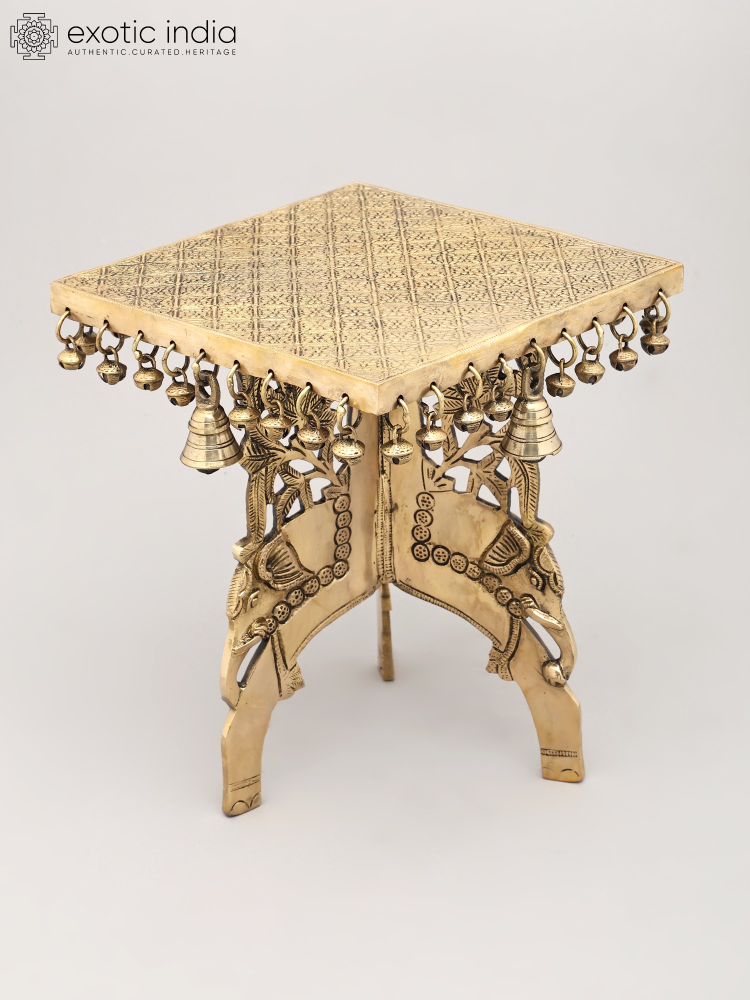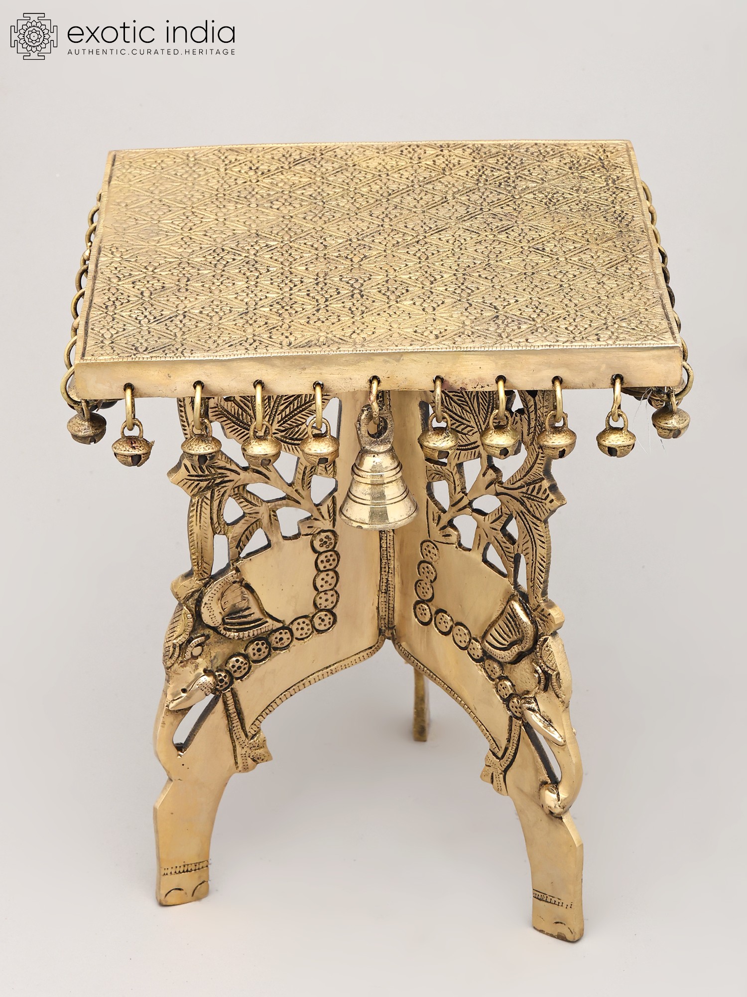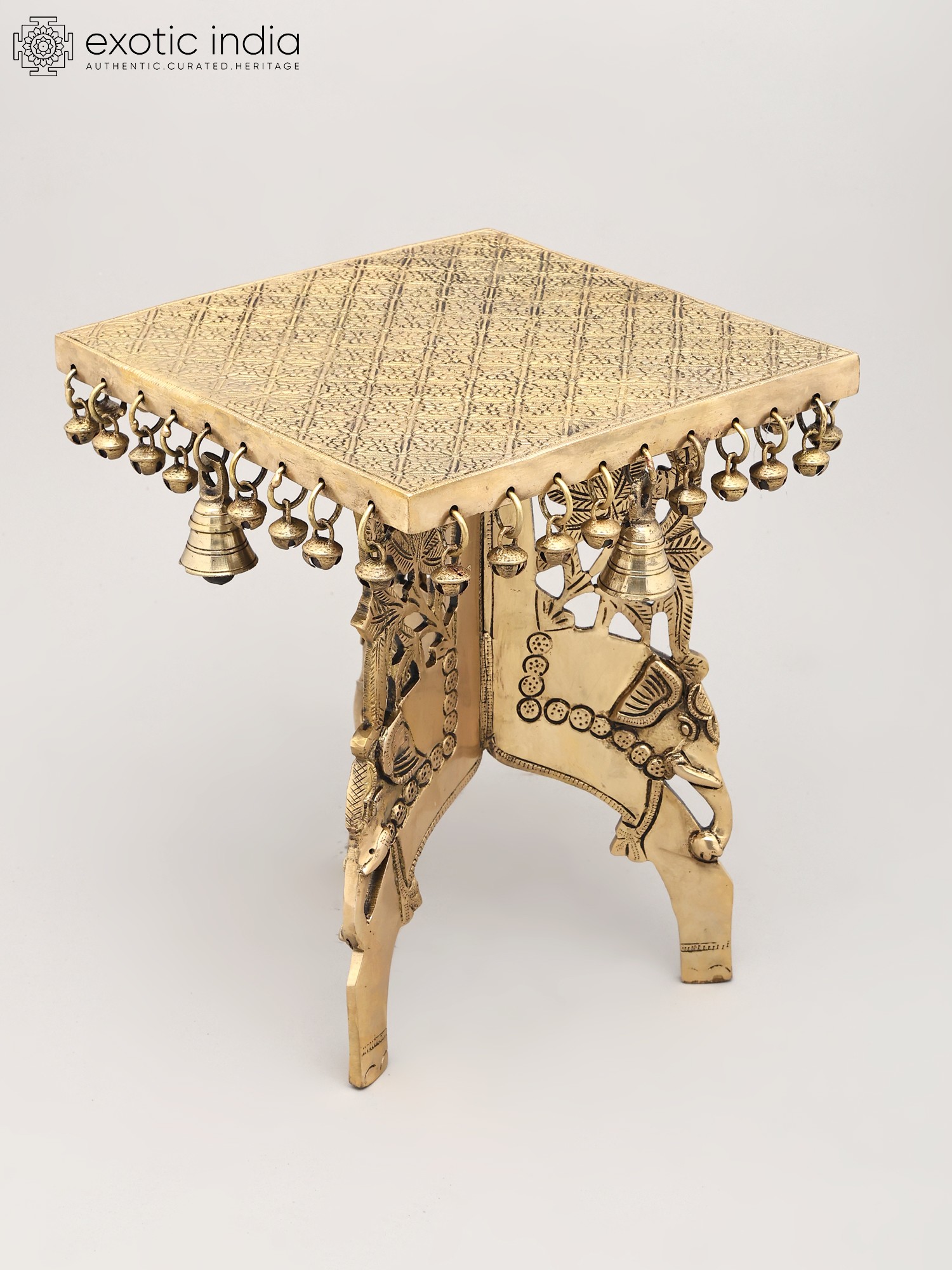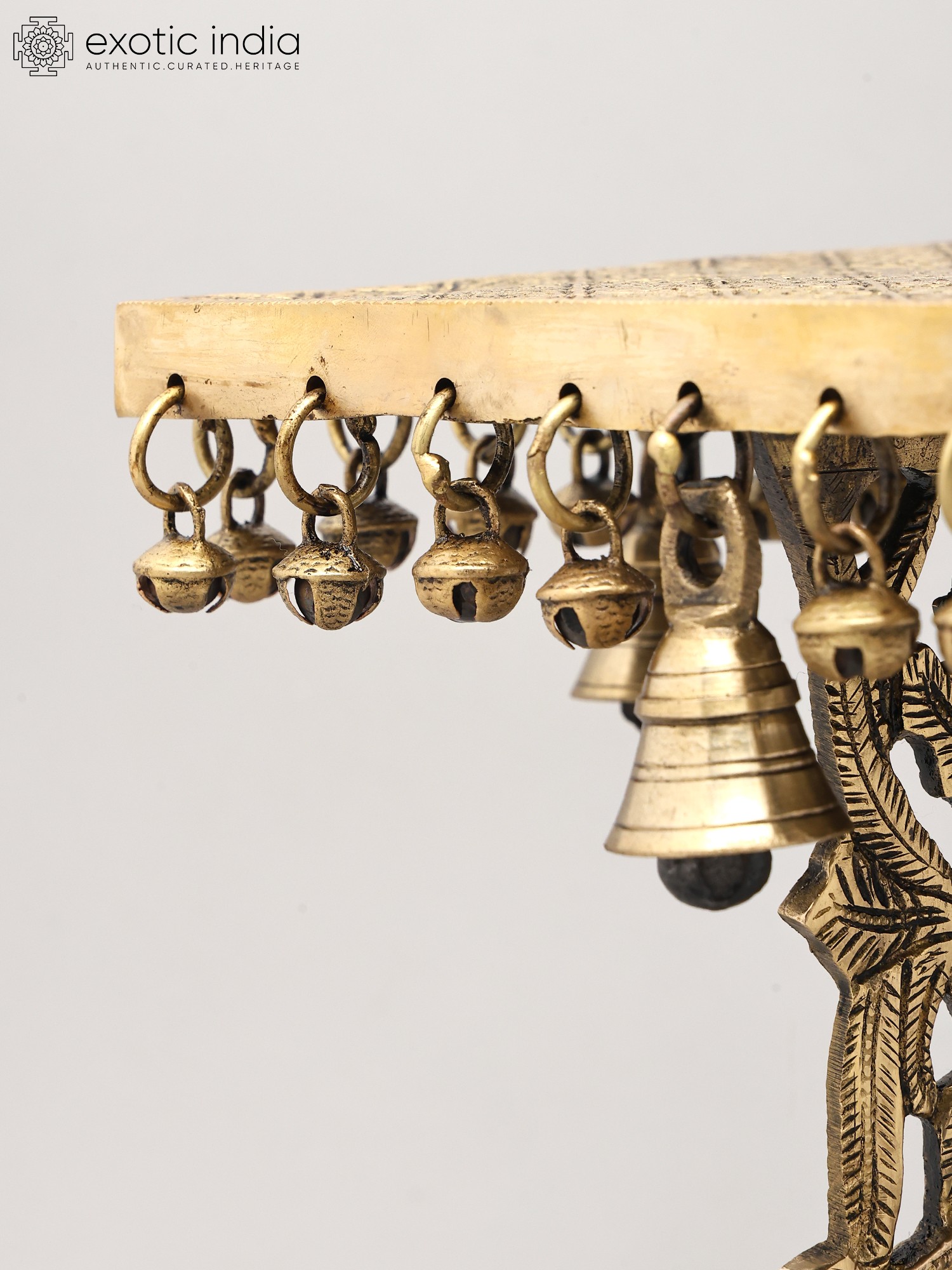 18" Designer Brass Pedestal/Chowki with Dangling Ghungroos