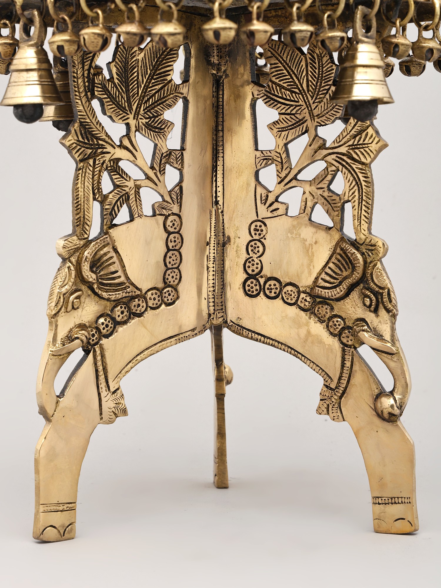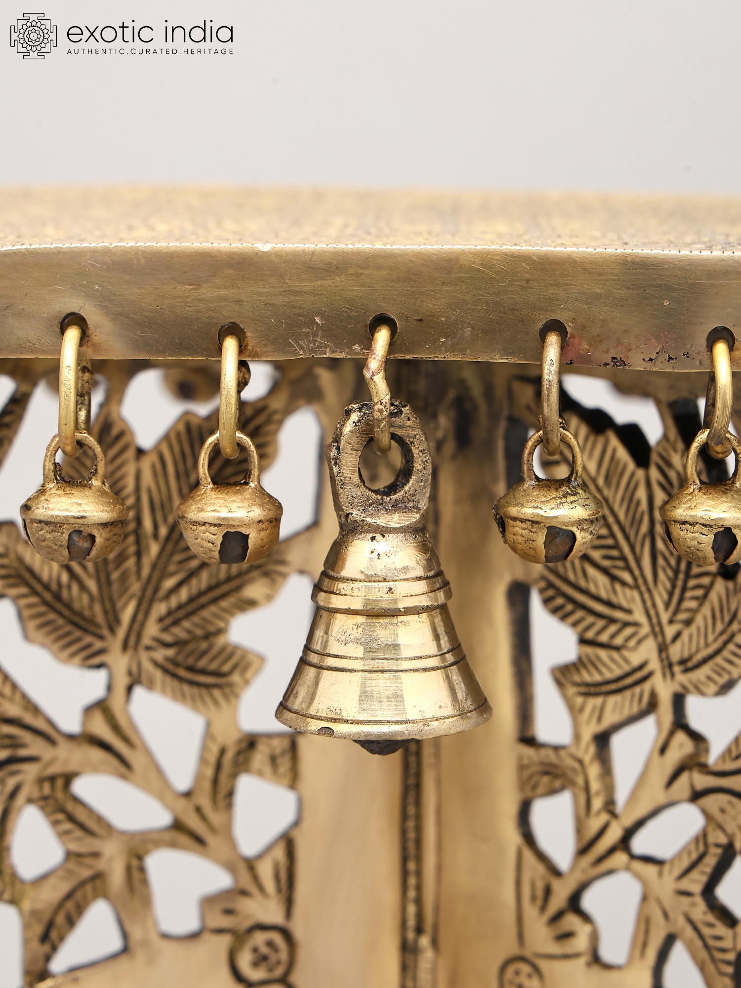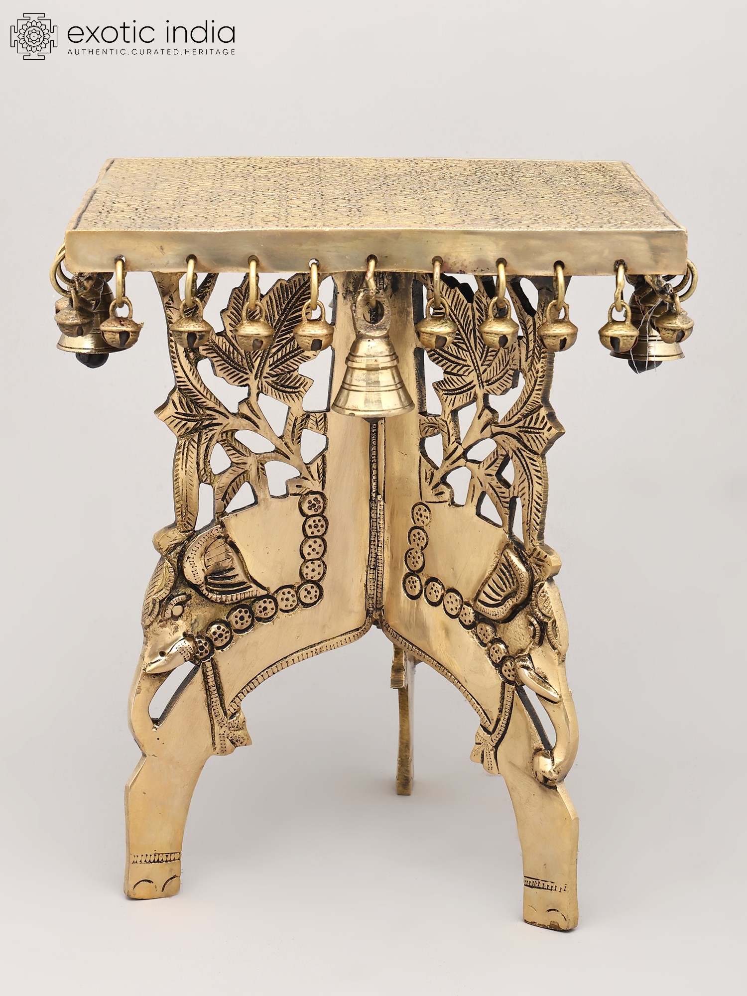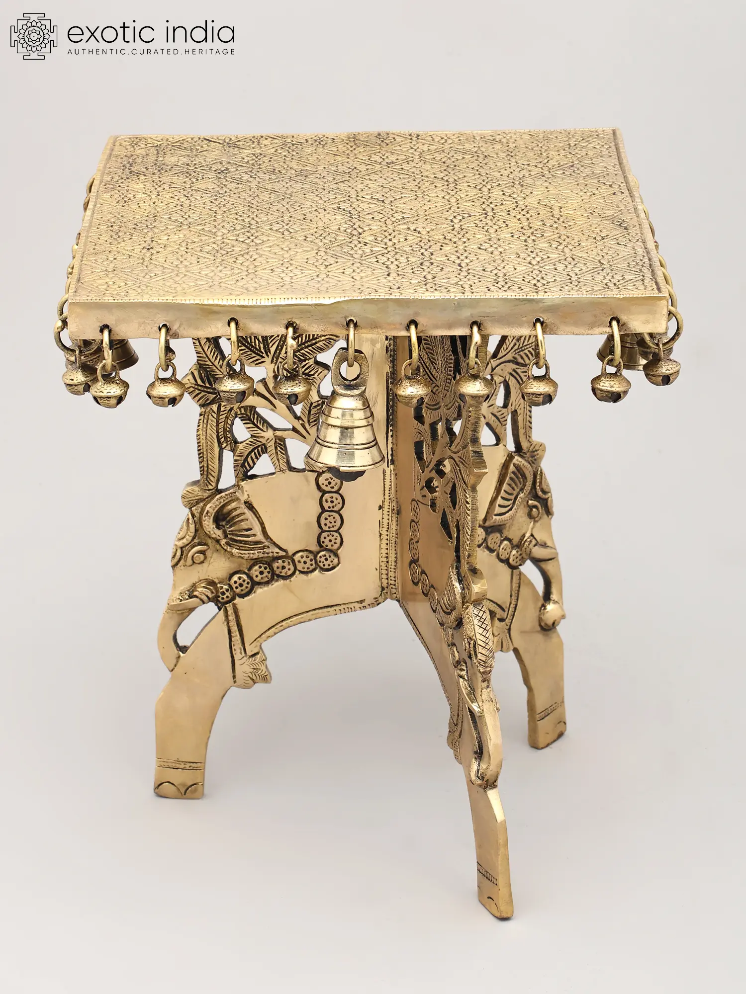 18" Designer Brass Pedestal/Chowki with Dangling Ghungroos