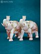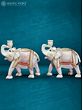 Beyond the elegance of the Makrana marble, the statues are further enhanced by exquisite hand-painted detailing. Delicate floral patterns in soft pink and gold adorn the elephants' howdahs, adding a touch of vibrant color against the pristine white marble. The fine lines and attention to detail in the carving and painting reflect a deep commitment to craftsmanship, evident in every curve and feature. Each statue is a testament to the skill and dedication of the artisan who painstakingly created it.