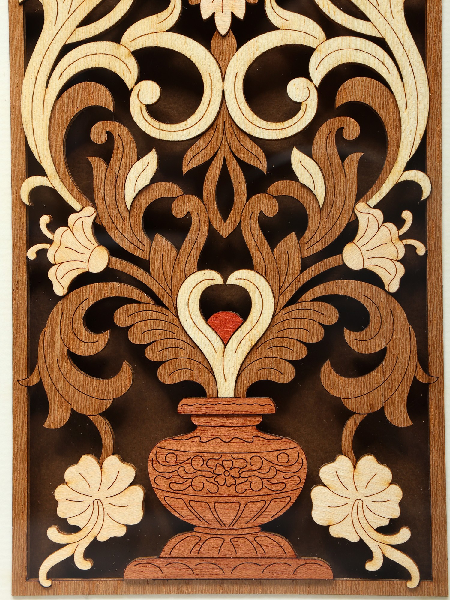 13" Flowers Design Wood Frame | Wall Hanging | Home Decor