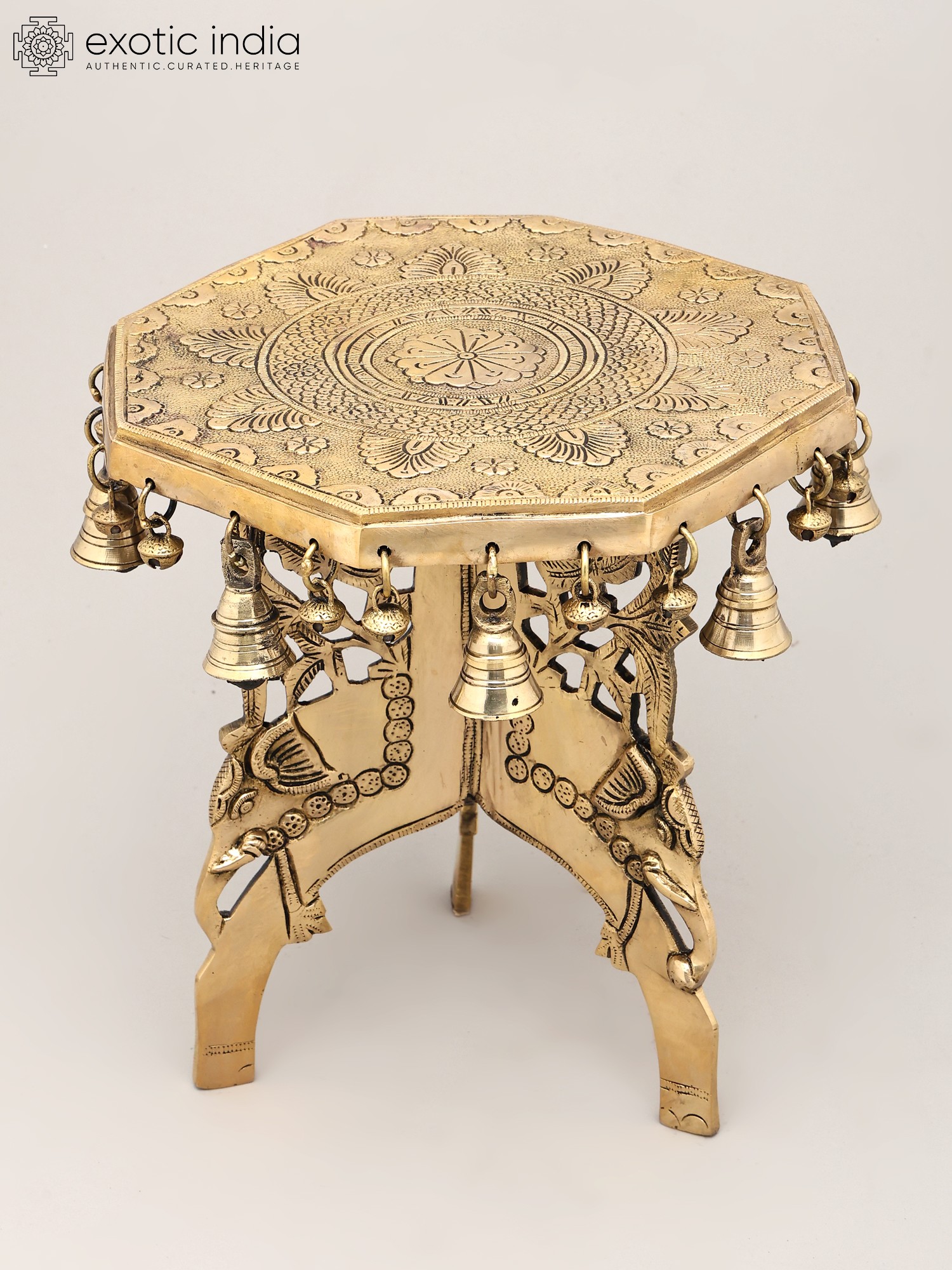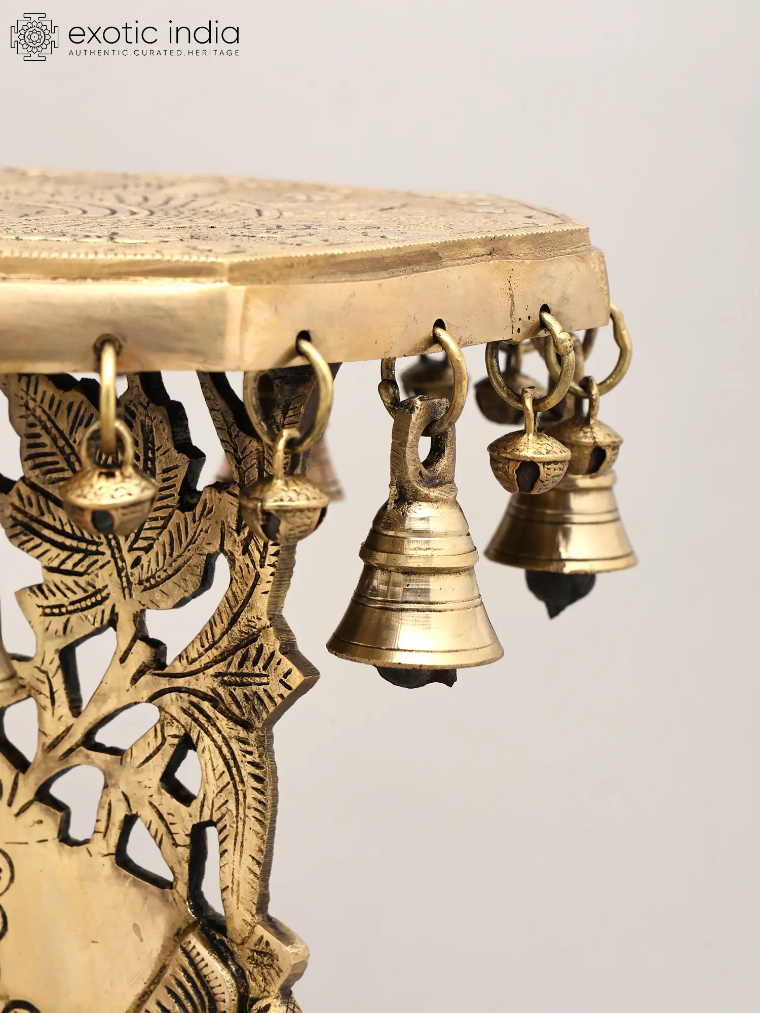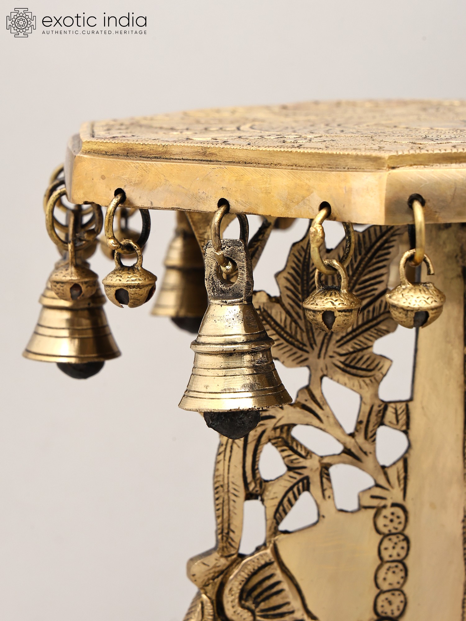18" Designer Brass Pedestal/Chowki with Dangling Ghungroos