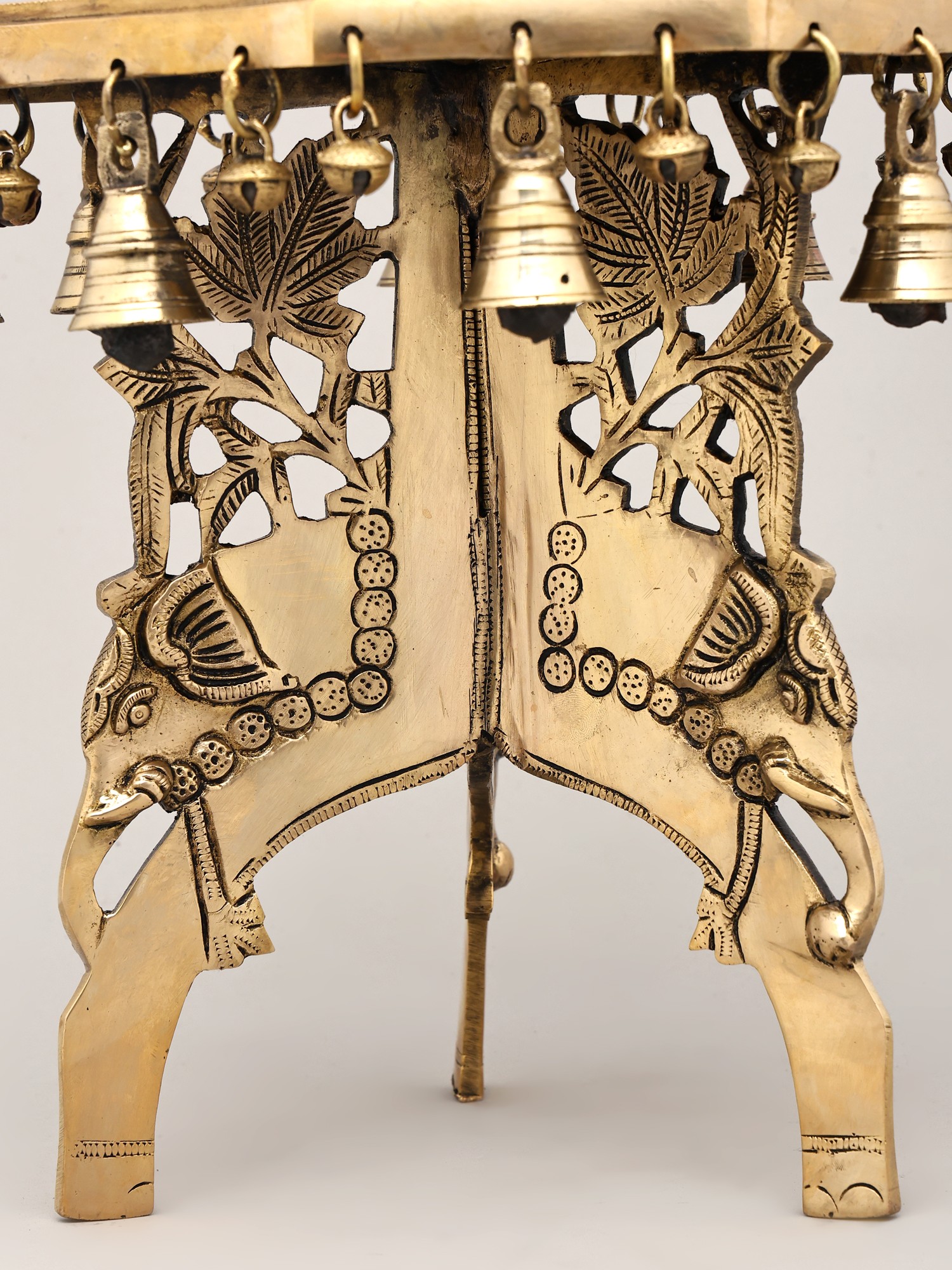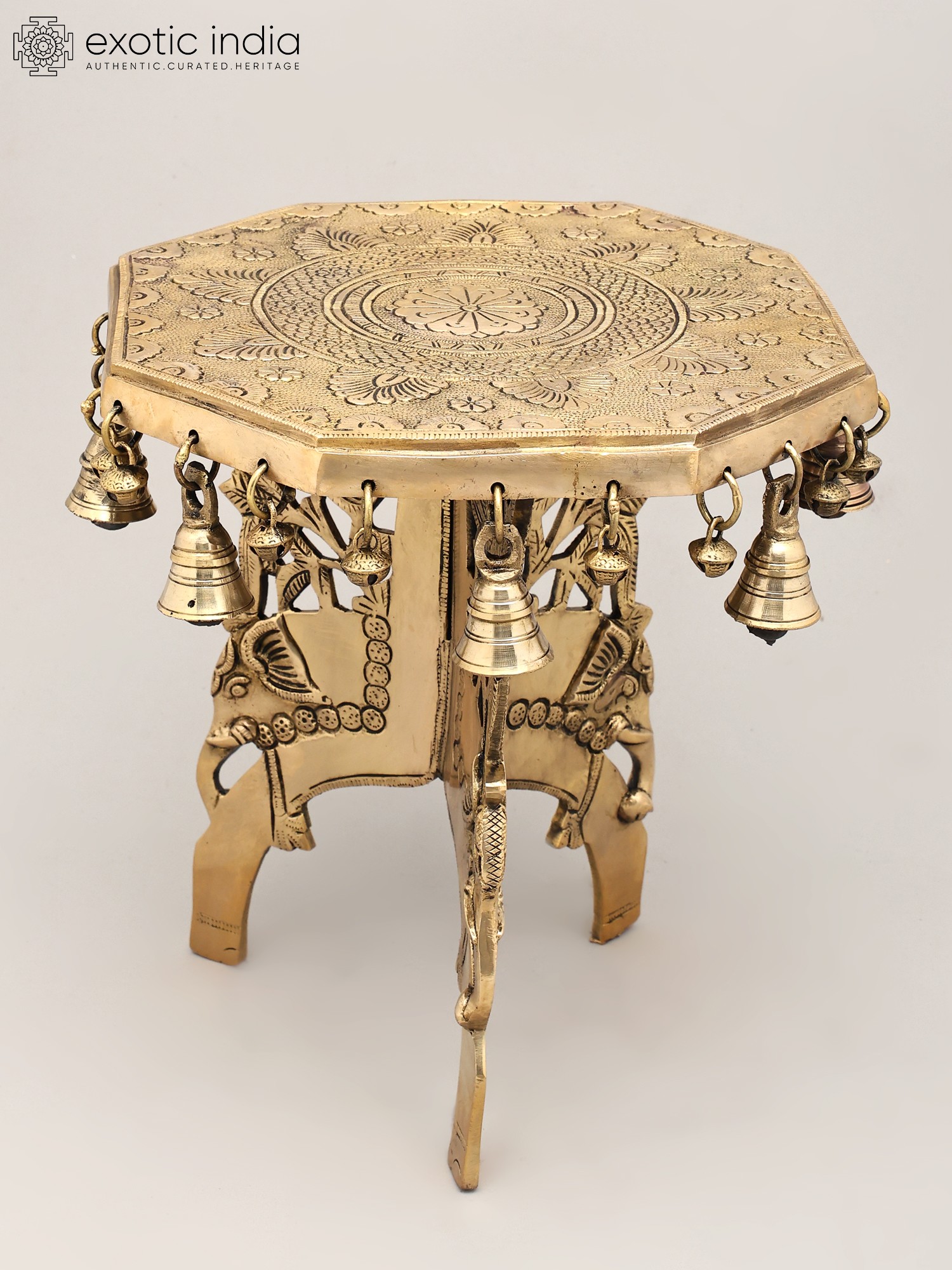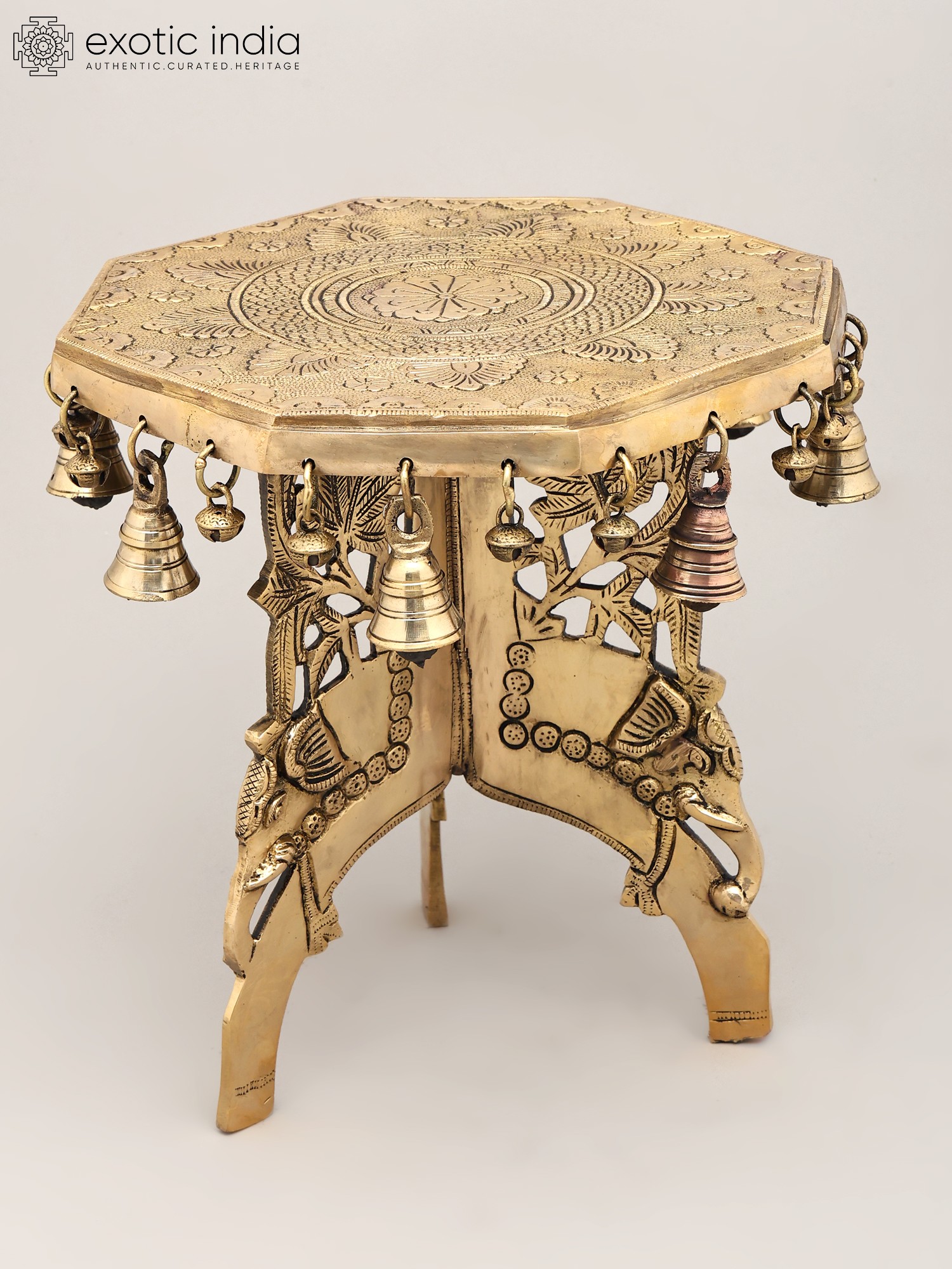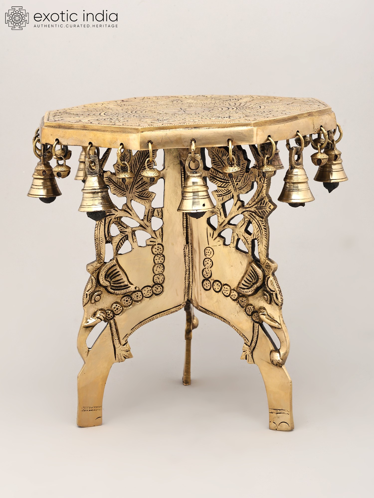 18" Designer Brass Pedestal/Chowki with Dangling Ghungroos
