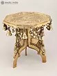 Adding a delightful sensory dimension to this already impressive piece, the perimeter of the octagonal tabletop is adorned with a cascade of dangling bells and ghungroos. These small, resonant brass bells, meticulously attached with fine chains, are designed to chime gently with the slightest movement. The sound they produce is not merely decorative; it evokes the joyous spirit of Indian festivals and traditional ceremonies. When light catches these bells, they shimmer and reflect, casting subtle glints that dance around the room, adding a touch of magic and festivity to your space.