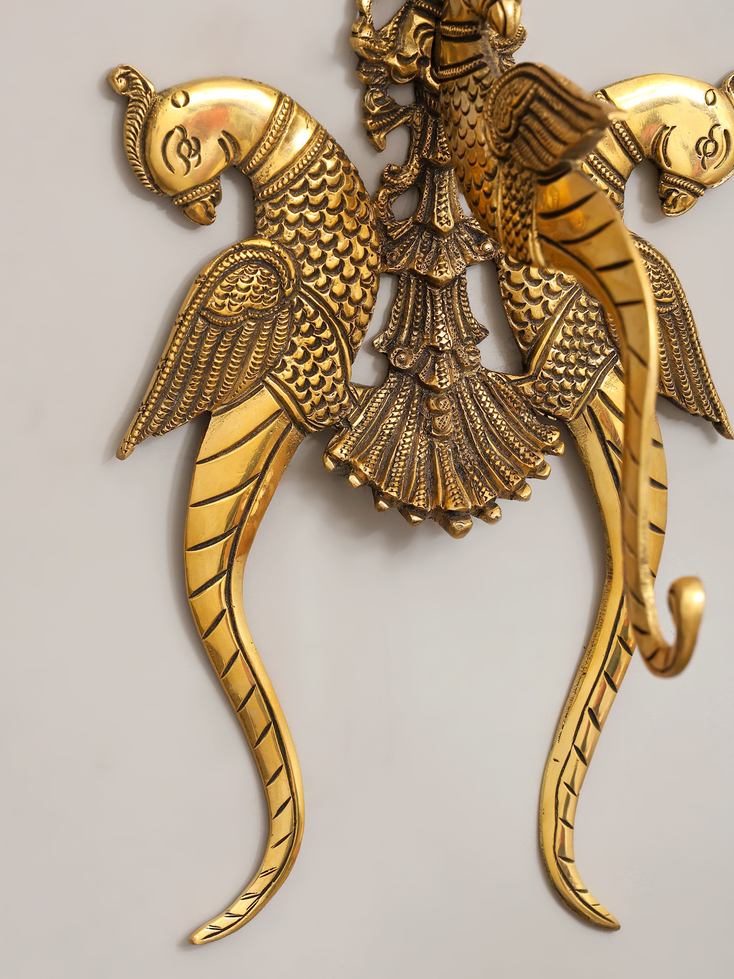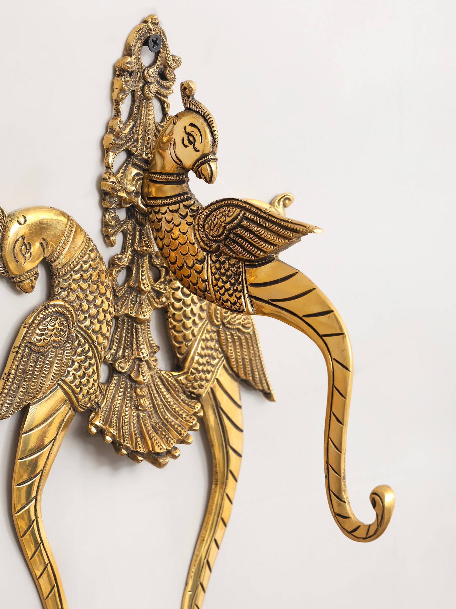 Each detail of this wall hanging bracket is a testament to the skill of seasoned artisans. Meticulously cast from lustrous brass, its substantial weight and polished finish speak volumes of its superior quality. You’ll appreciate the intricate feather patterns and the graceful curvature of each form, rendered with an artist's touch.