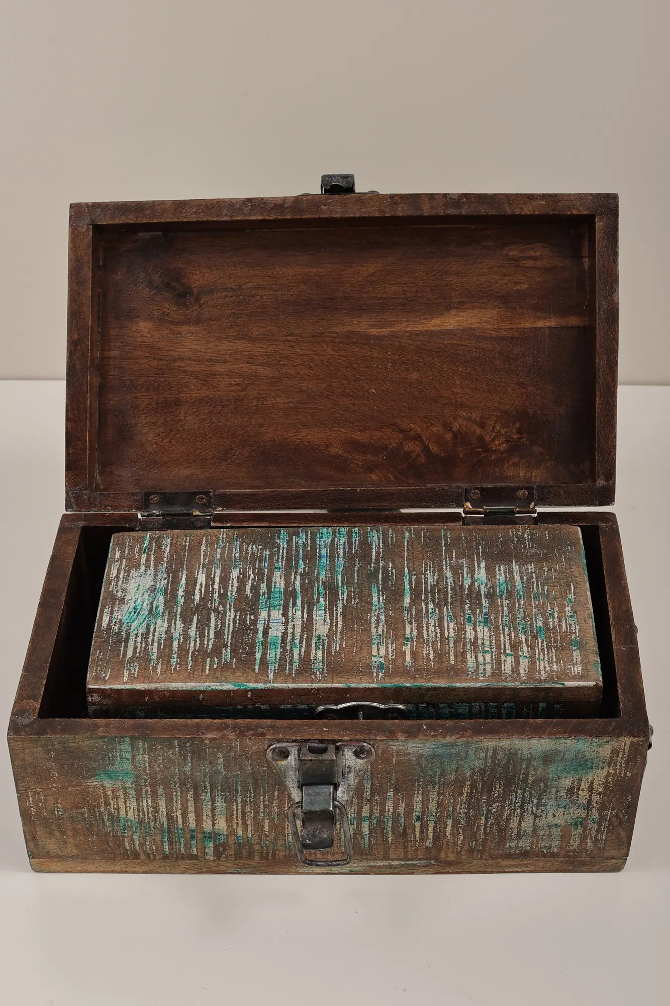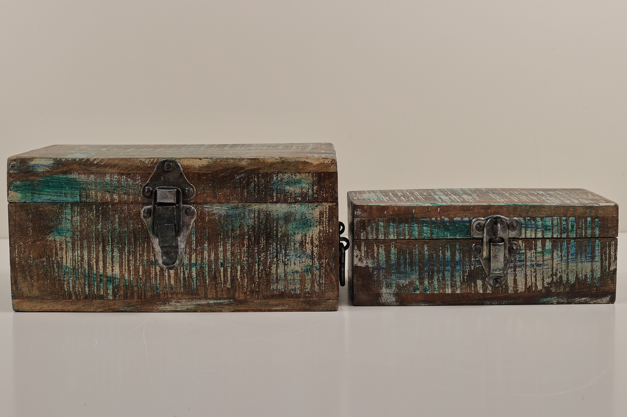 Enchanting in their simplicity, this Set of Two Wooden Boxes beckons with an aura of eternal charm. Carved from the essence of nature, these boxes whisper tales of timeless artistry, capturing the essence of secrets and treasures. The tactile allure of wood meets the embrace of brass, creating a union that transcends the mundane. Each latch, a guardian of mystery, beckons to unveil hidden wonders within. The boxes stand as guardians of cherished memories, embodying the art of preservation. These boxes embody the essence of secrets and treasures, inviting exploration into realms where imagination intertwines with reality.