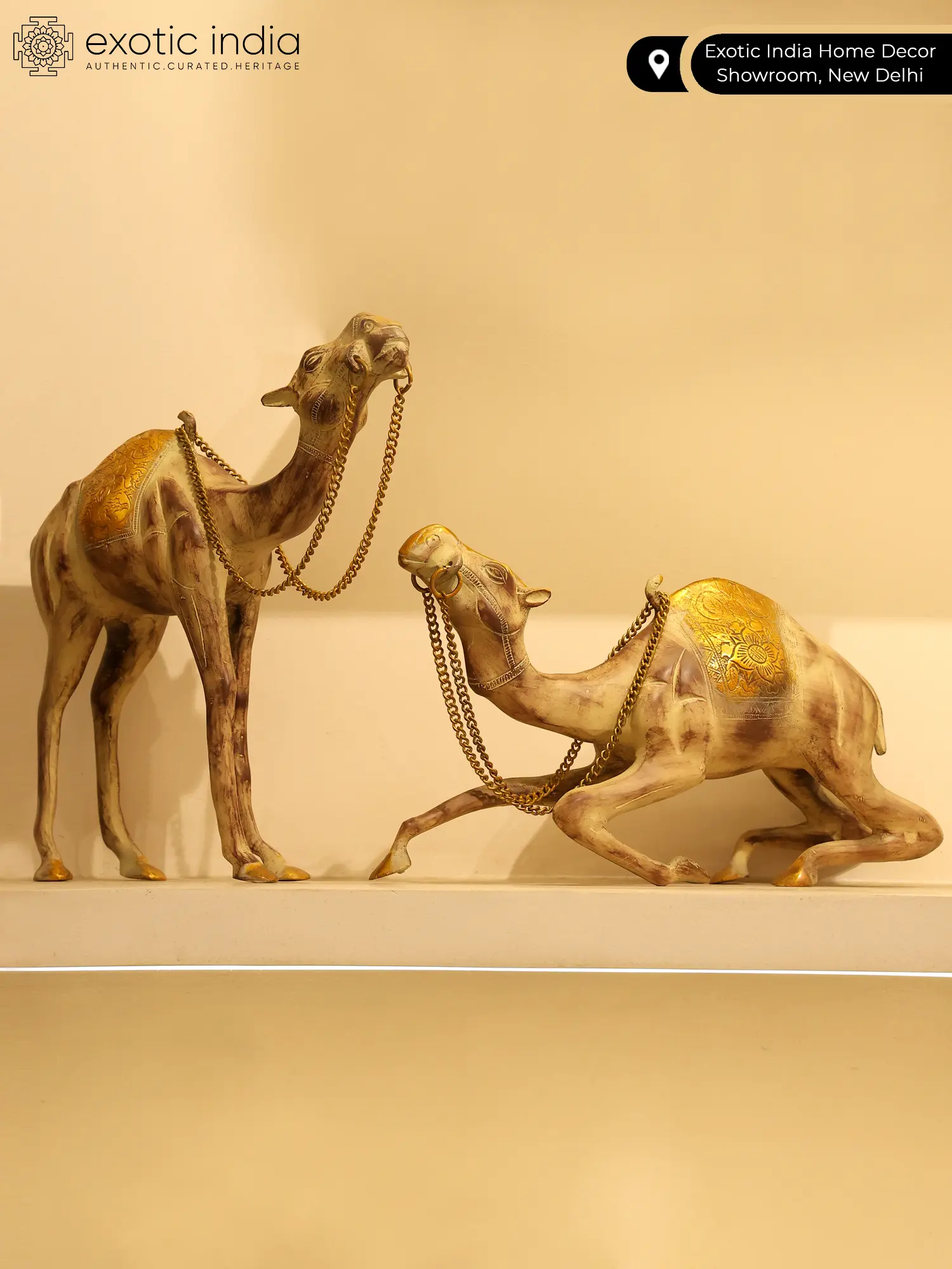 53" Pair of Giraffe Statues in Brass - The Tallest Animal on Earth
