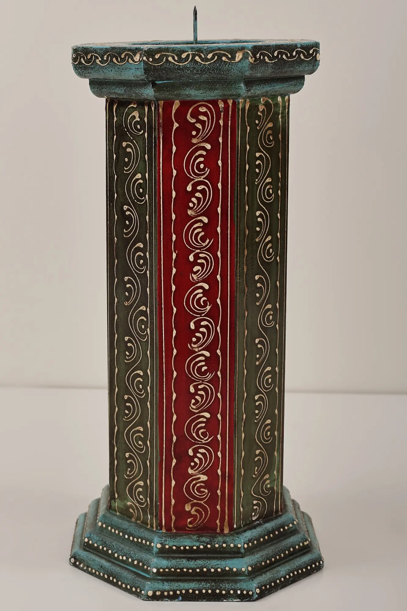 Candles are regarded as the messengers of wisdom and are accommodated in the finest home decor for their respectful use. This octagonal-shaped Candle Stand is the object that accommodates the messenger and gives a distinctive geometric flair to your design. At the same time, the Jodhpur-style painting provides a burst of brilliant colors. This skillfully crafted mix of form and function adds a touch of traditional elegance to any environment, providing a visual feast as the candles produce a pleasant glow. It stands out because of the excellent craftsmanship and vibrant hues, which effortlessly merge cultural aesthetics with functional illumination. With this eye-catching, vivid candle holder, you can up your ambiance and show off your love of artistic décor.