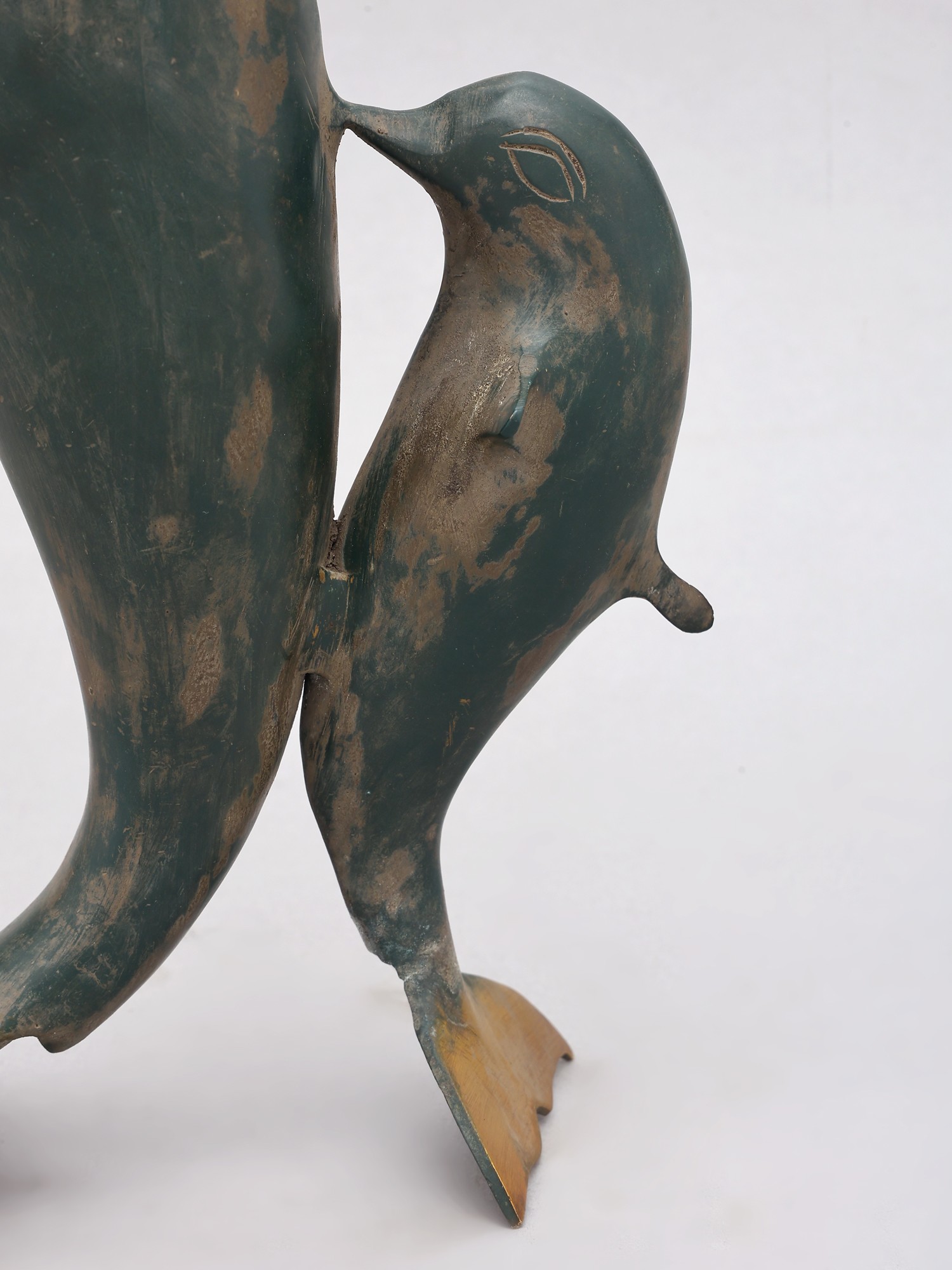 Intricate detailing on fins, eyes, and the distinctive dolphin shape.