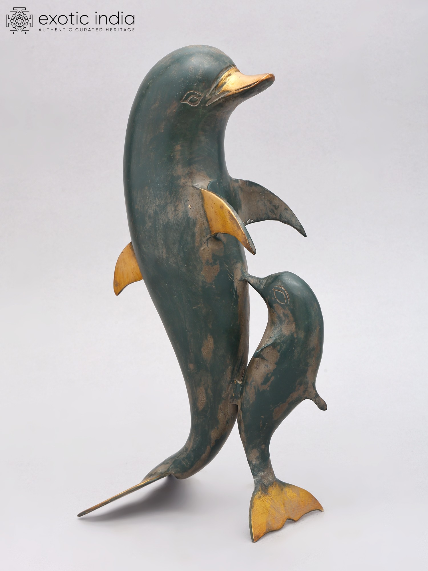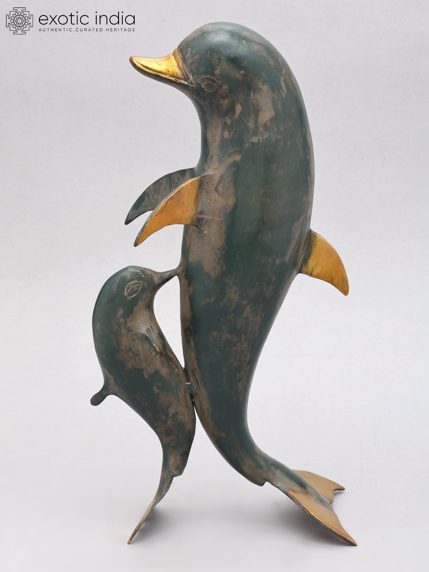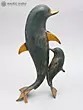 12" Mother Dolphin with Baby Brass Statue