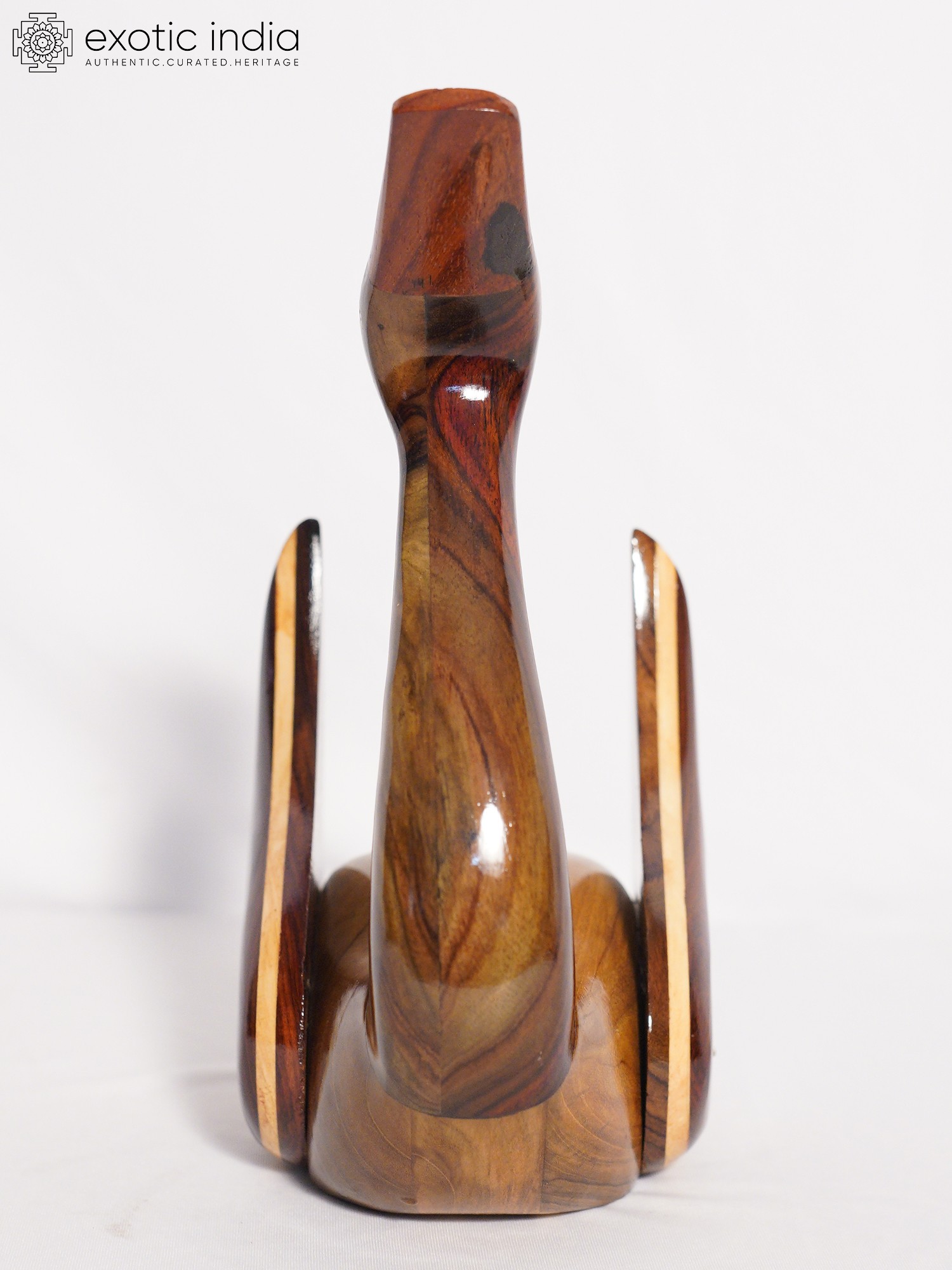 Introduce an element of natural artistry into your living space with this finely crafted wooden duck sculpture. Meticulously handmade, this piece captures the graceful essence of a swan in a stationary pose, blending rustic charm with a touch of sophistication. The rich, warm tones of the rosewood offer a visual feast, while the smooth, polished finish reflects light beautifully, adding a subtle glow to any room. This sculpture is more than just a decorative object; it's a conversation starter, a testament to the beauty of handcrafted art. The intricate details, from the elegantly curved neck to the carefully shaped body, showcase the skill and passion of the artisan who created it. Each line and contour tells a story of dedication and precision, making this piece a unique addition to your home decor.