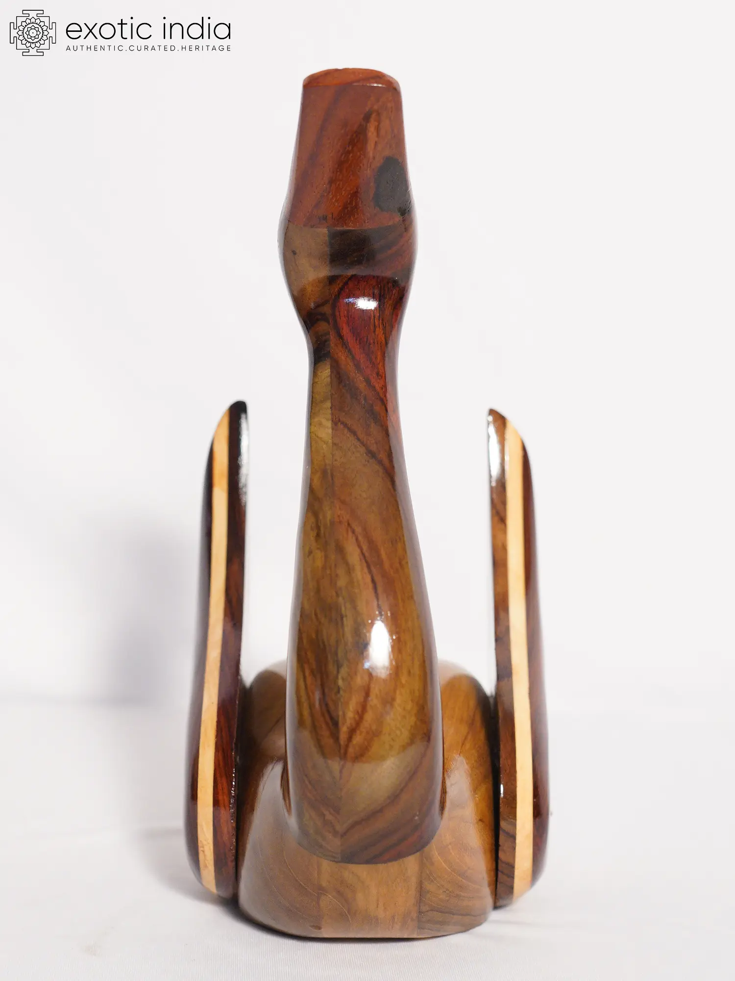 7" Wood Pen Stand With Duck Design | Handmade Rosewood Home Decor Item