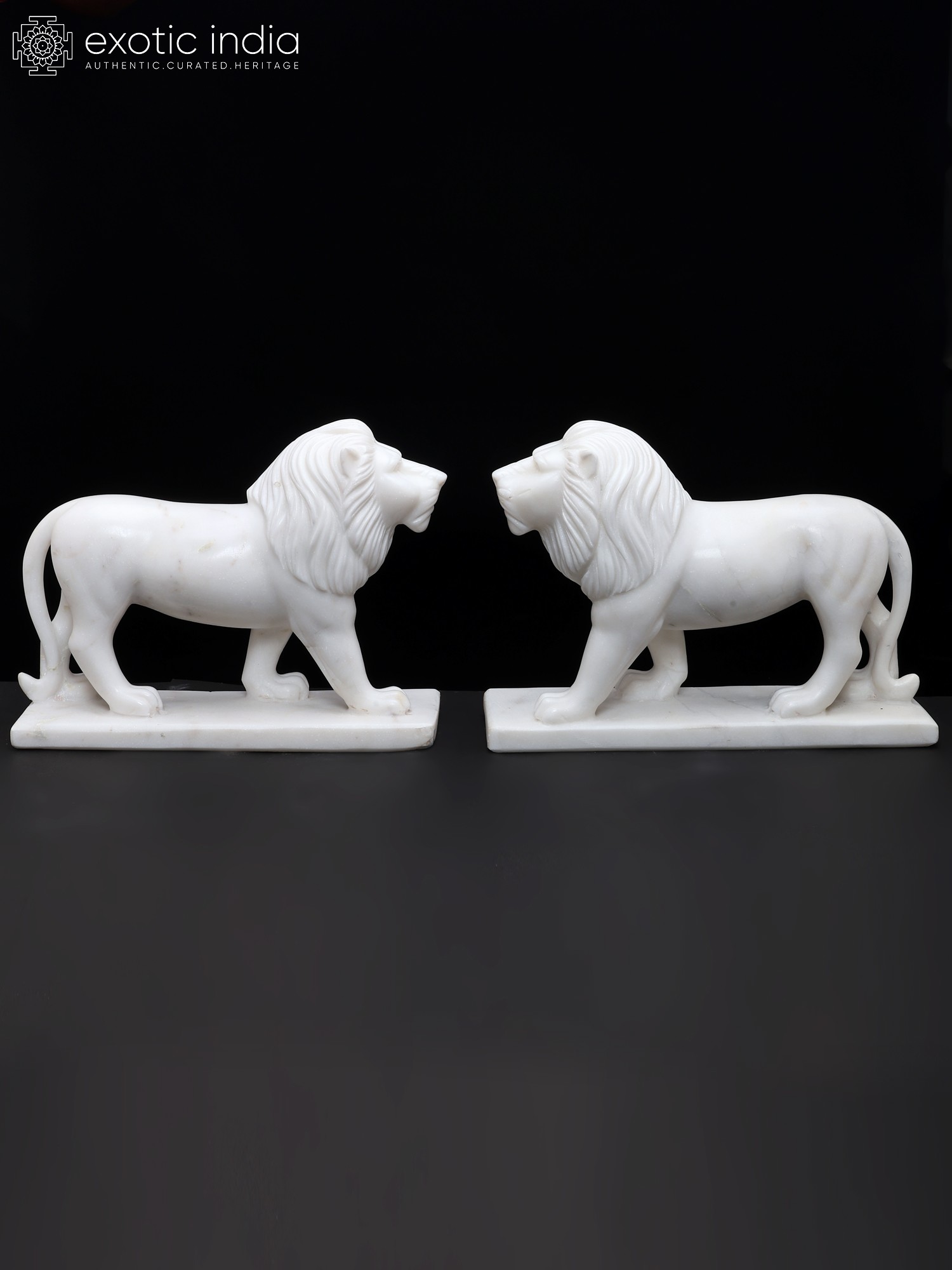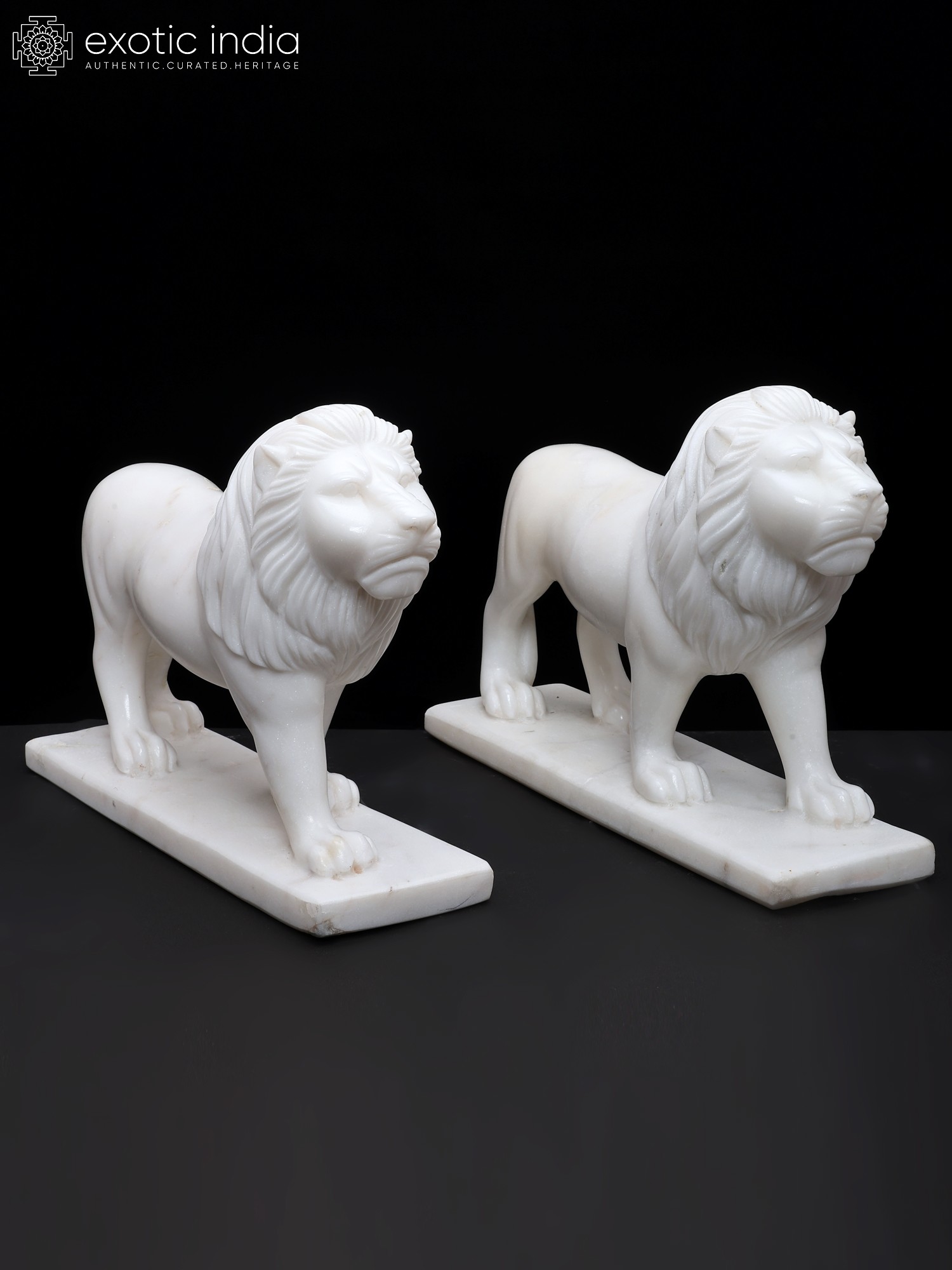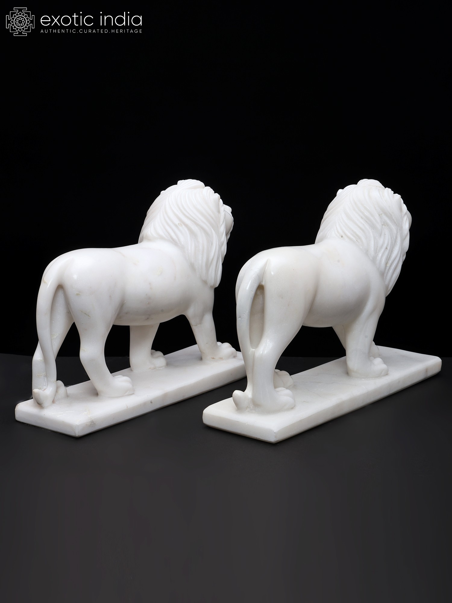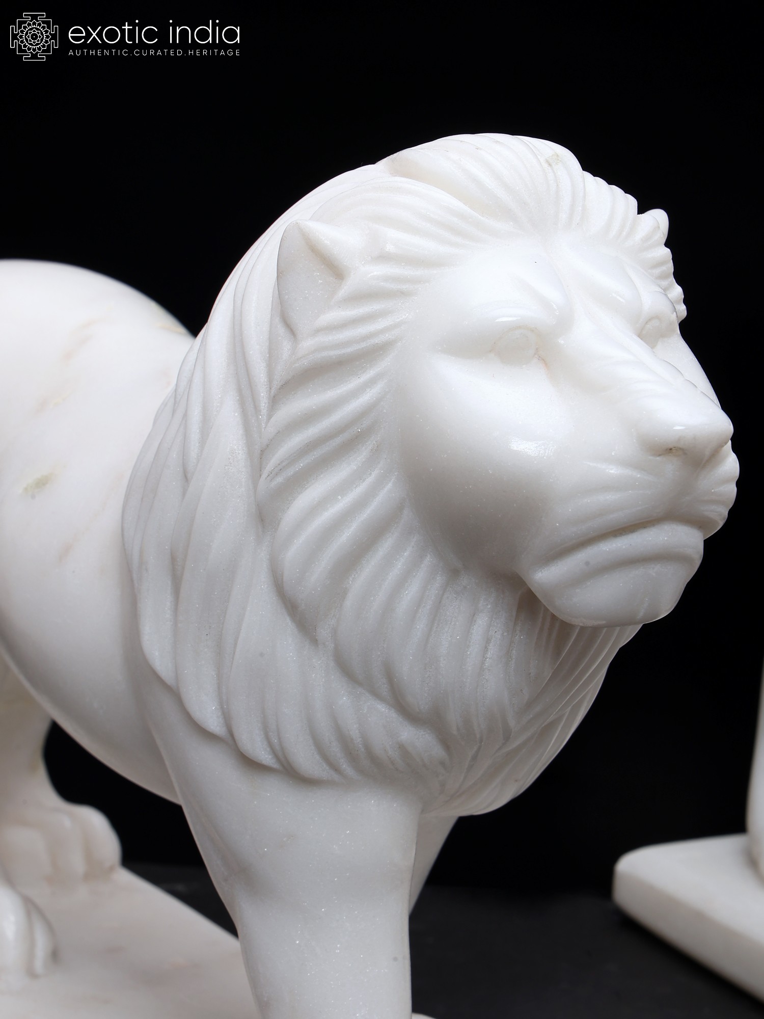 Symbol of Guardianship - Pair Statue of Lion | Home Decor | White Marble | Excellent Indian Art
