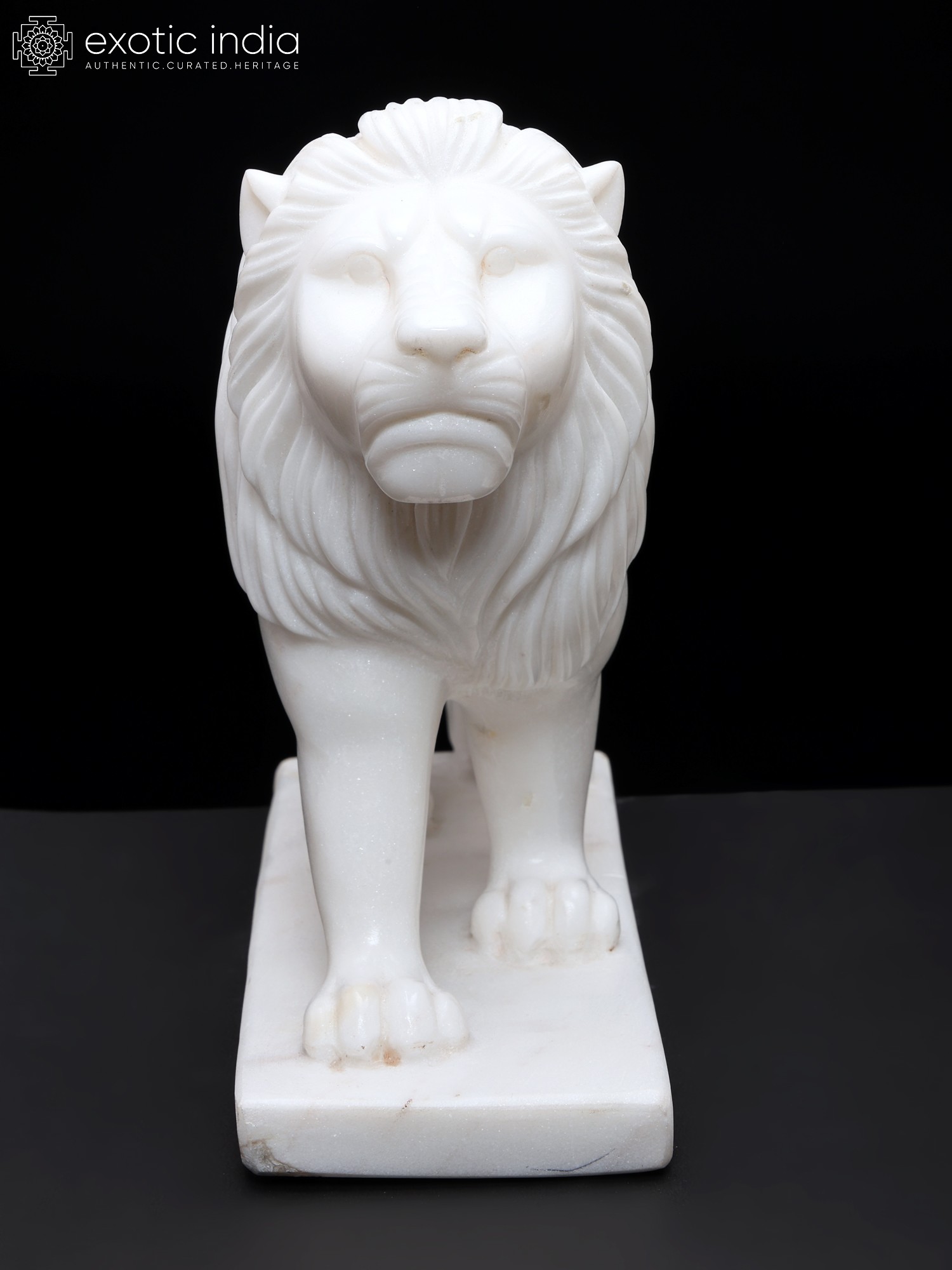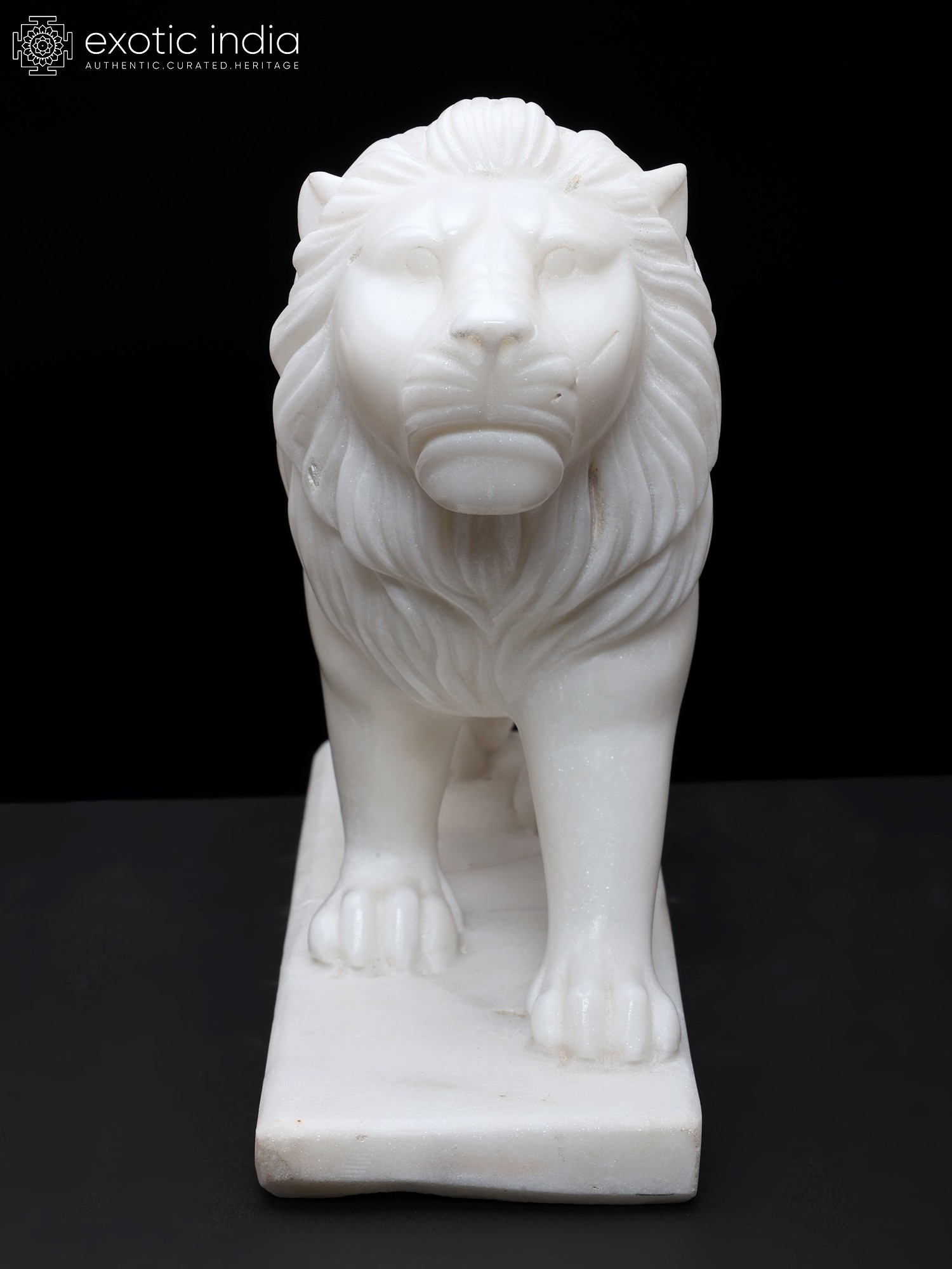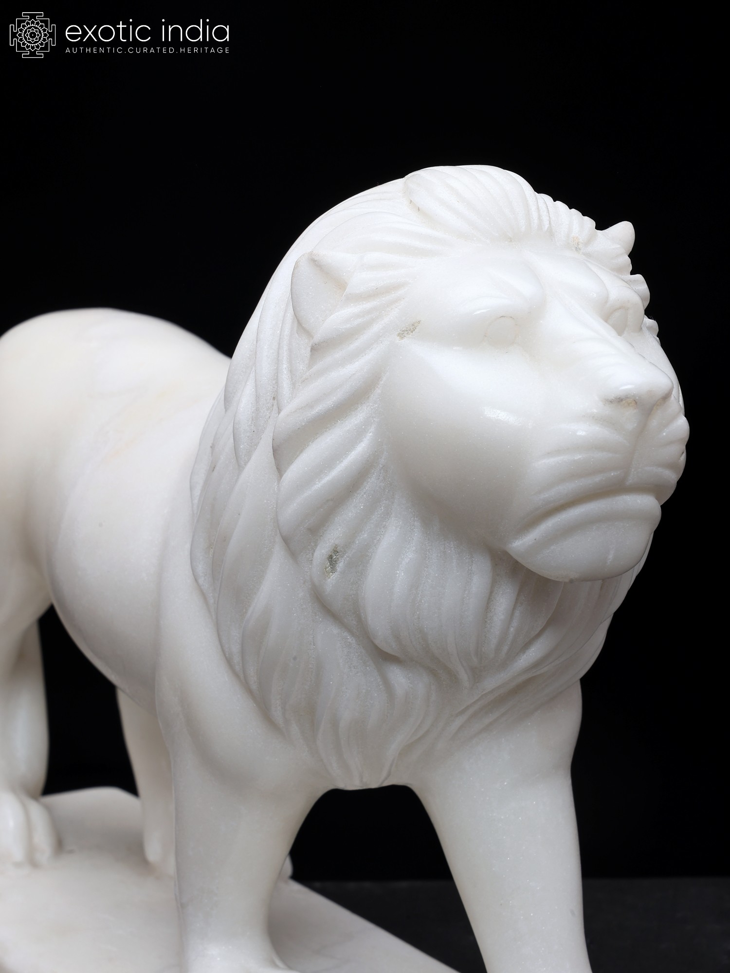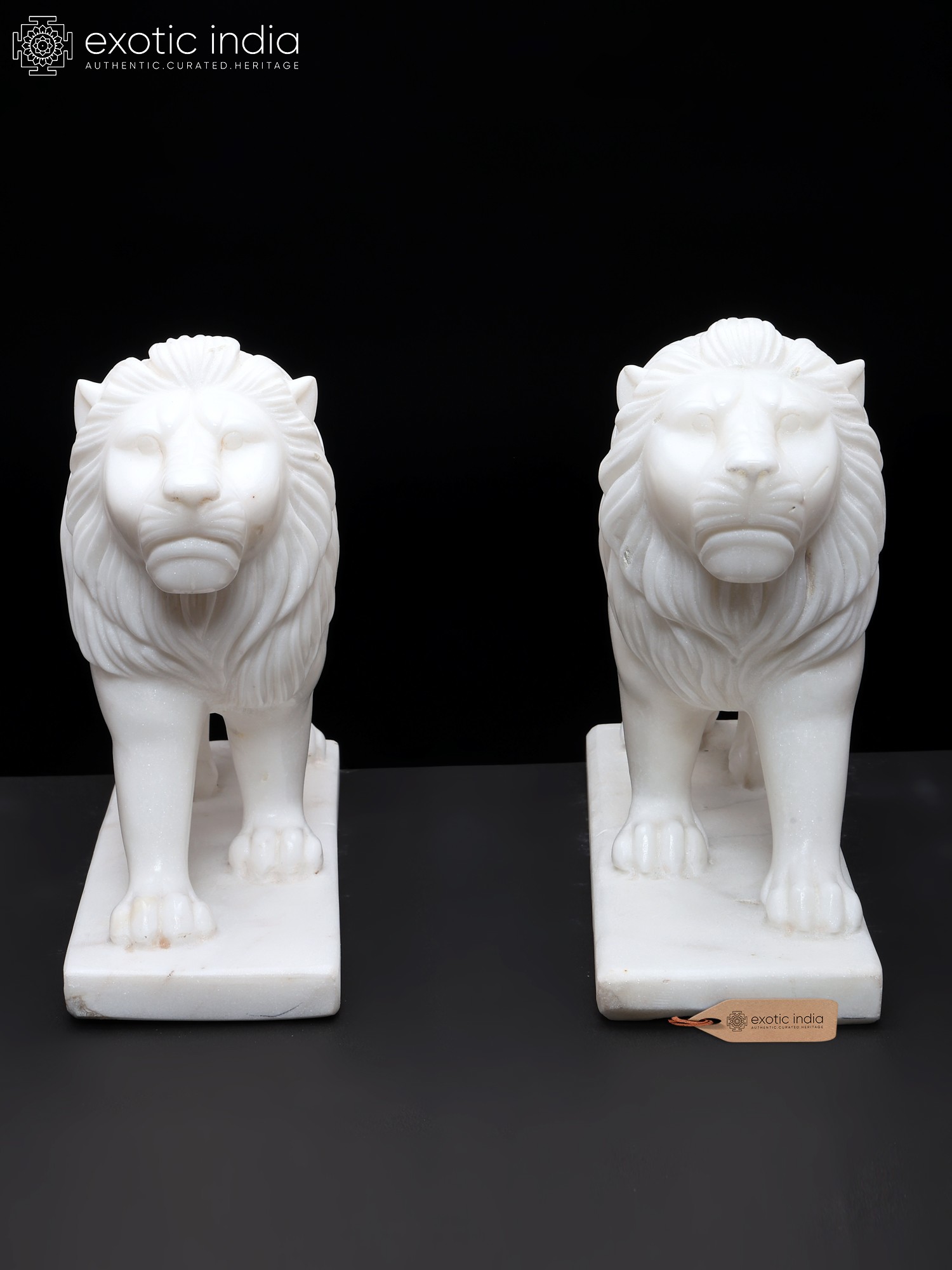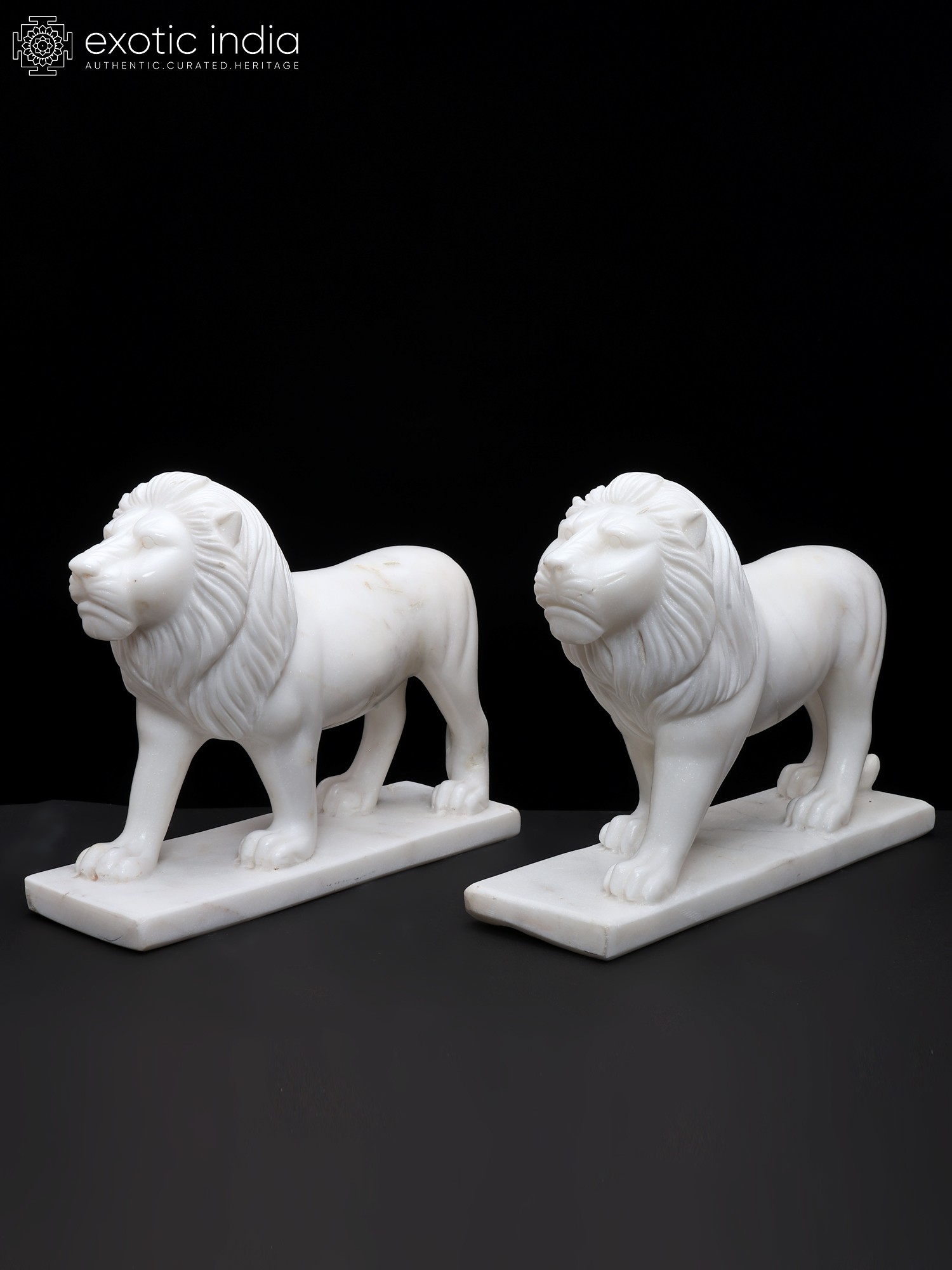 Symbol of Guardianship - Pair Statue of Lion | Home Decor | White Marble | Excellent Indian Art